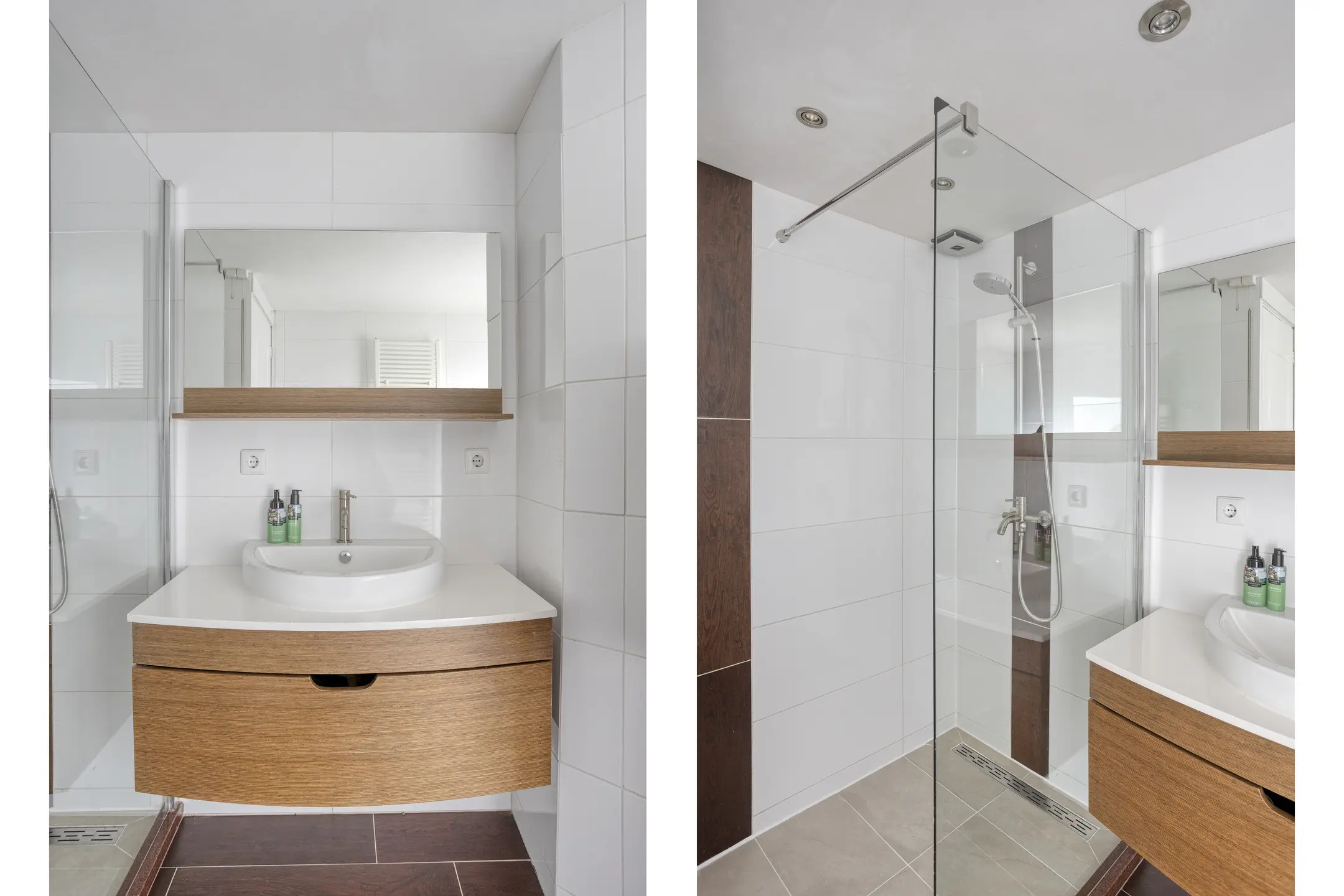 1e verdieping: heerlijk ruime overloop met toegang tot de 3-tal goed bemeten slaapkamers (lees= ideaal, alle kamers zijn voorzien van vaste kasten). Comfortabele badkamer met o.a. een inloopdouche, fraai wastafelmeubel alsmede een 2e toilet (wandcloset).