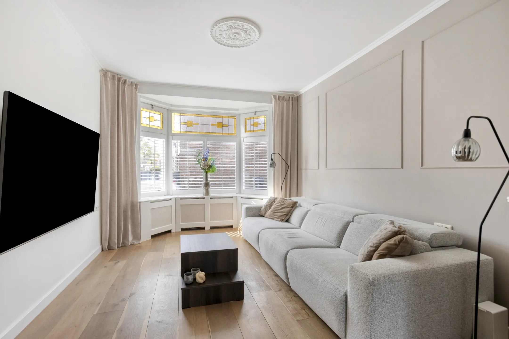 - leuke details zoals glas-in-lood, erker en gietijzeren radiator