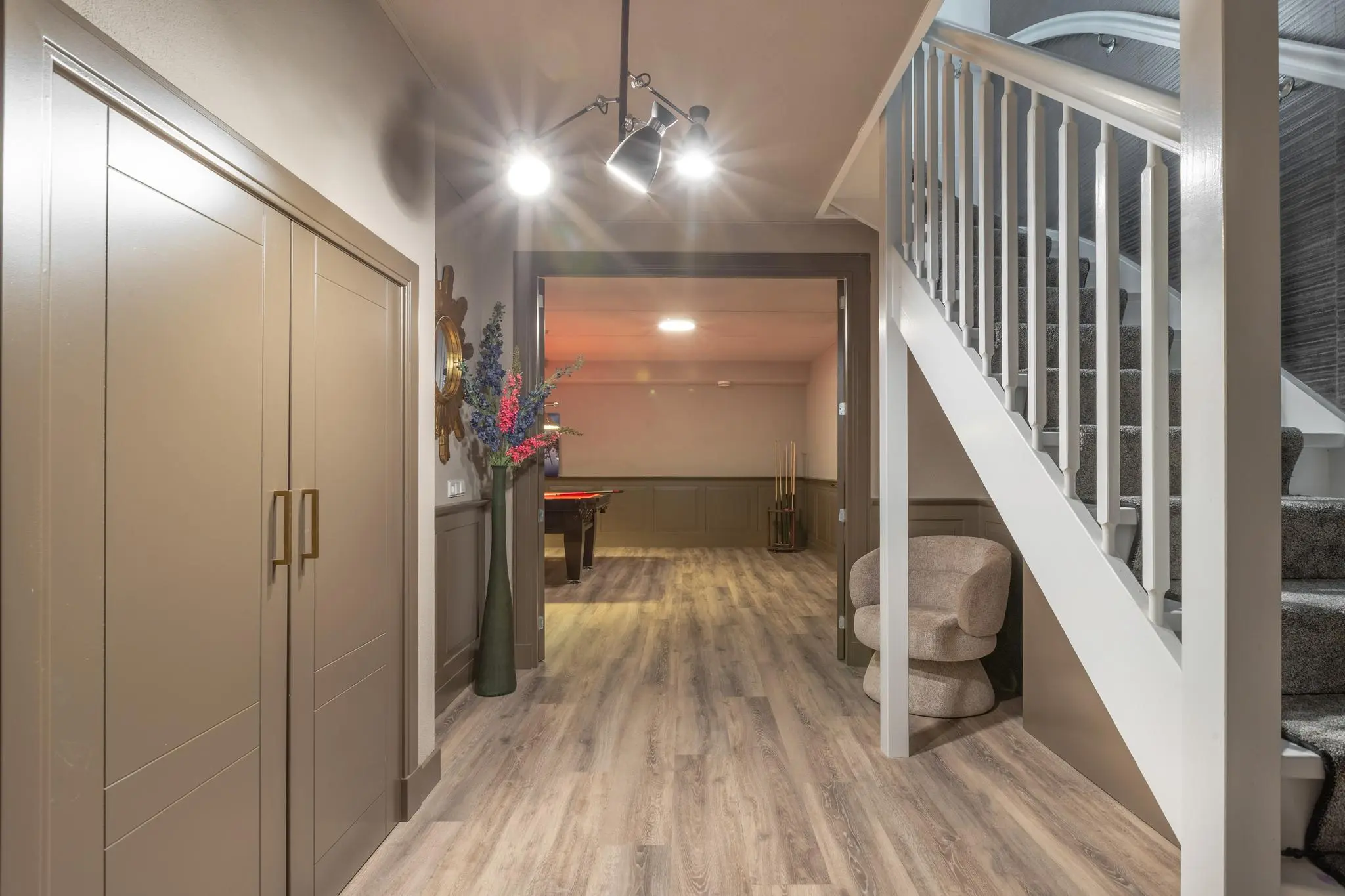 En dan is er nog de verrassing onder het huis: een royale kelder van maar liefst 110 m² gebruiksoppervlakte, bóven op de huidige woonoppervlakte. Een ruimte met eindeloos veel mogelijkheden, denk aan een speelkamer, gym of atelier. De ruimte ligt aan jouw voeten. Momenteel is een gedeelte ingericht als privébioscoop, een plek waar ontspanning en luxe samenkomen.