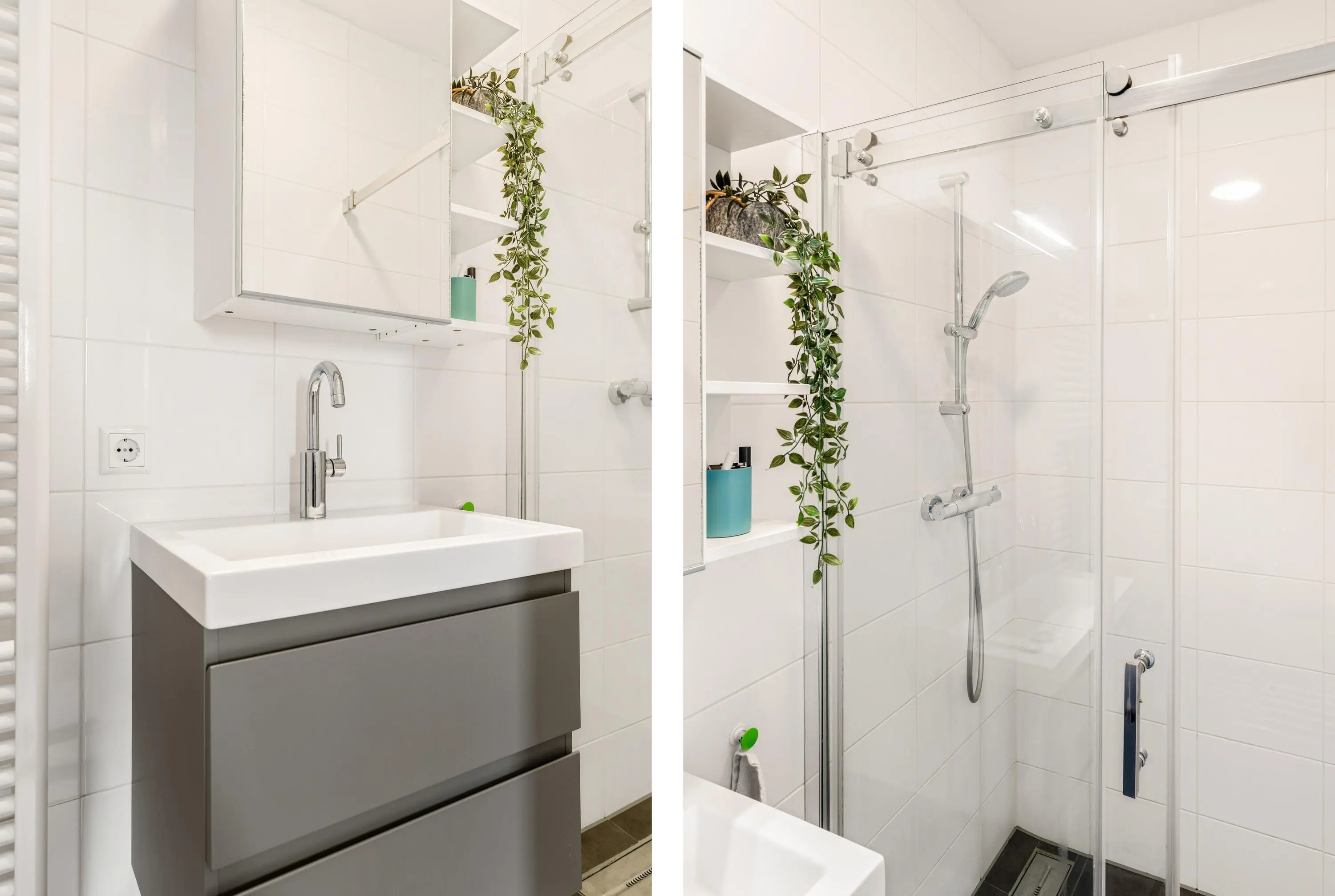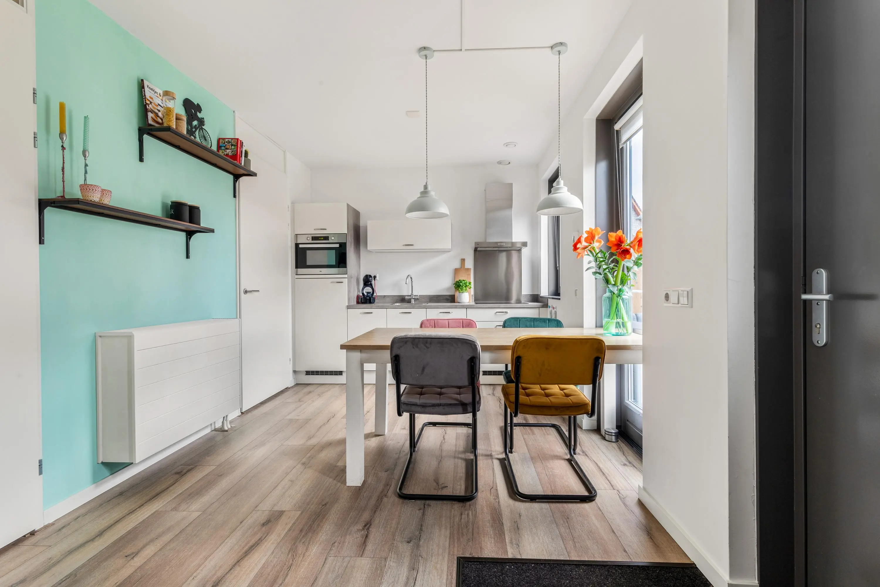 Via de tuin kom je aan bij de voordeur van deze nette woning. Bij binnenkomst stap je de lichte, tuingerichte eetkamer binnen. De eetkamer heeft een fraaie laminaatvloer en grote raampartijen wat zorgt voor een zonnige en open sfeer. De keuken is uitgerust in een neutrale kleur en voorzien van diverse inbouwapparatuur waaronder een combi-oven, vaatwasser, inductiekookplaat, kokend waterkraan en koelkast. Tevens is op deze verdieping de badkamer aanwezig, die is uitgerust met een modern wastafelmeubel, toilet en inloopdouche. Extra handig op deze verdieping is nog een ruimte waar de wasmachineaansluiting zich bevindt en nog opbergruimte aanwezig is.