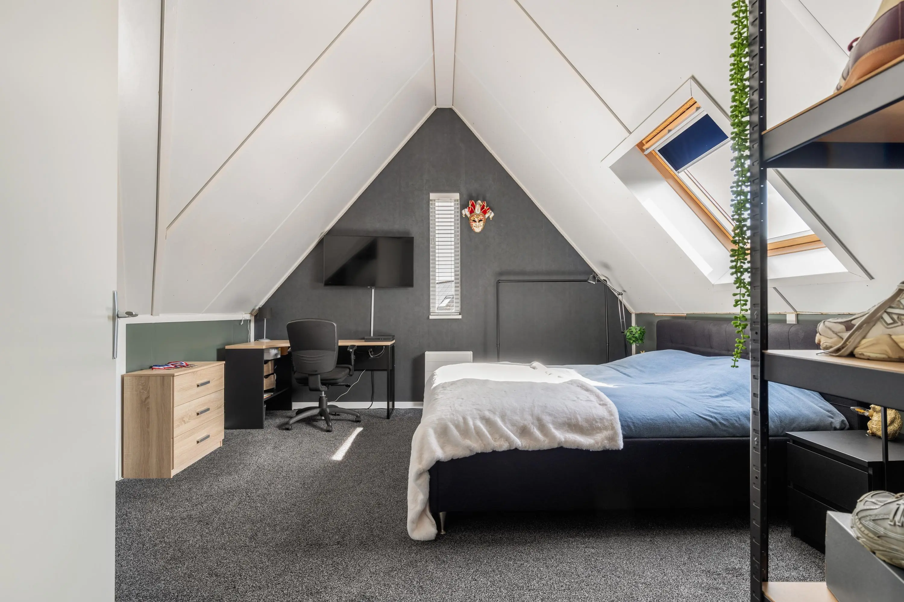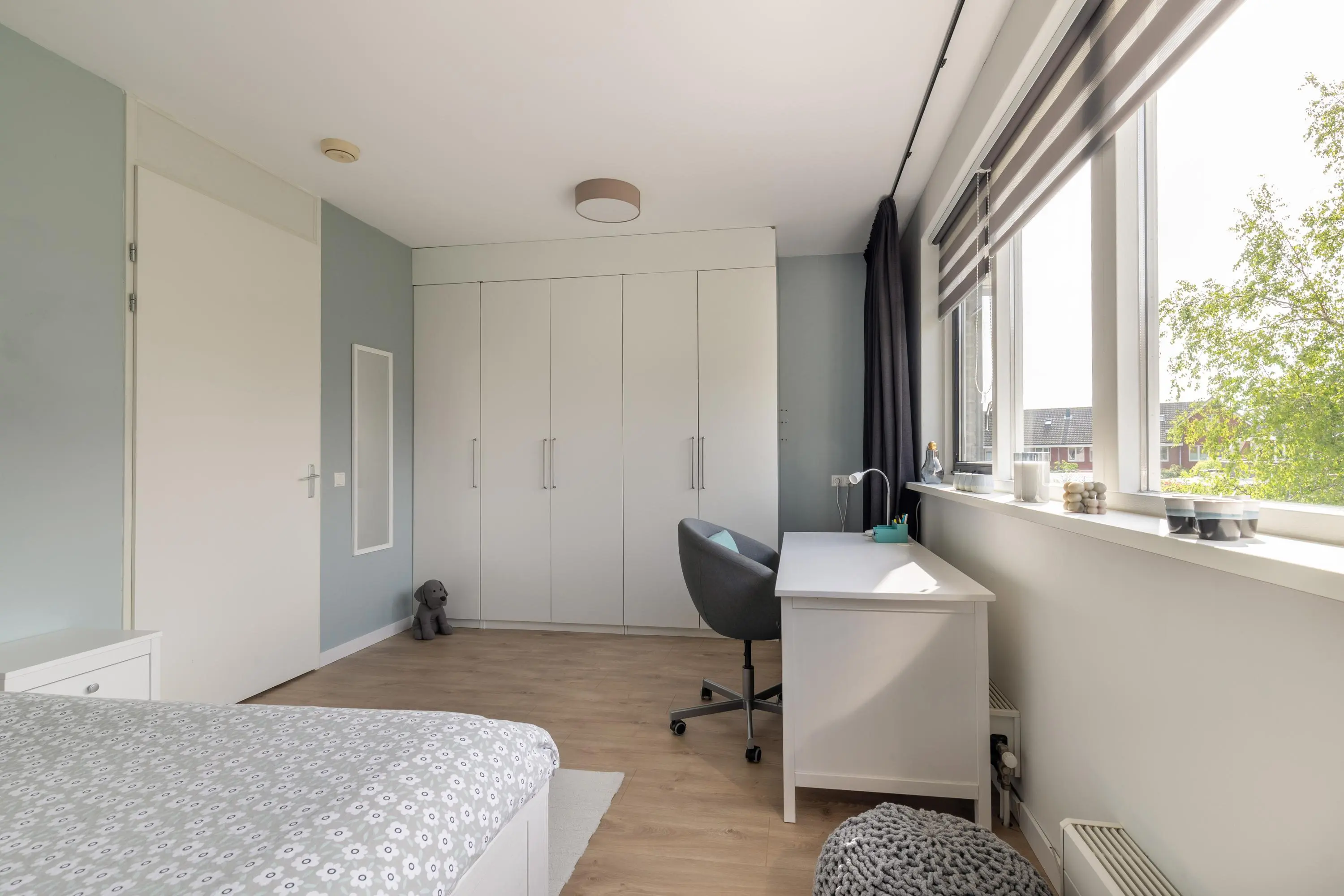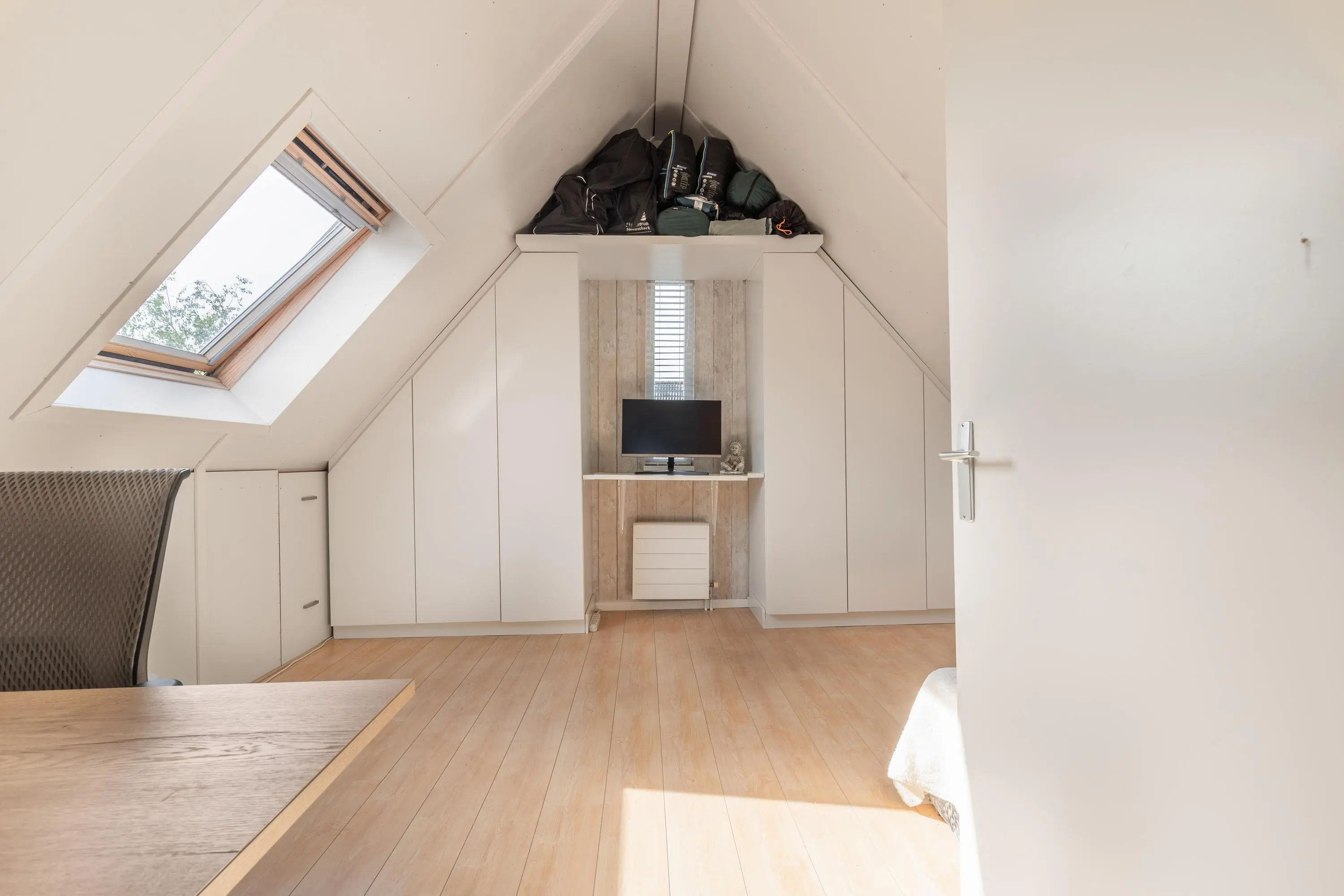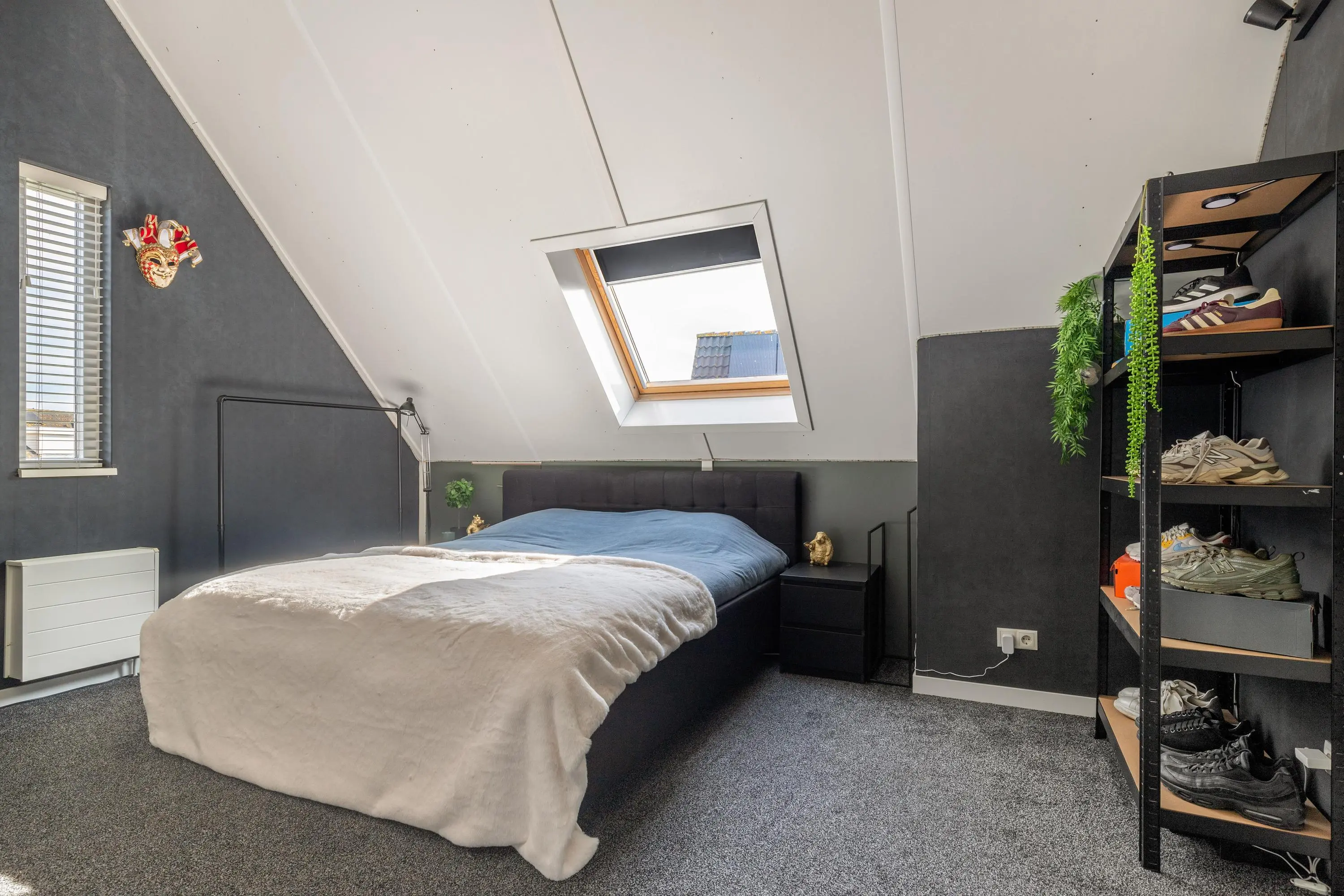 Op de eerste verdieping bevinden zich twee ruime slaapkamers, waarvan één met een inloopkledingkast. De badkamer en het separate toilet zijn in 2016 vernieuwd en modern afgewerkt. Op de tweede verdieping vind je nog eens twee volwaardige slaapkamers, elk met vaste kasten en een groot dakraam. Op de overloop is een praktische berging met aansluitingen voor wasmachine en droger, evenals de cv-installatie.