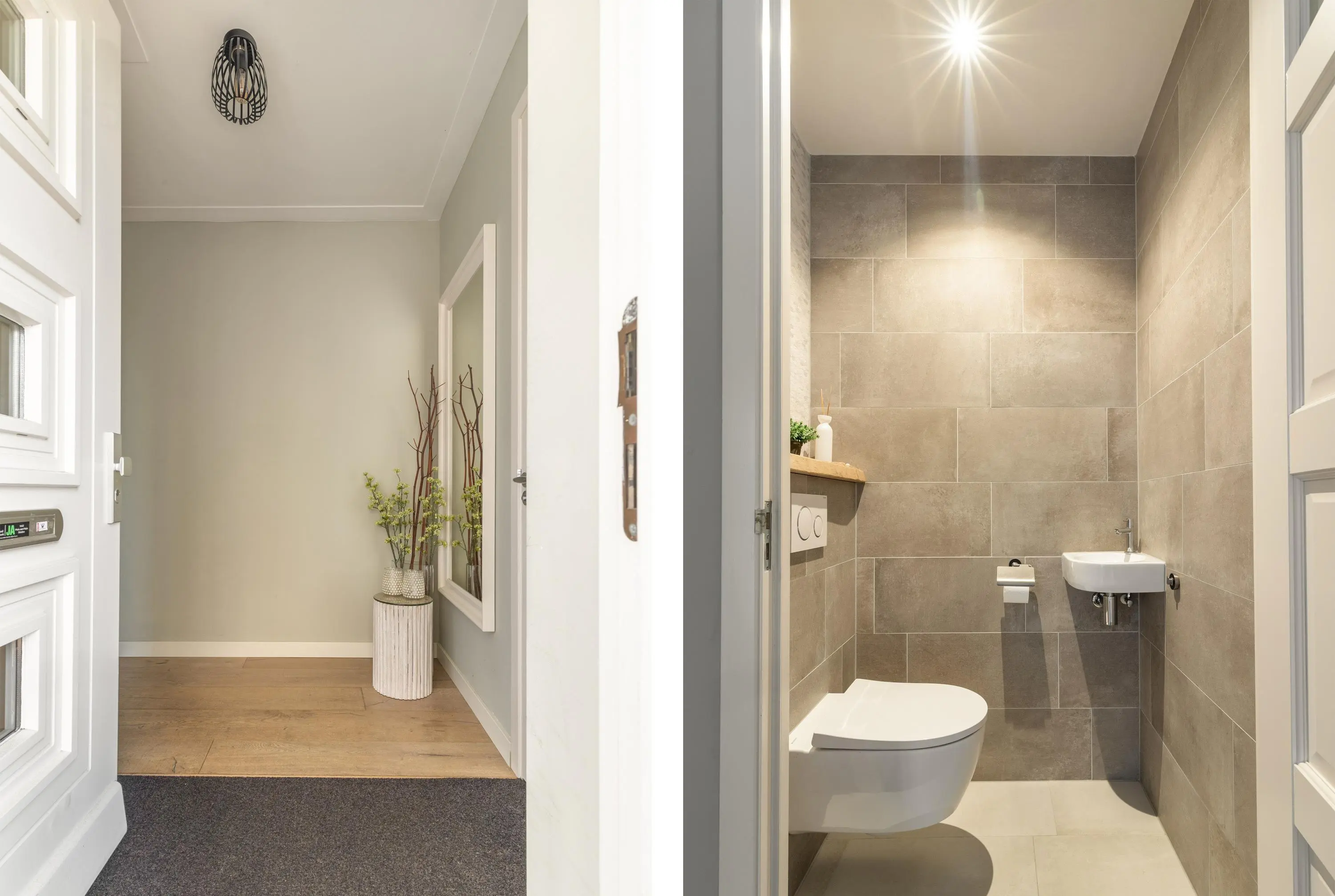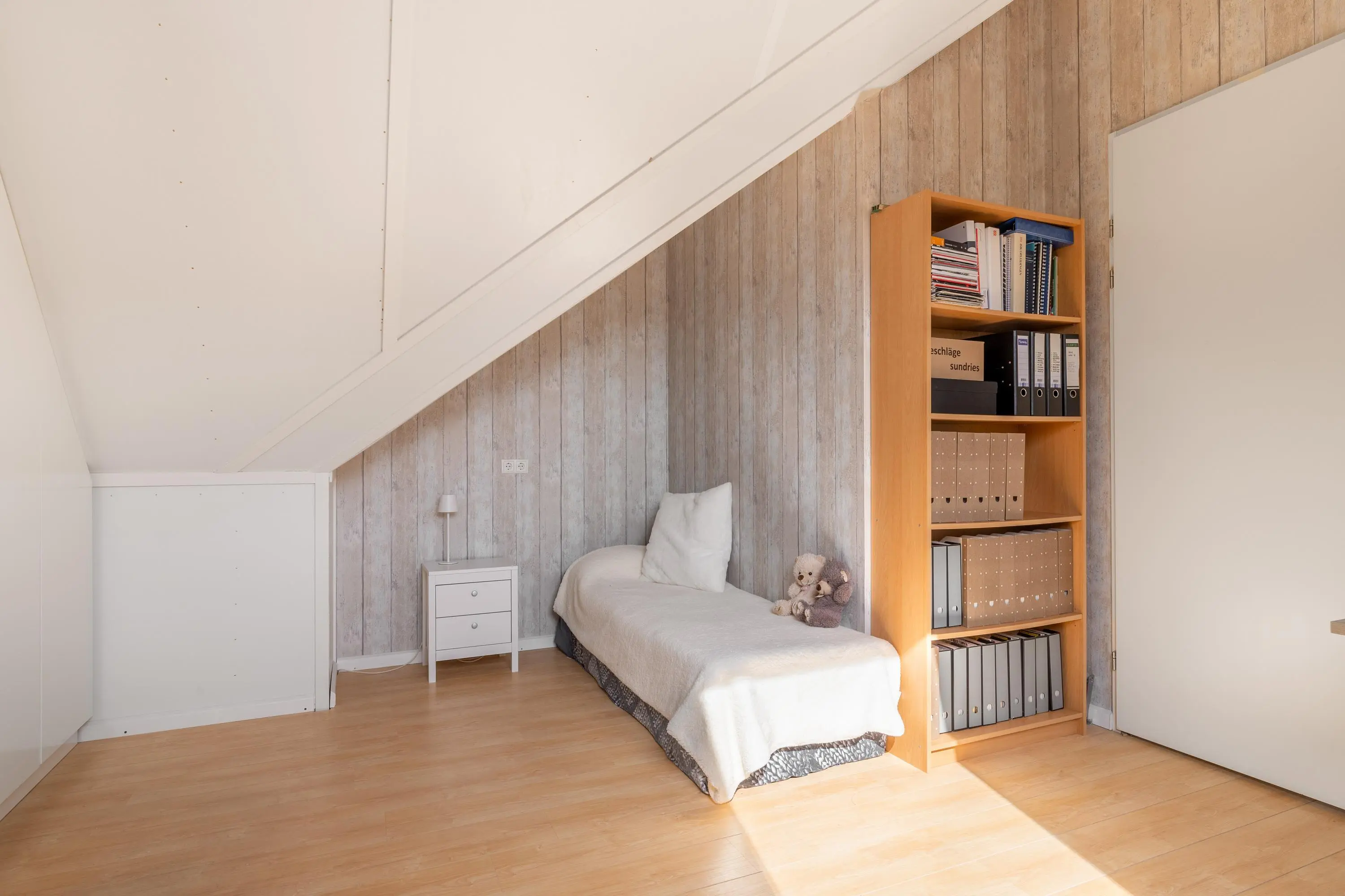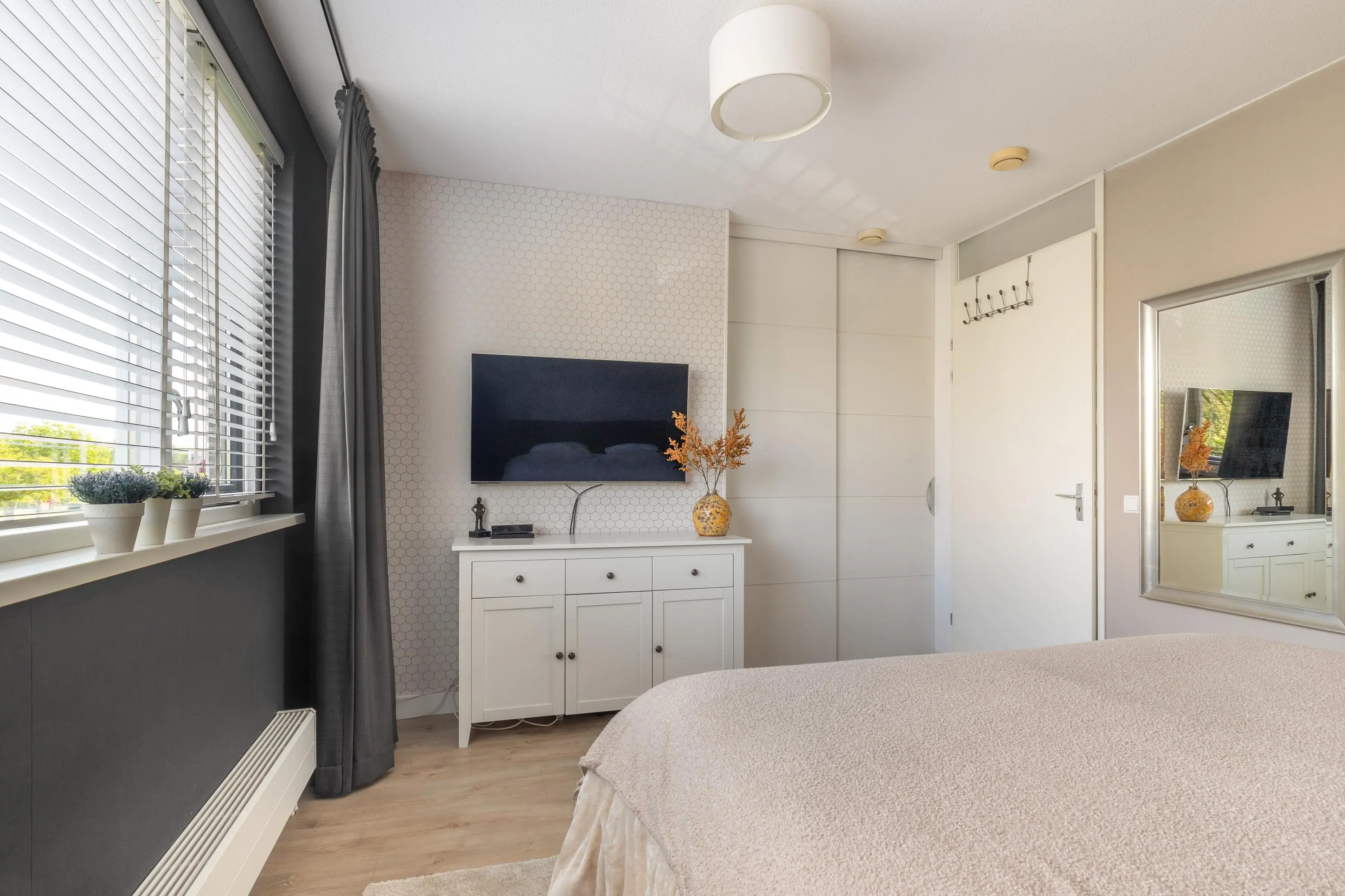 Op de eerste verdieping bevinden zich twee ruime slaapkamers, waarvan één met een inloopkledingkast. De badkamer en het separate toilet zijn in 2016 vernieuwd en modern afgewerkt. Op de tweede verdieping vind je nog eens twee volwaardige slaapkamers, elk met vaste kasten en een groot dakraam. Op de overloop is een praktische berging met aansluitingen voor wasmachine en droger, evenals de cv-installatie.