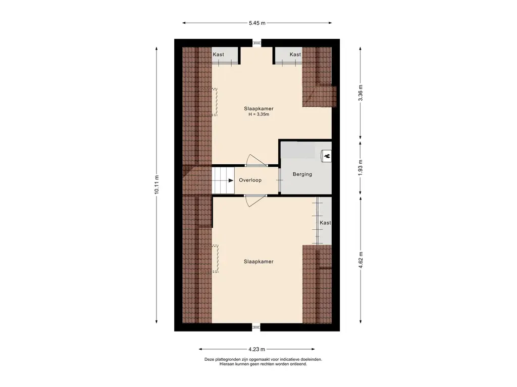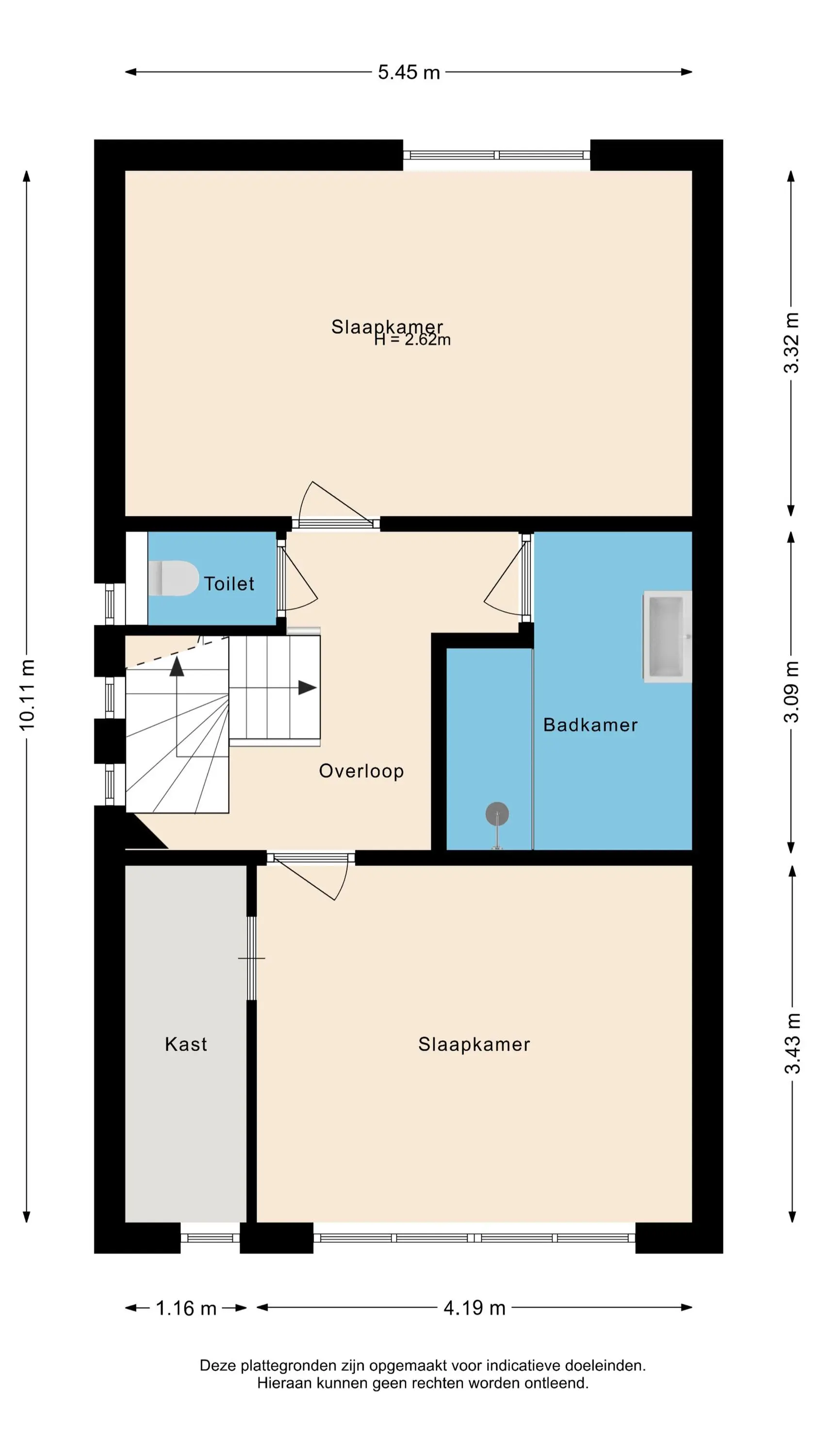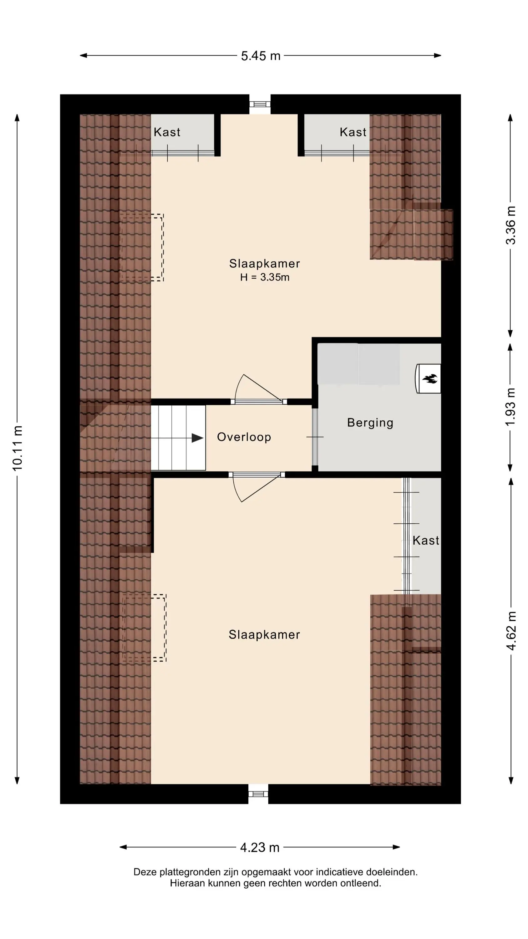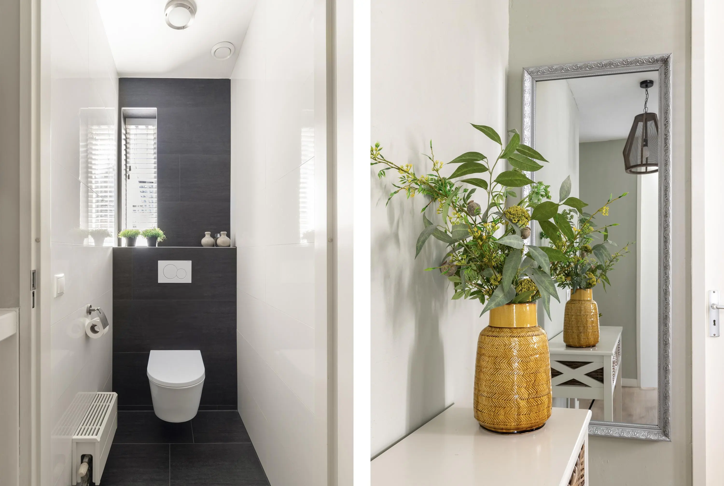 Op de eerste verdieping bevinden zich twee ruime slaapkamers, waarvan één met een inloopkledingkast. De badkamer en het separate toilet zijn in 2016 vernieuwd en modern afgewerkt. Op de tweede verdieping vind je nog eens twee volwaardige slaapkamers, elk met vaste kasten en een groot dakraam. Op de overloop is een praktische berging met aansluitingen voor wasmachine en droger, evenals de cv-installatie.