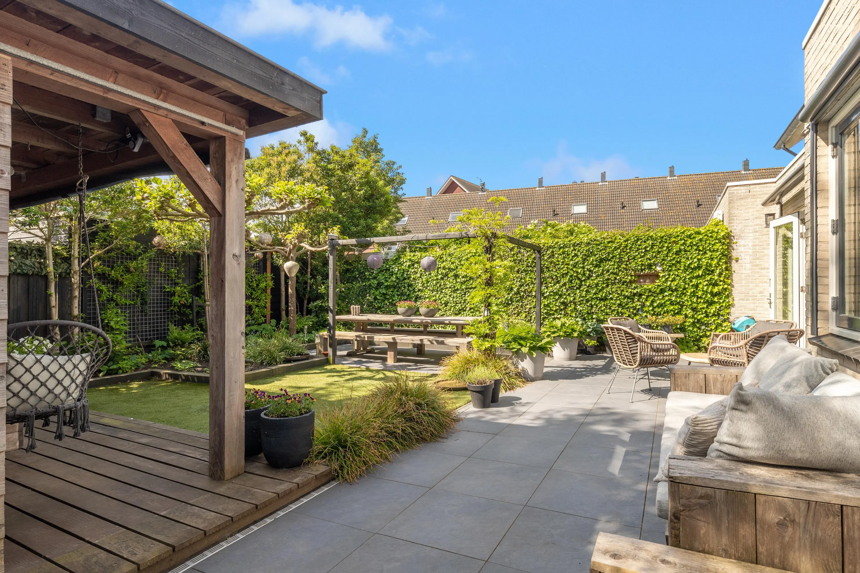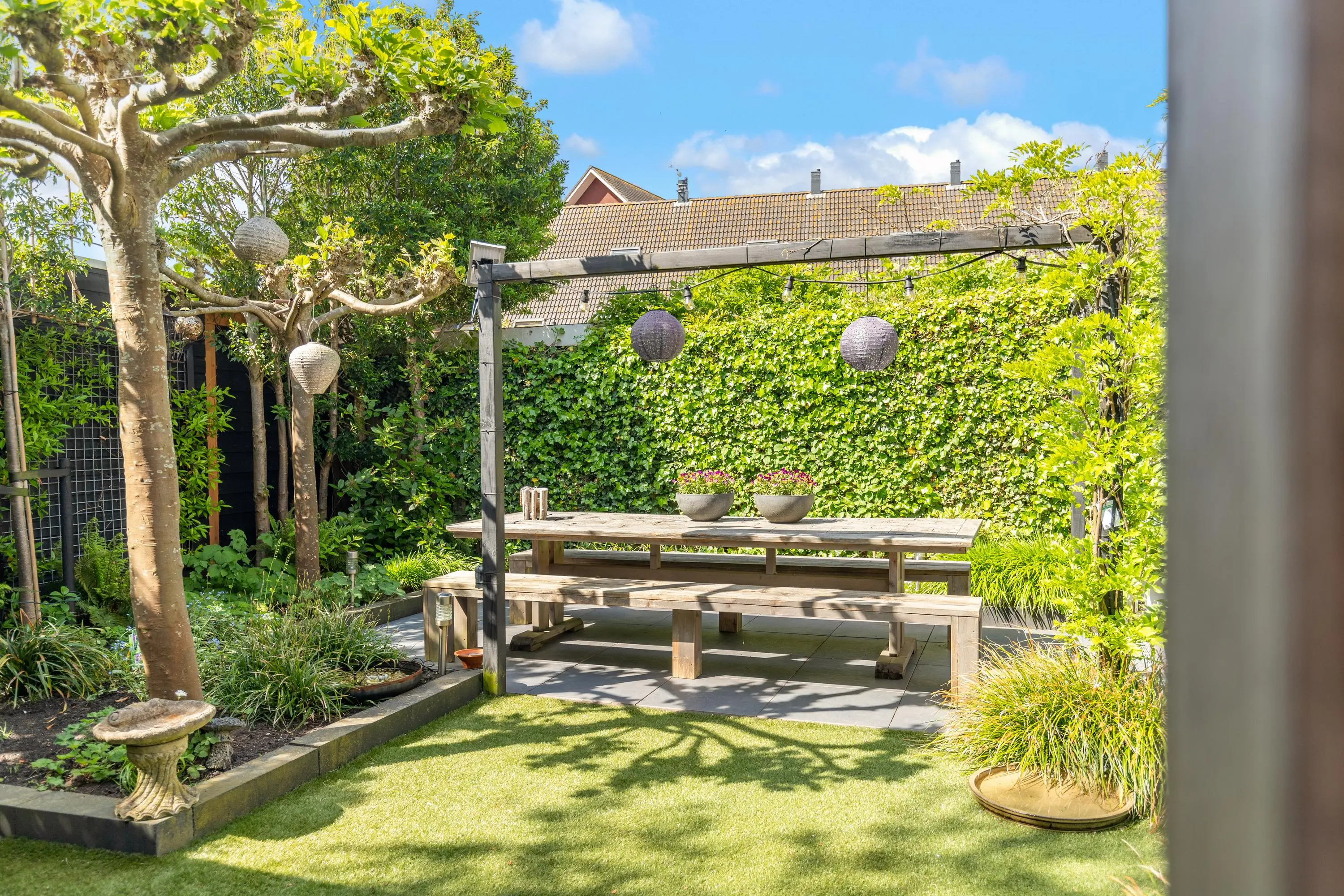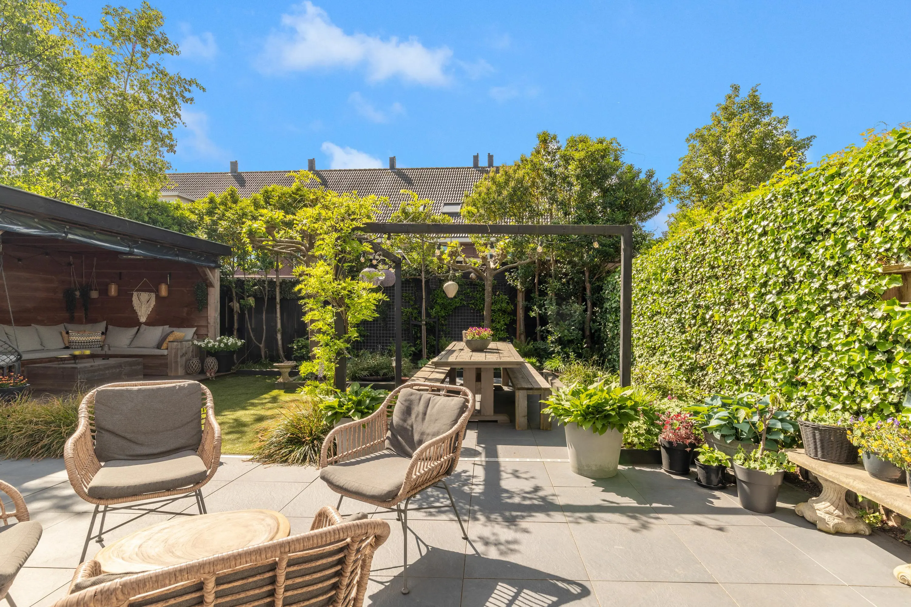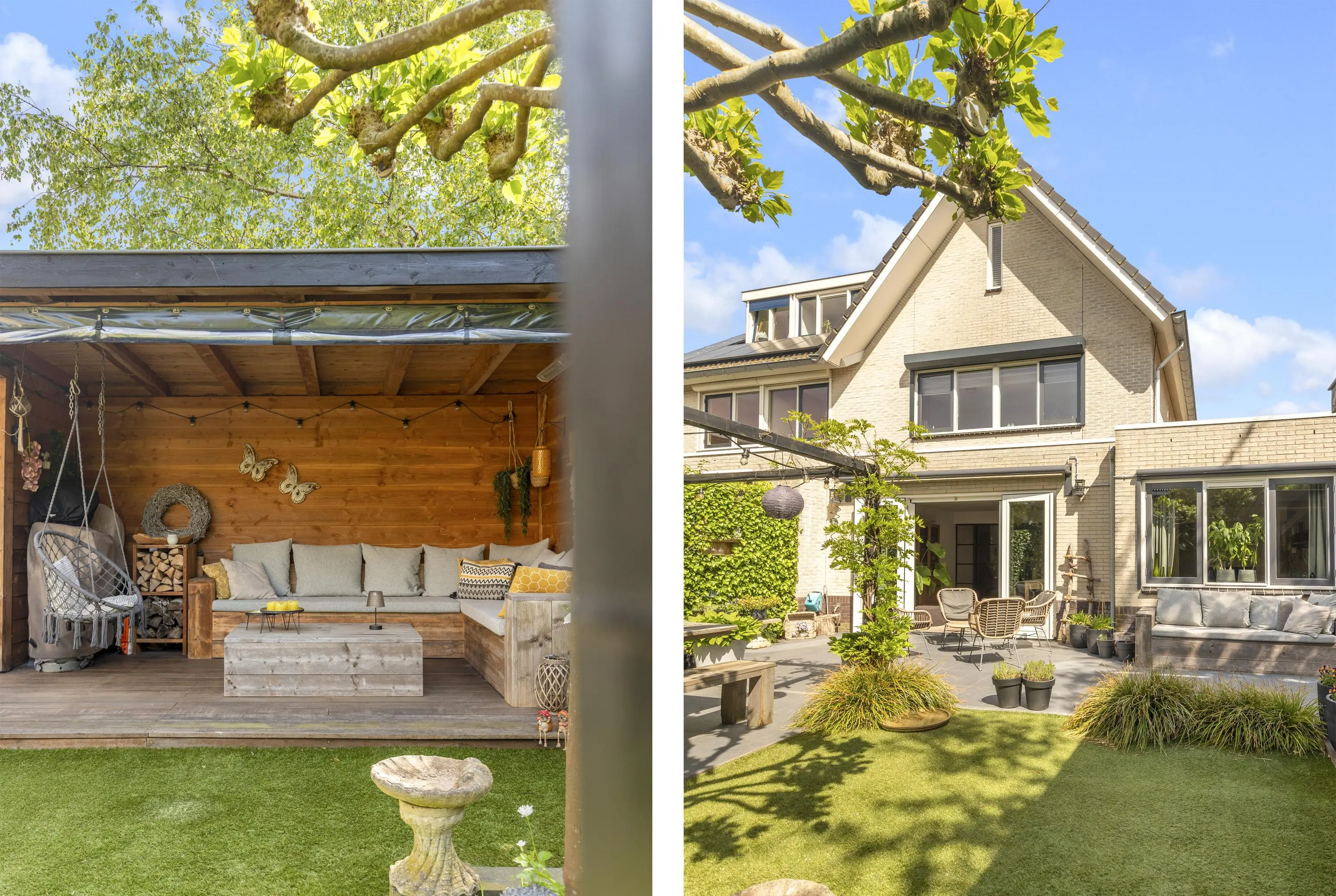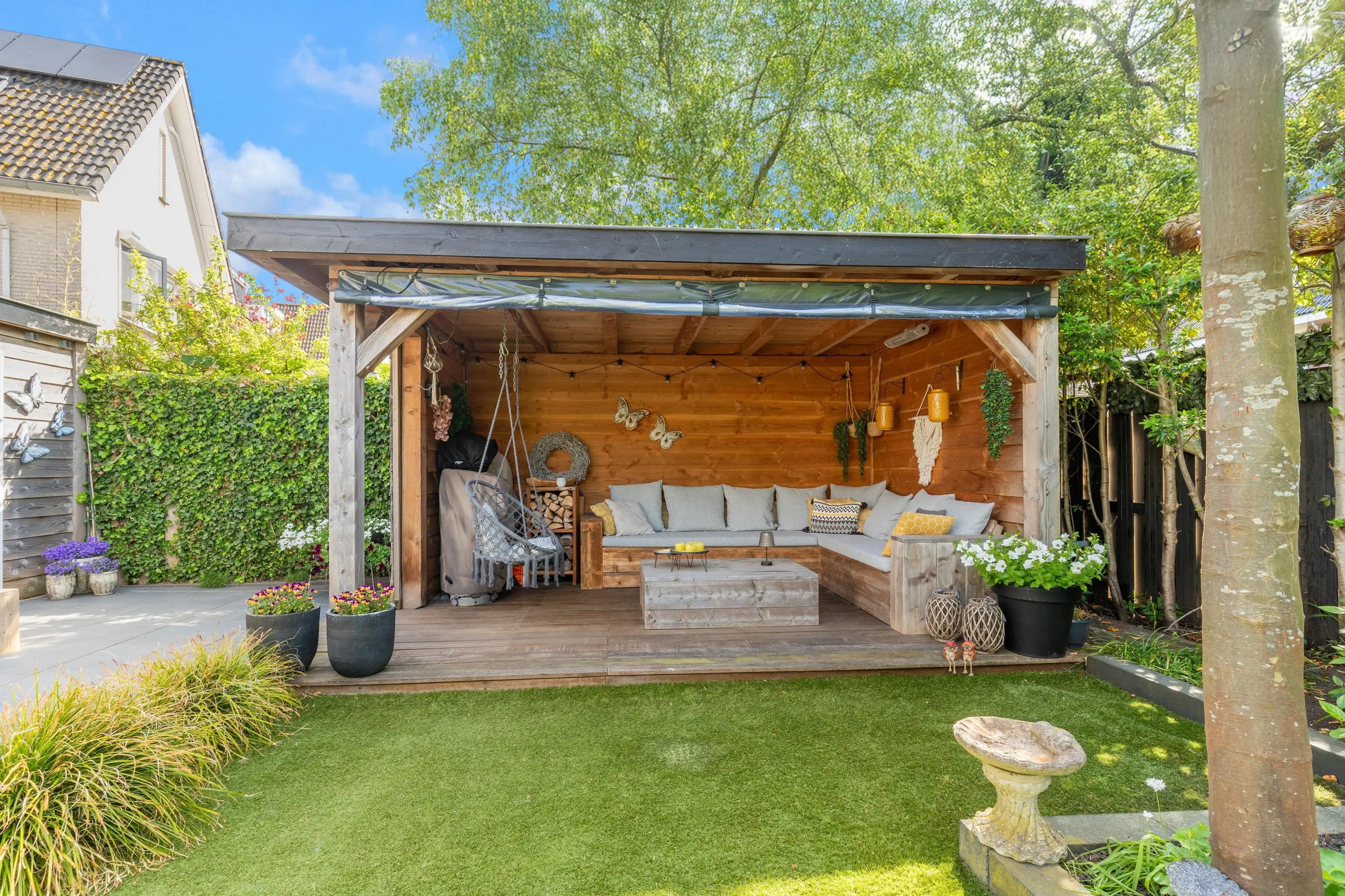 En dan de fraai aangelegde tuin, welke gelegen is op het zuiden waardoor je de hele dag kunt genieten van de zon. Dankzij de overkapping is er een gezellige plek om met vrienden of familie te ontspannen – ongeacht het weer. Daarnaast is er zowel een berging als garage aanwezig, ideaal voor fietsen, gereedschap en extra opslagruimte.