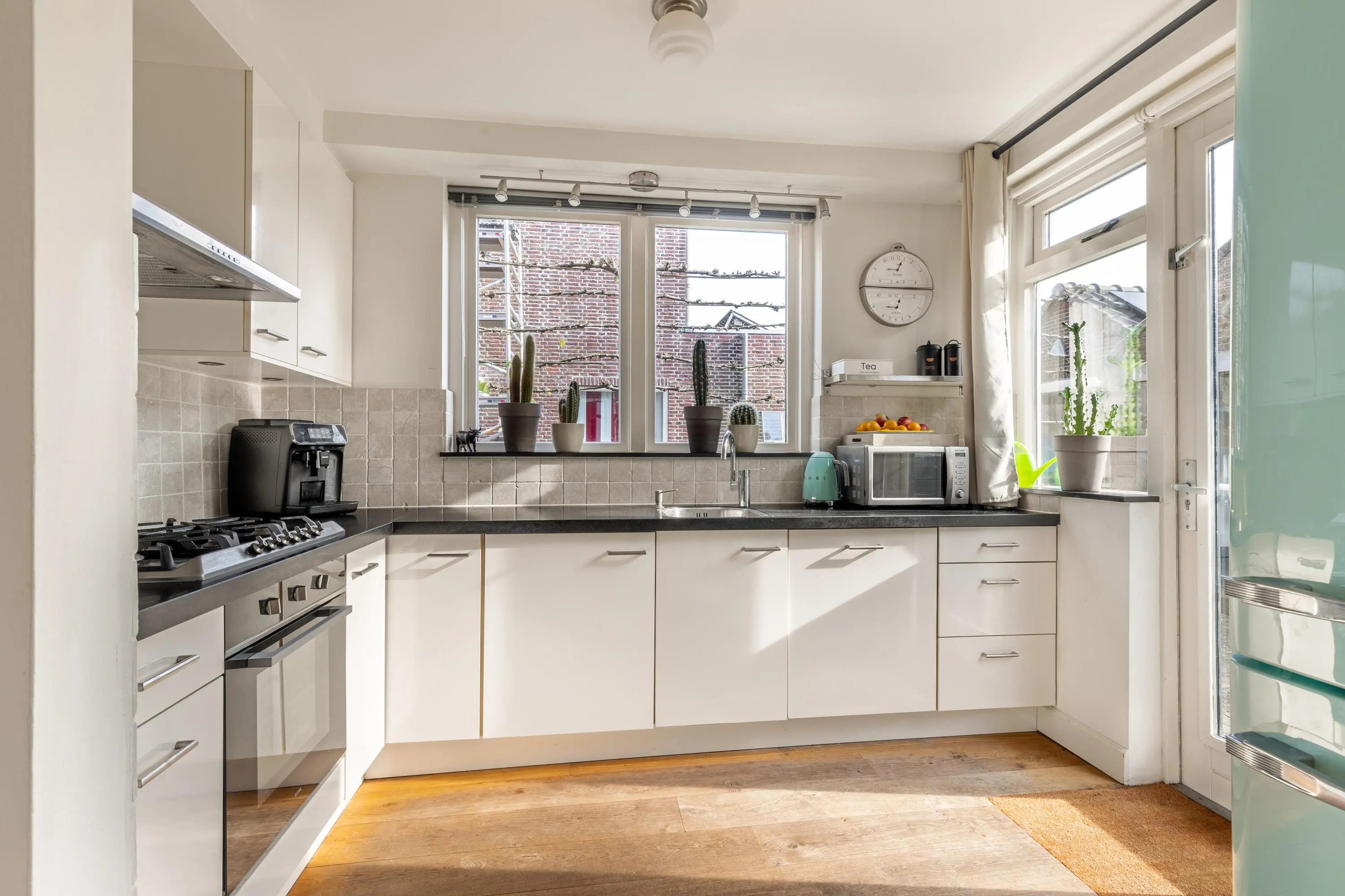 Juist de combinatie van de fraaie originele elementen behorende bij deze architectuur en de eerdere verbouwing in 2008 maakt deze woning uniek. Al de werkzaamheden zijn op professionele wijze uitgevoerd, waarbij ook de techniek van het huis niet is vergeten. Vanzelfsprekend zijn het sanitair en de keuken daarbij van dezelfde kwaliteit en modern en comfortabel uitgevoerd (o.a. ligbad en vloerverwarming). Tel daarbij op de tuinligging op het zuiden, de hoekligging van de woning, de mogelijkheid om diverse auto’s te parkeren op eigen erf en de ligging op slechts enkele minuten fietsen verwijderd van de binnenstad en u heeft de zekerheid van maximaal woongenot.