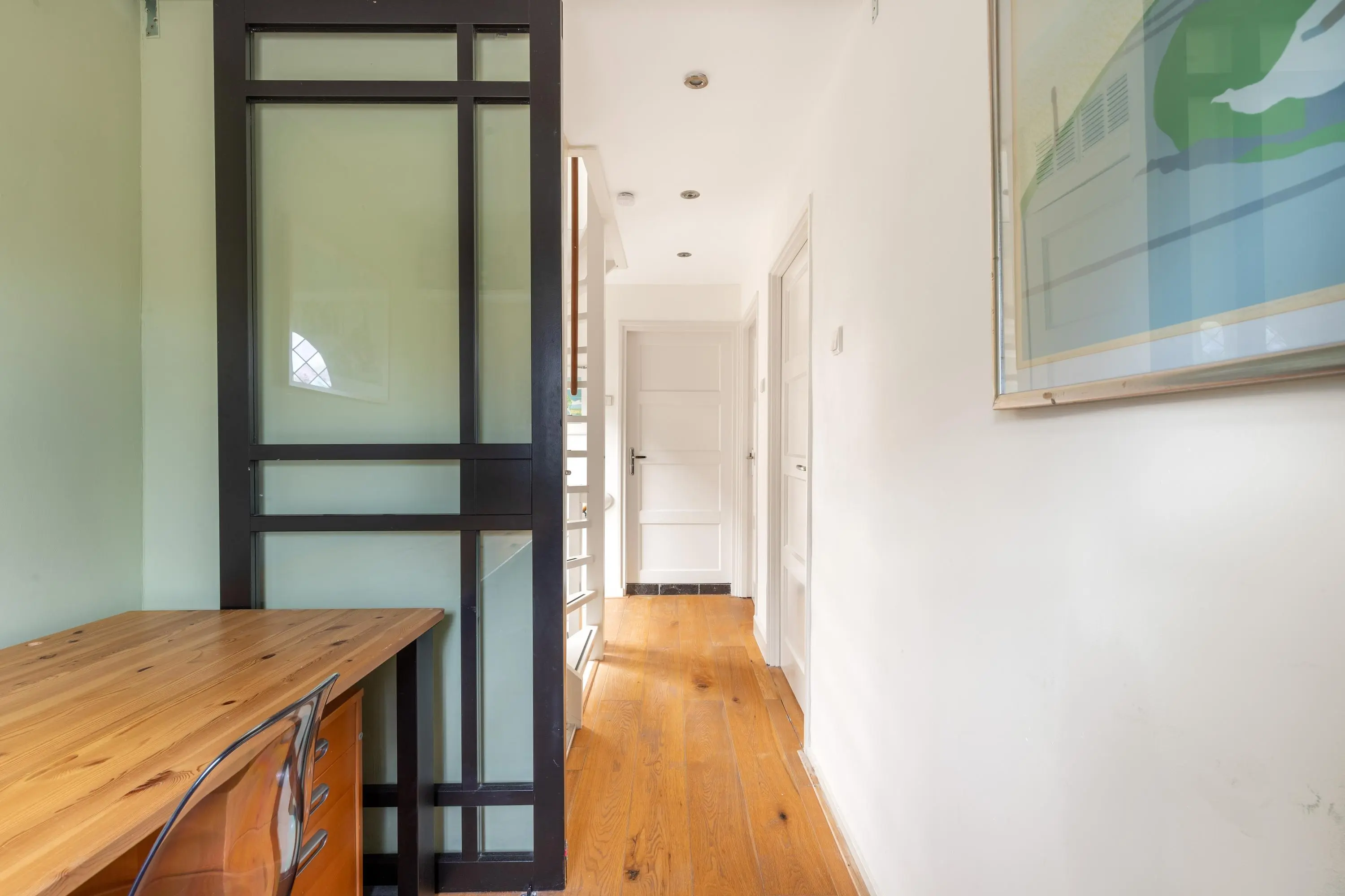 1e verdieping: overloop met fraai zijraam, waardoor u extra daglicht toetreding heeft en een ideale wasruimte voor de opstelling van het witgoed. Een 3-tal (slaap)kamers en de comfortabele badkamer.