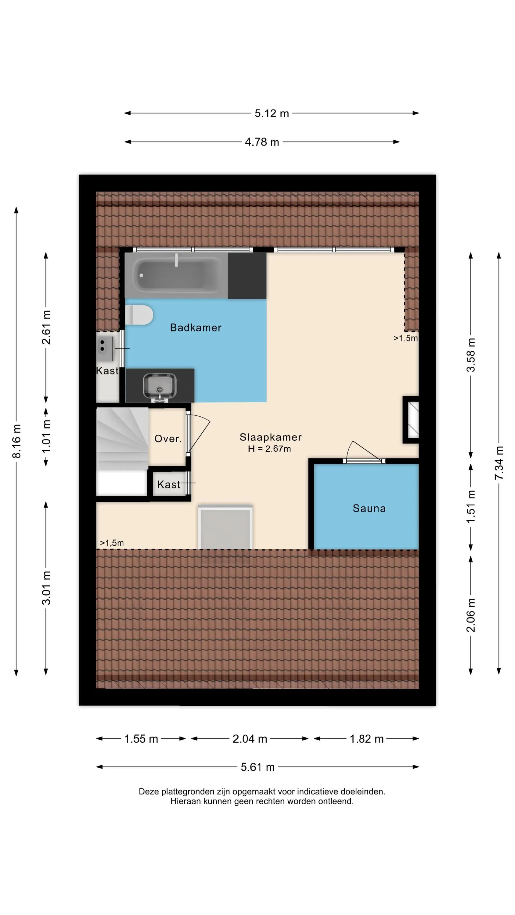 2e verdieping: hier is de kapconstructie fraai in het zicht gelaten en deze verdieping is omgebouwd tot een wellness ruimte.