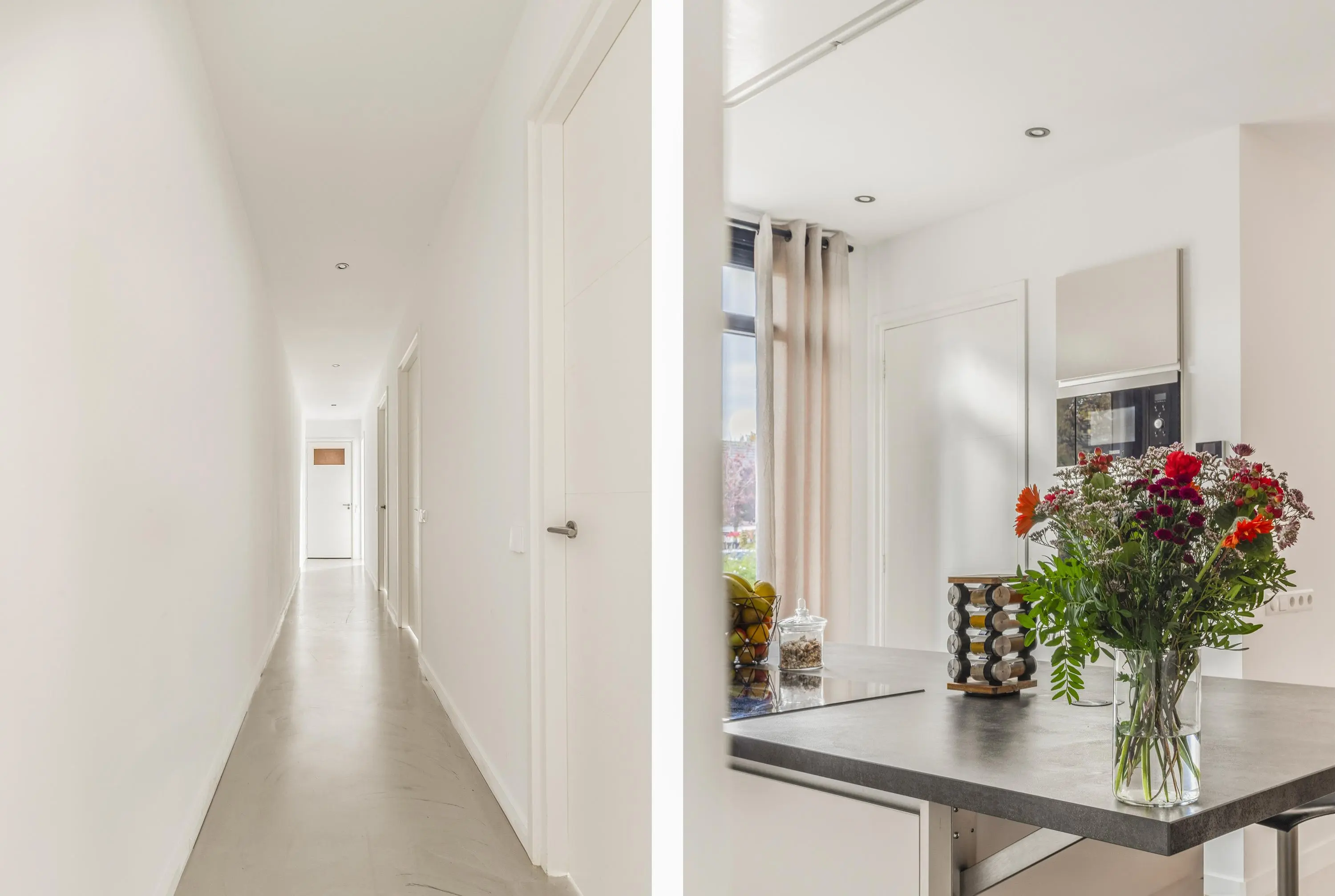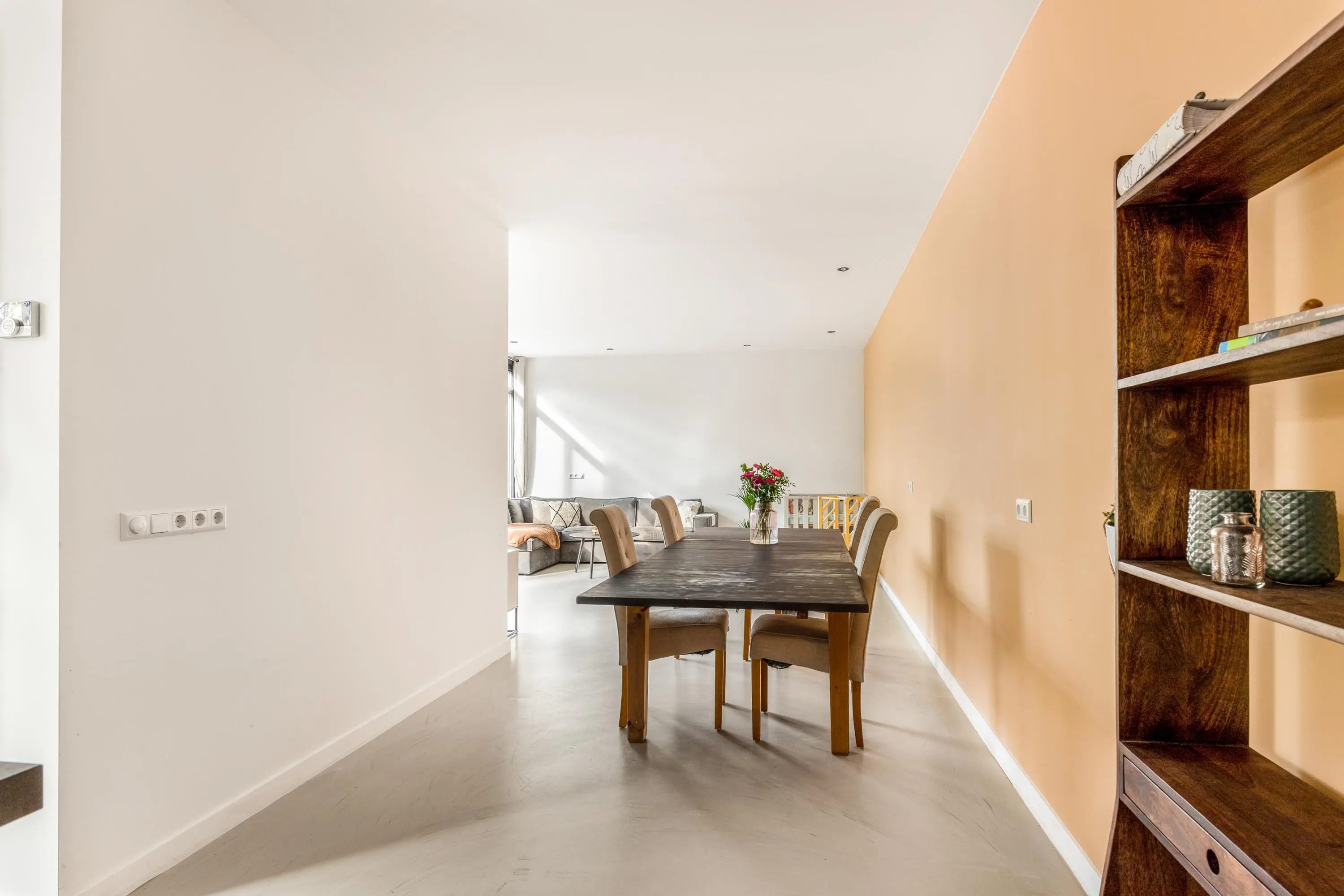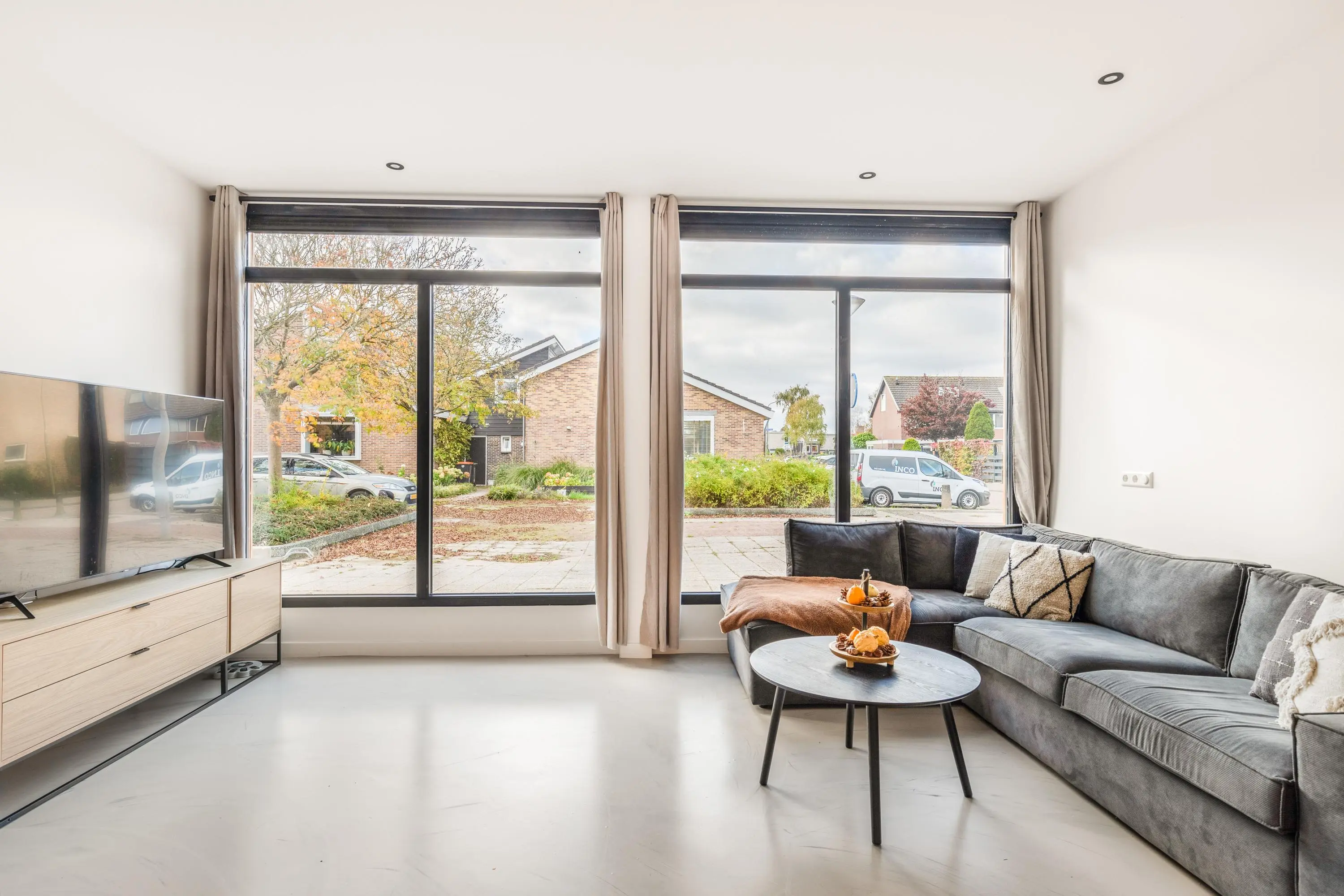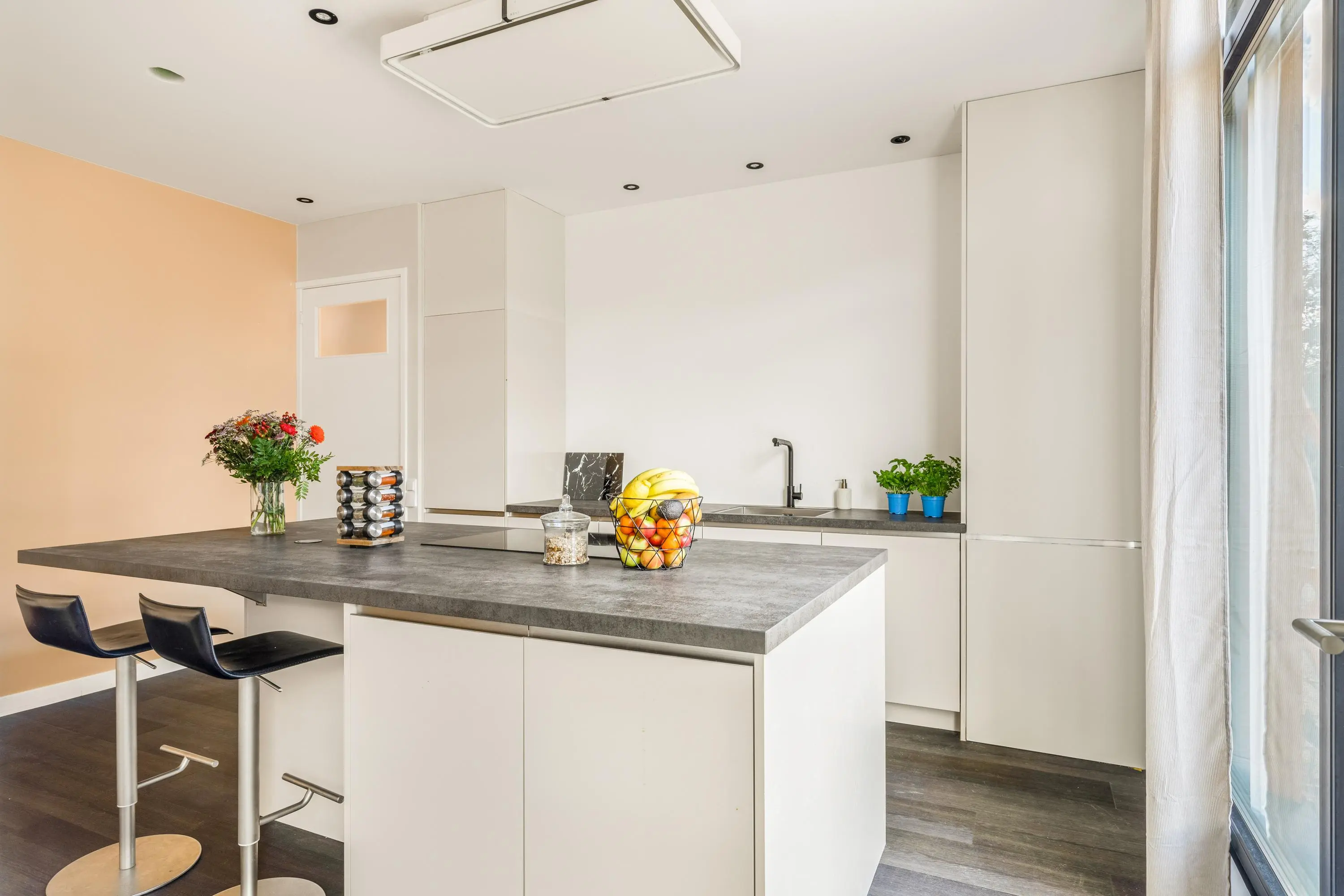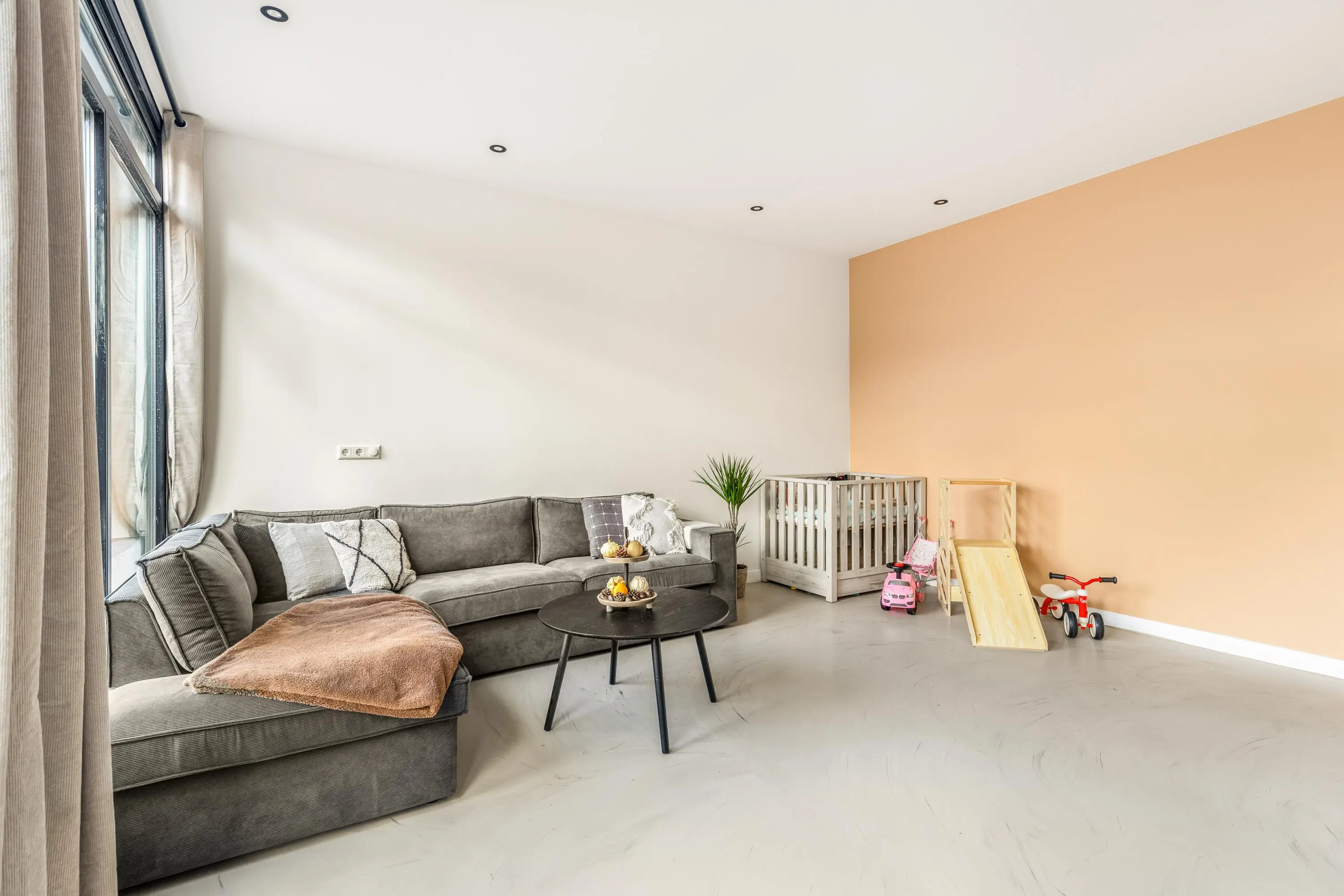 Dankzij de grote ramen geniet je in elke ruimte van een fijne lichtinval en een vrij gevoel. Alles is afgewerkt in een moderne stijl en direct klaar om te betrekken. Door de gehele woning ligt een grijs gemêleerde gietvloer. Goed om te weten is dat er een vergunning is afgegeven voor het realiseren van een dakterras.