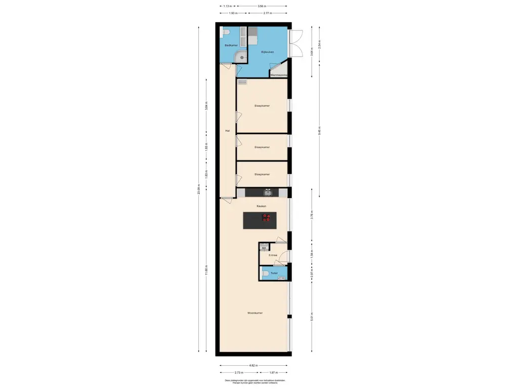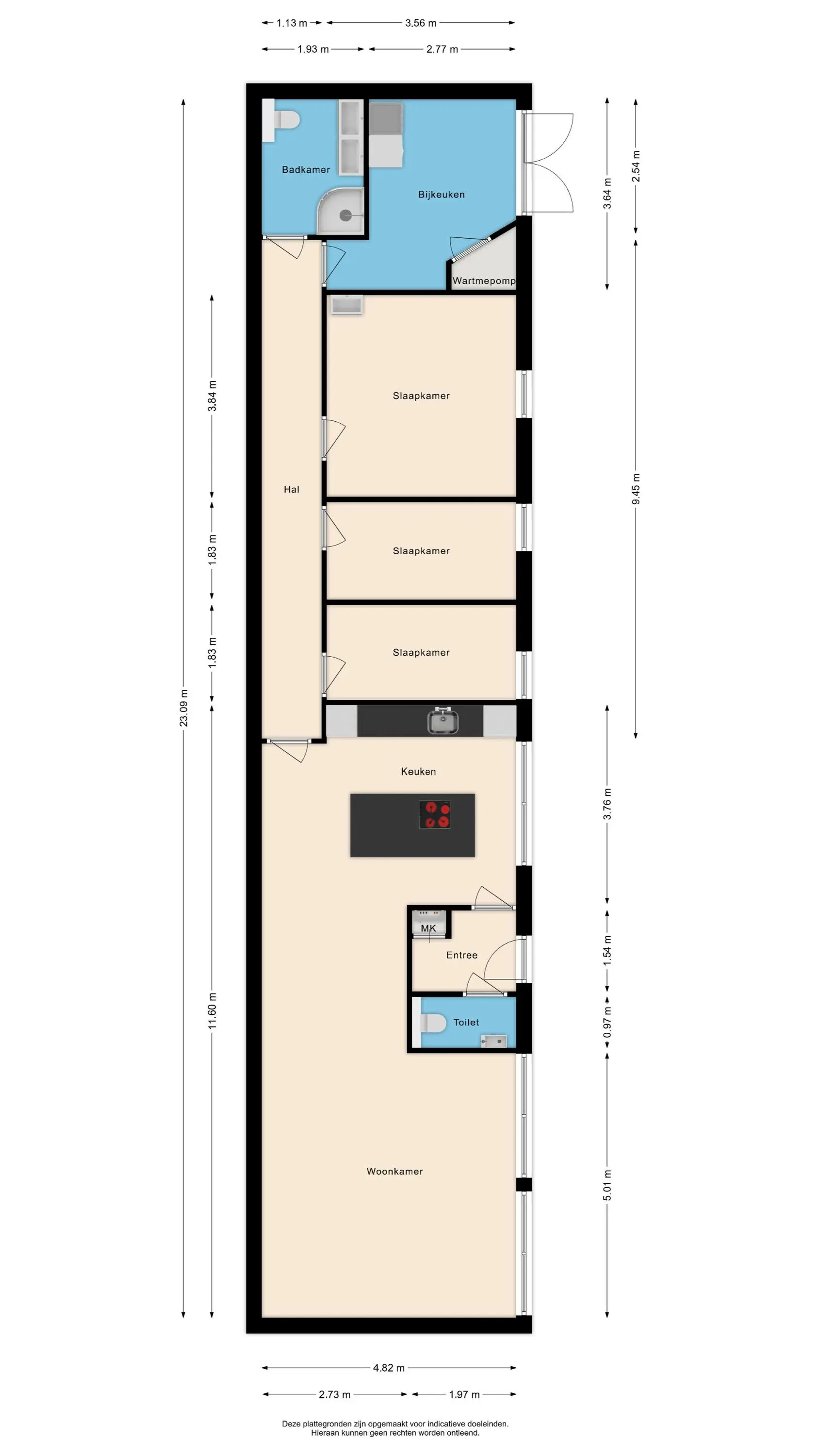 - Drie slaapkamers;