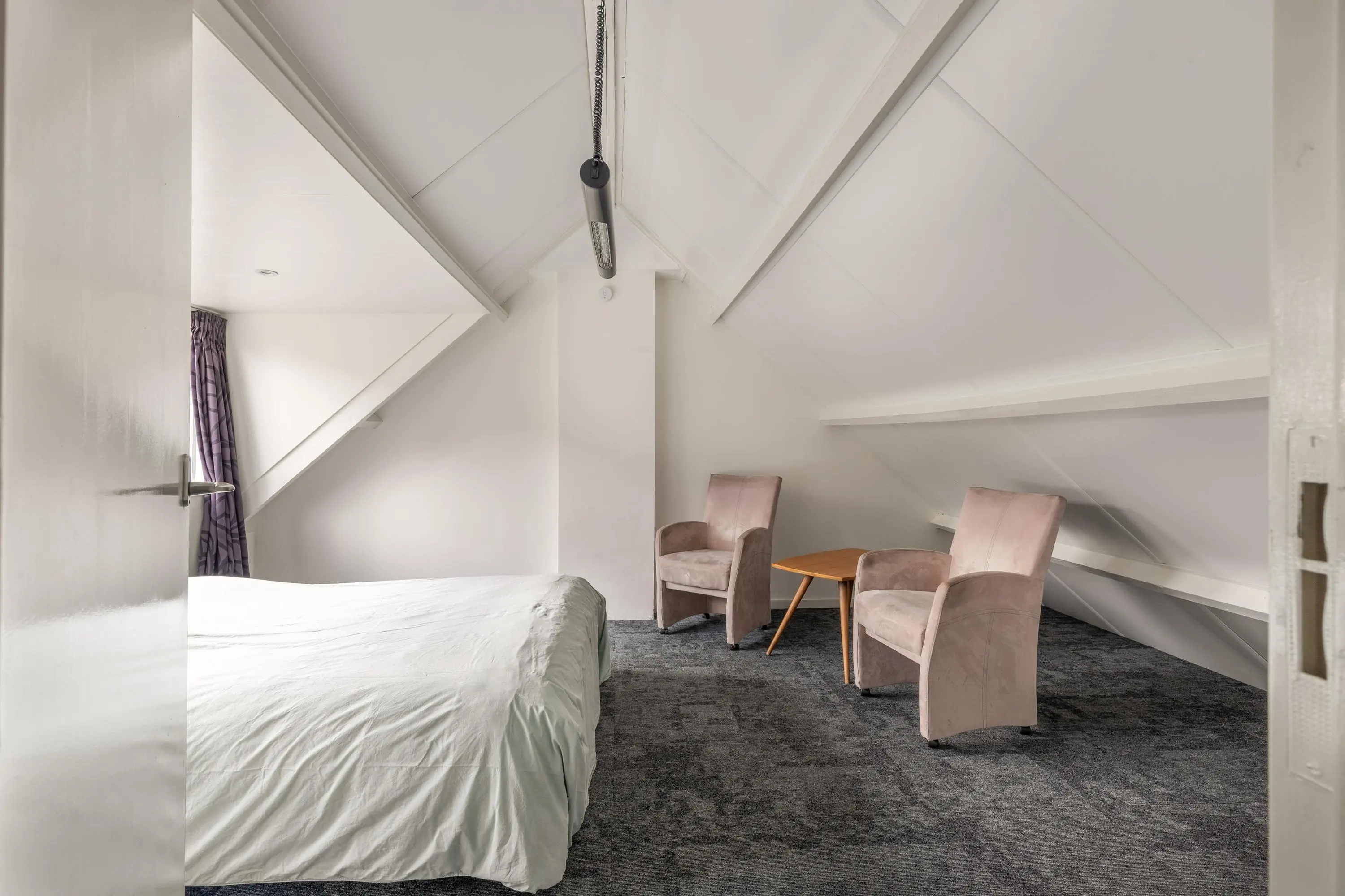 Op de eerste verdieping telt de woning drie goede slaapkamers waarvan twee met praktische inbouwkasten. Daarnaast tref je hier de badkamer aan. Deze is voorzien van een douche, tweede toilet en wastafel. Via de vaste trap kom je uit op de voorzolder met hier bergruimte en toegang tot de vierde ruime slaapkamer.