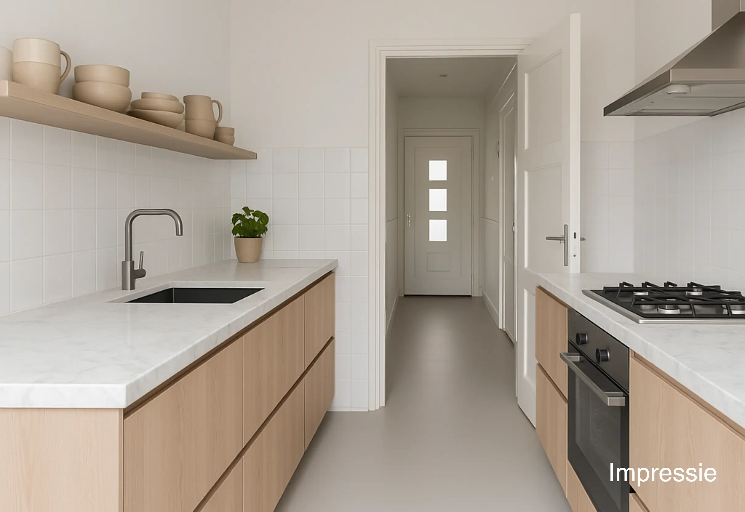 Bij binnenkomst valt direct de lichte en ruime woonkamer op, met toegang tot de achtertuin. De keuken bevindt zich aan de achterzijde en biedt veel mogelijkheden om te moderniseren of opnieuw in te delen. De tuin is royaal van formaat en leent zich uitstekend voor het realiseren van een uitbouw of bijvoorbeeld een veranda, waarmee u de leefruimte aanzienlijk kunt vergroten.