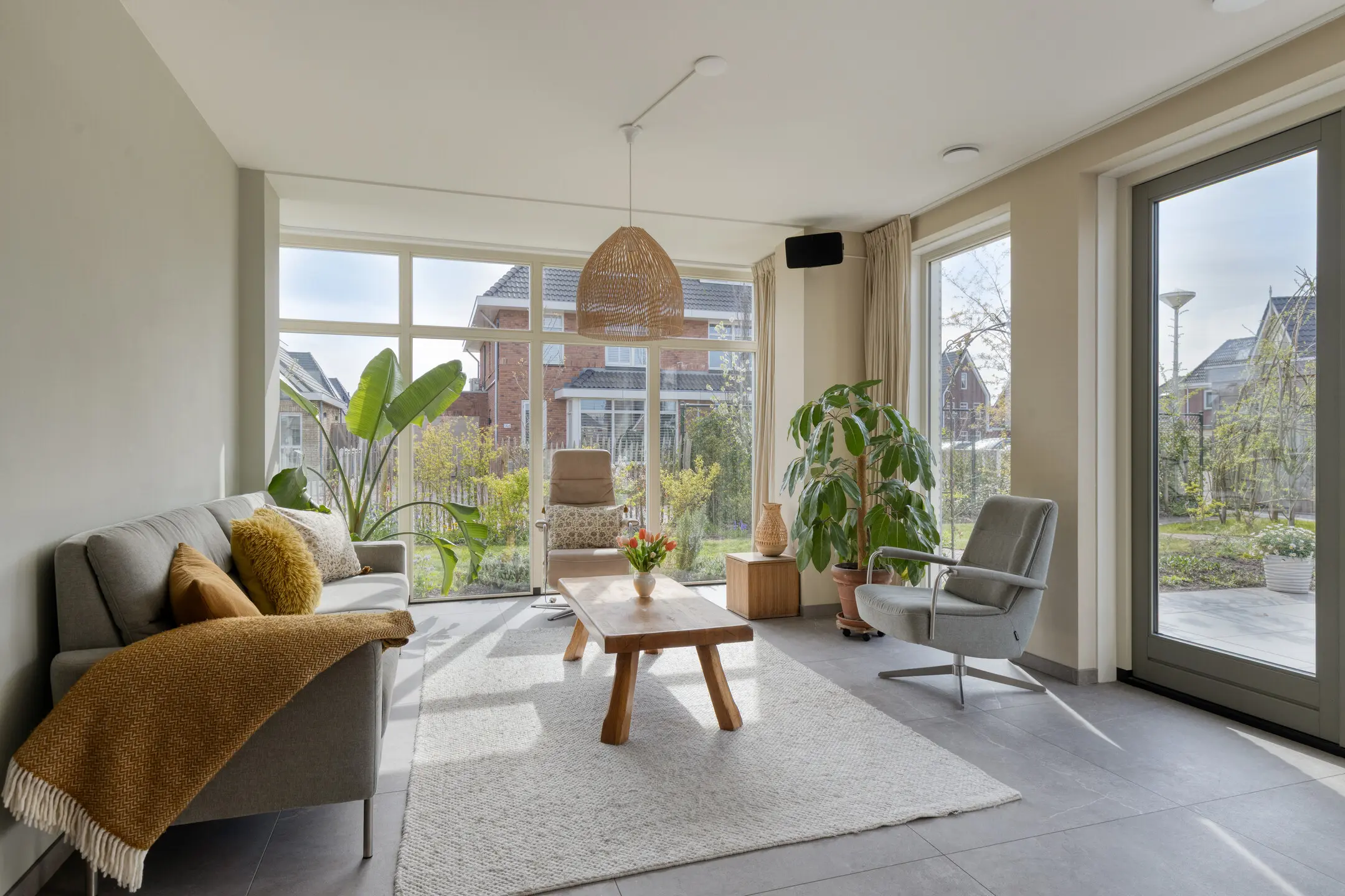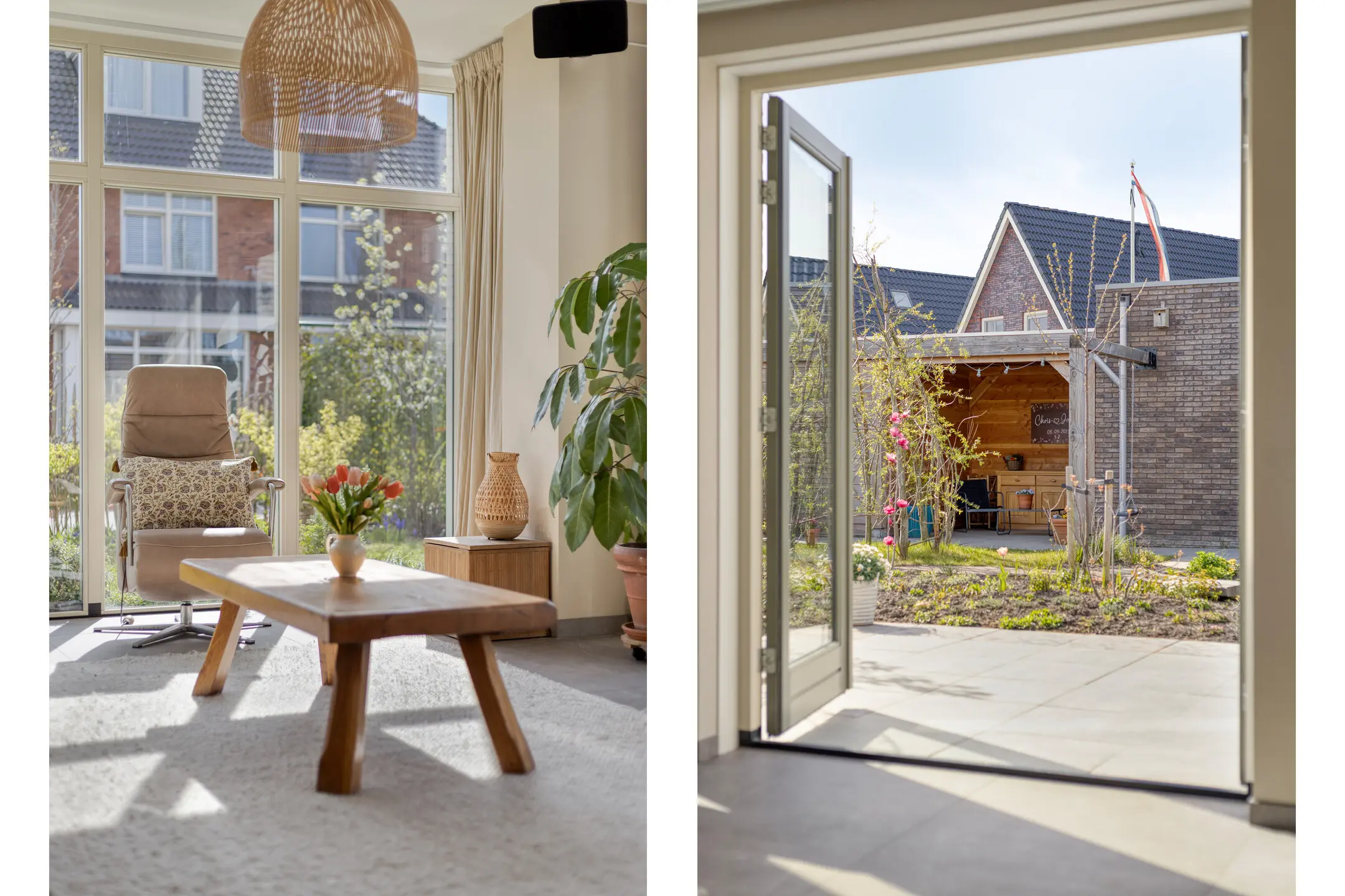 - door de vrijstaande garage nu extra zijramen in de woonkamer