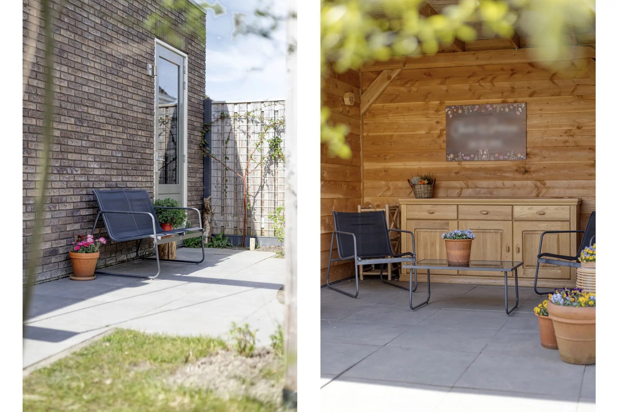 - tuin is gunstig gelegen (lees= geen directe buren), hele dag zon voor, zij en achter
