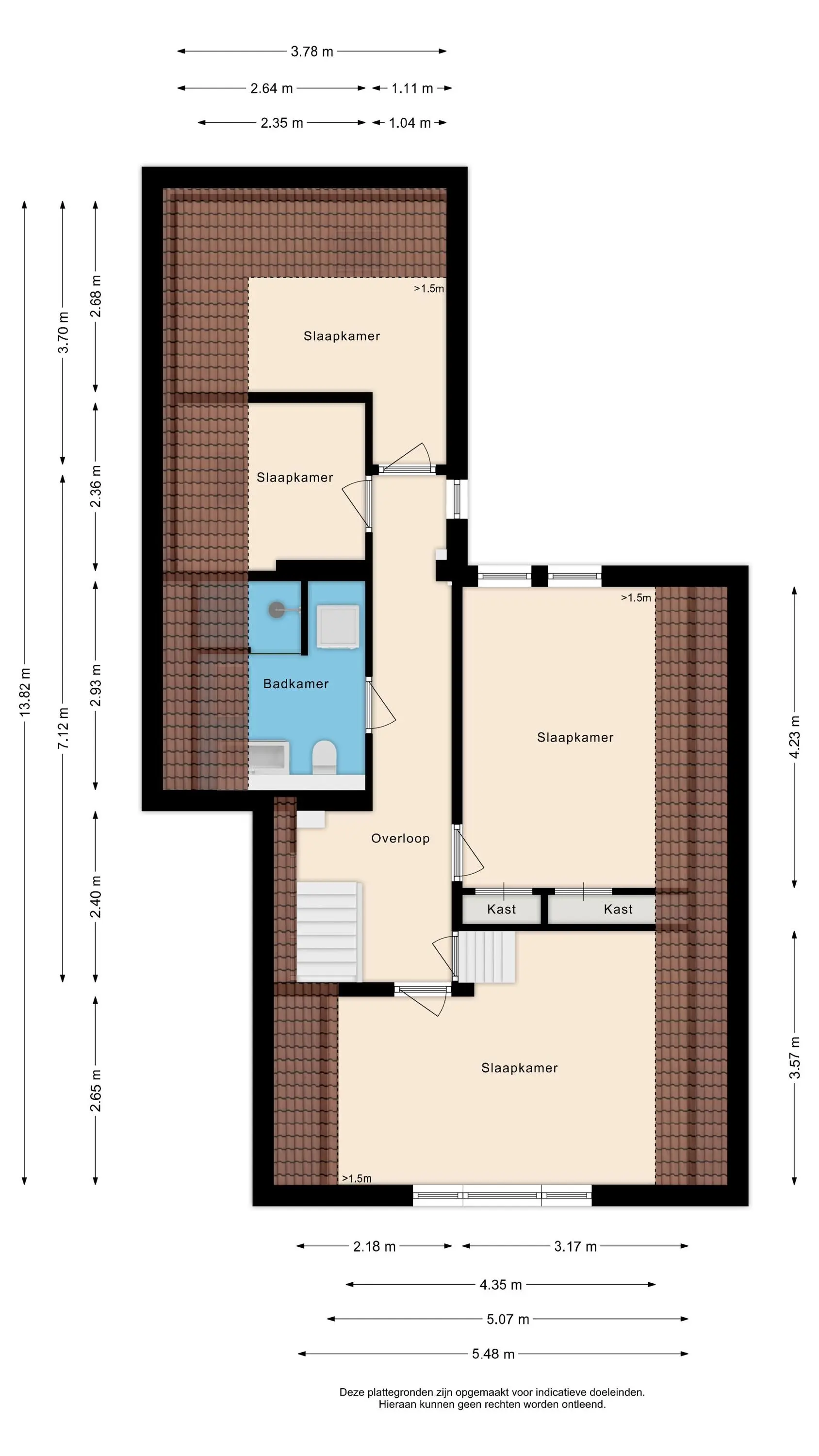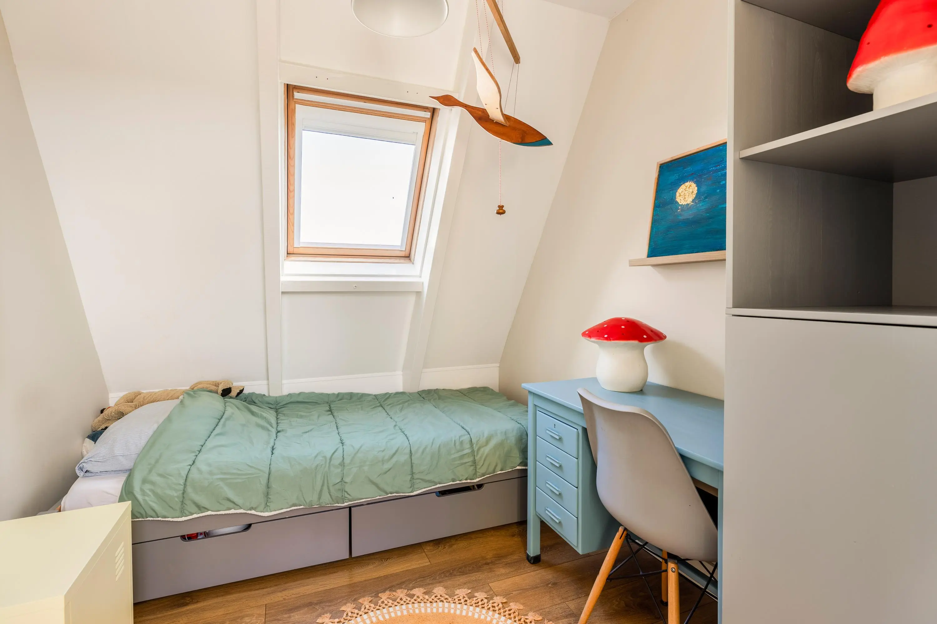 De eerste verdieping biedt ruimte aan vier comfortabele slaapkamers. Twee ruime slaapkamers waar met gemak een tweepersoonsbed in past en nog genoeg opbergruimte aanwezig is. De andere twee slaapkamers zijn iets kleiner van formaat, maar perfect als kinderkamer of wellicht werkkamer. De moderne badkamer is vernieuwd in 2019 en voorzien van vloerverwarming, een inloopdouche en wastafelmeubel. Op de tweede verdieping vind je nog twee zolderkamers die zich uitstekend lenen als slaapkamer, speelruimte, werkplek of extra opbergruimte.