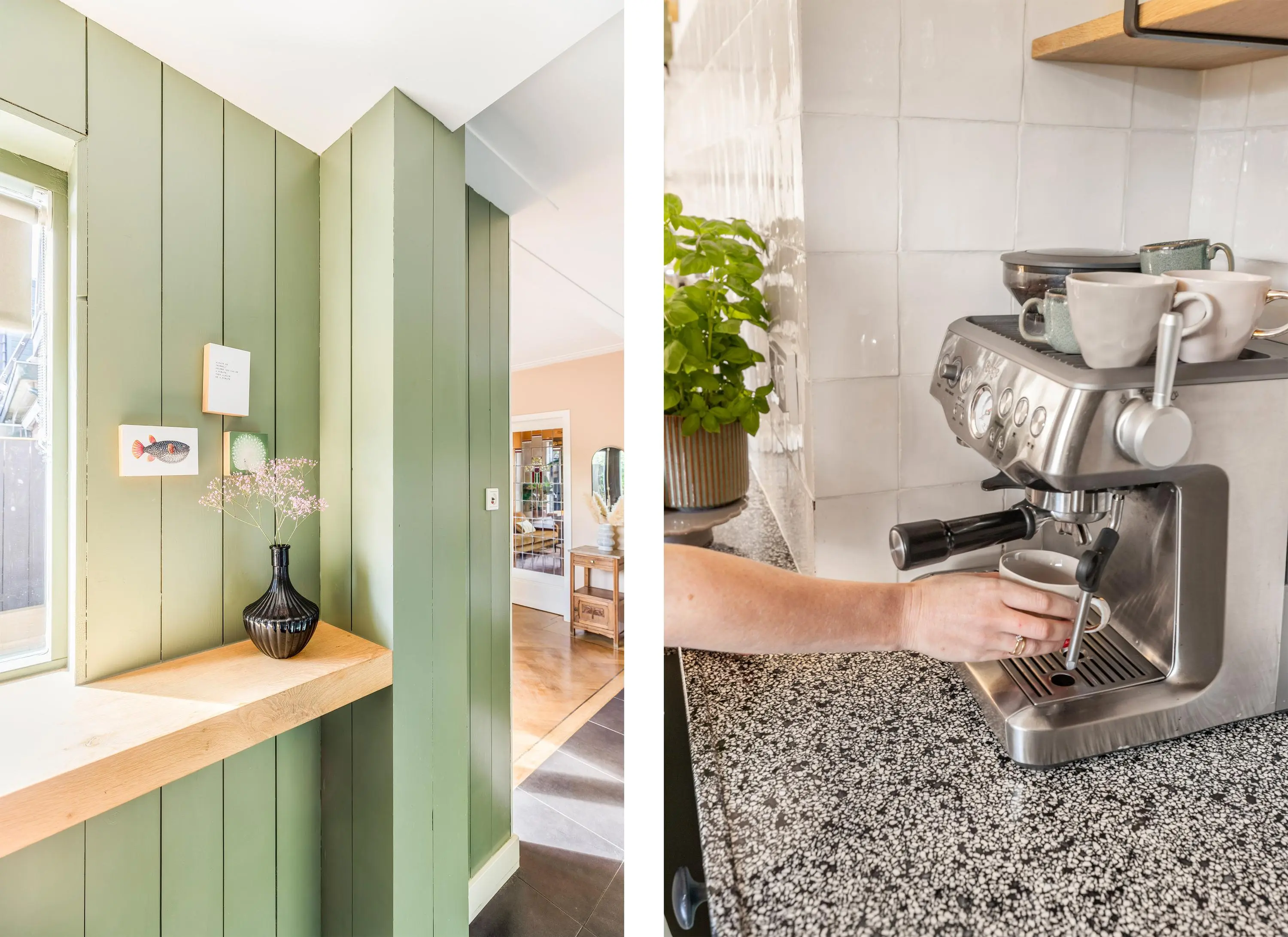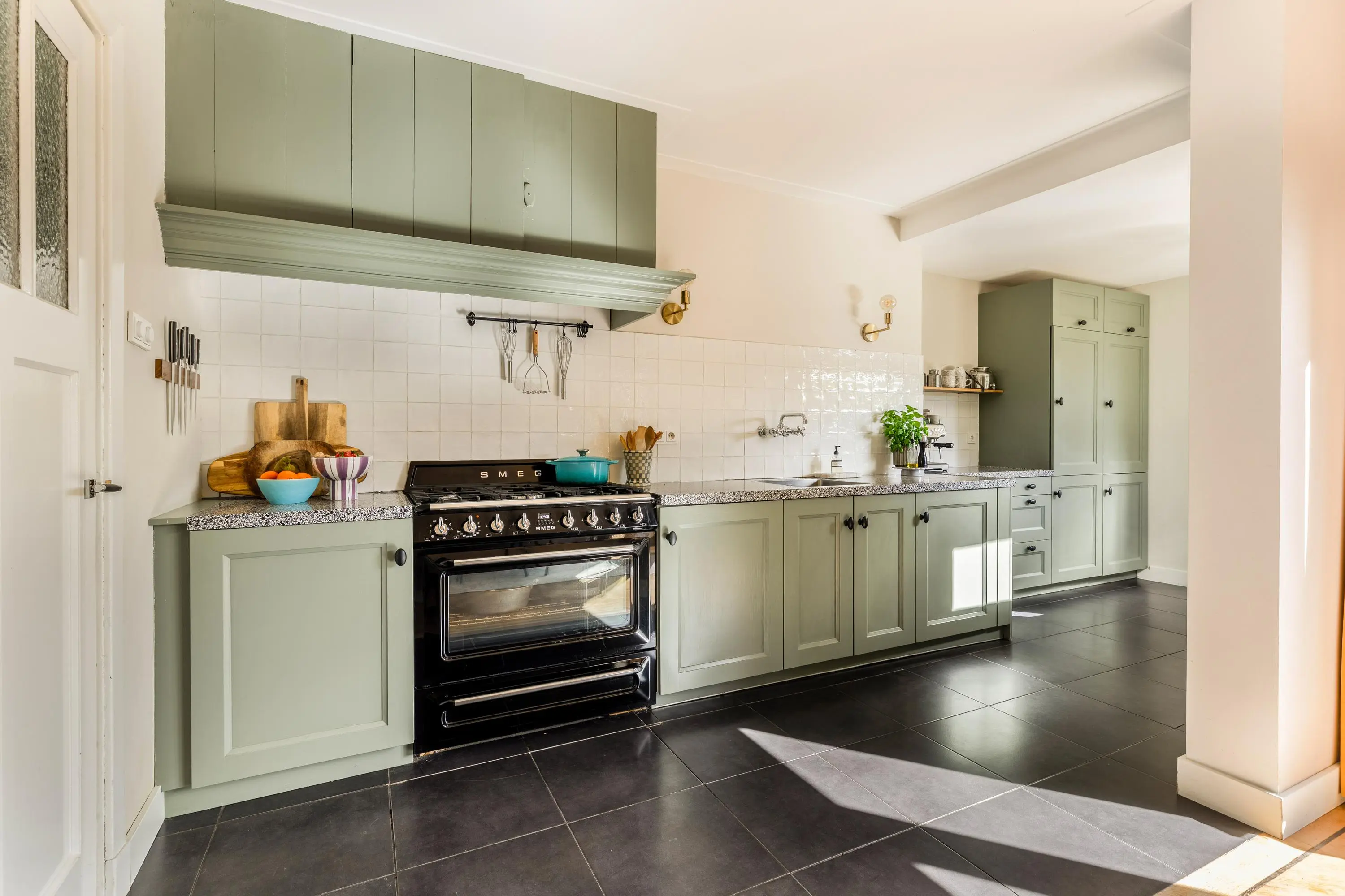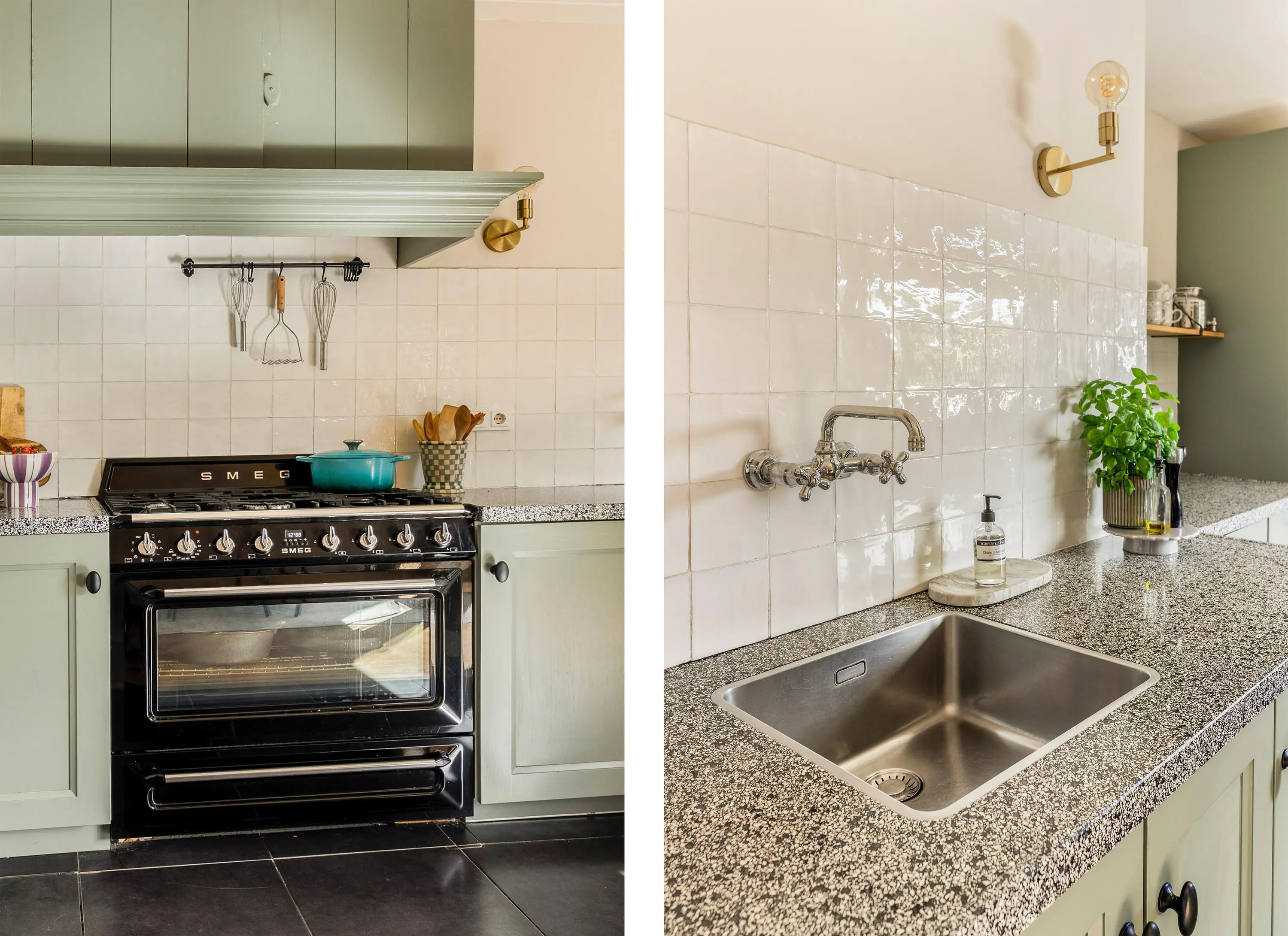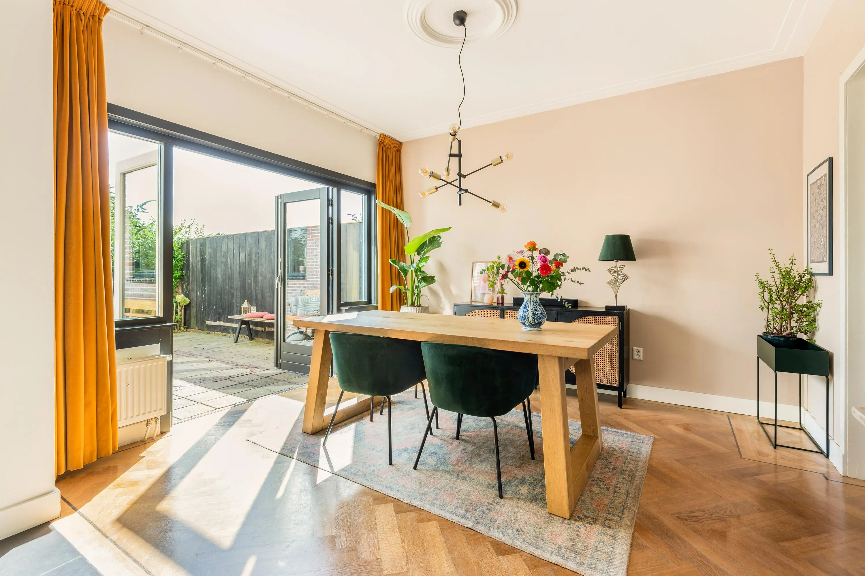 Bij binnenkomst in de woning val je direct in de karaktervolle details; prachtige glas in lood deuren die de voorhal van de gang scheiden. In de gang bevinden zich het toilet en de meterkast. Vervolgens kom je in de woonkamer die dankzij de uitbouw heerlijk ruim aanvoelt. De lichte woonkamer met erker en houtkachel ademt sfeer, terwijl de openslaande deuren naar de tuin zorgen voor een fijne verbinding met buiten. De keuken is een echte blikvanger: luxe uitgevoerd, praktisch ingedeeld en voorzien van inbouwapparatuur zoals koel-vries combinatie, een combi-oven en voor de liefhebber staat er zelfs een SMEG-fornuis! Aangrenzend vind je een praktische open bijkeuken met toegang tot de tuin.