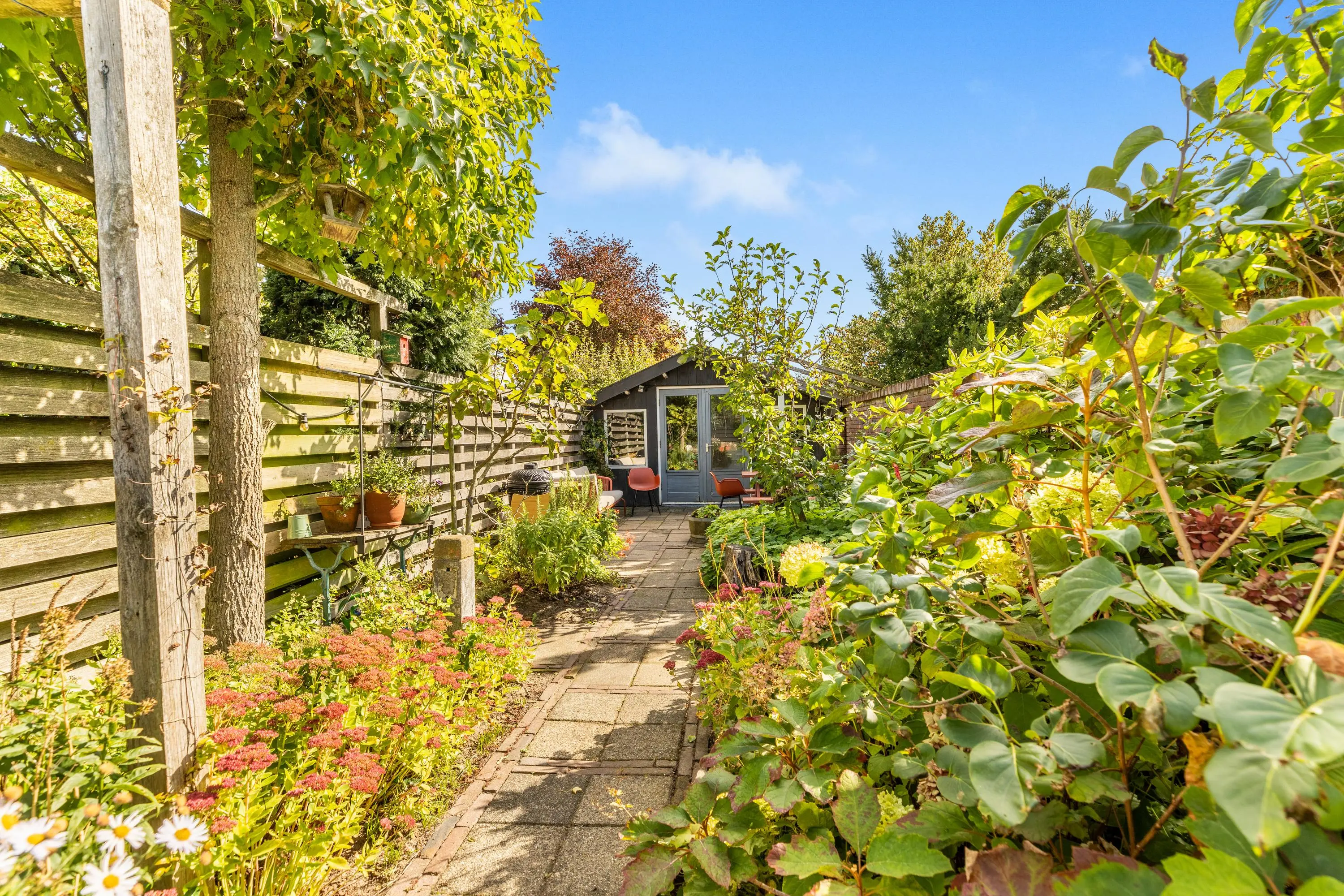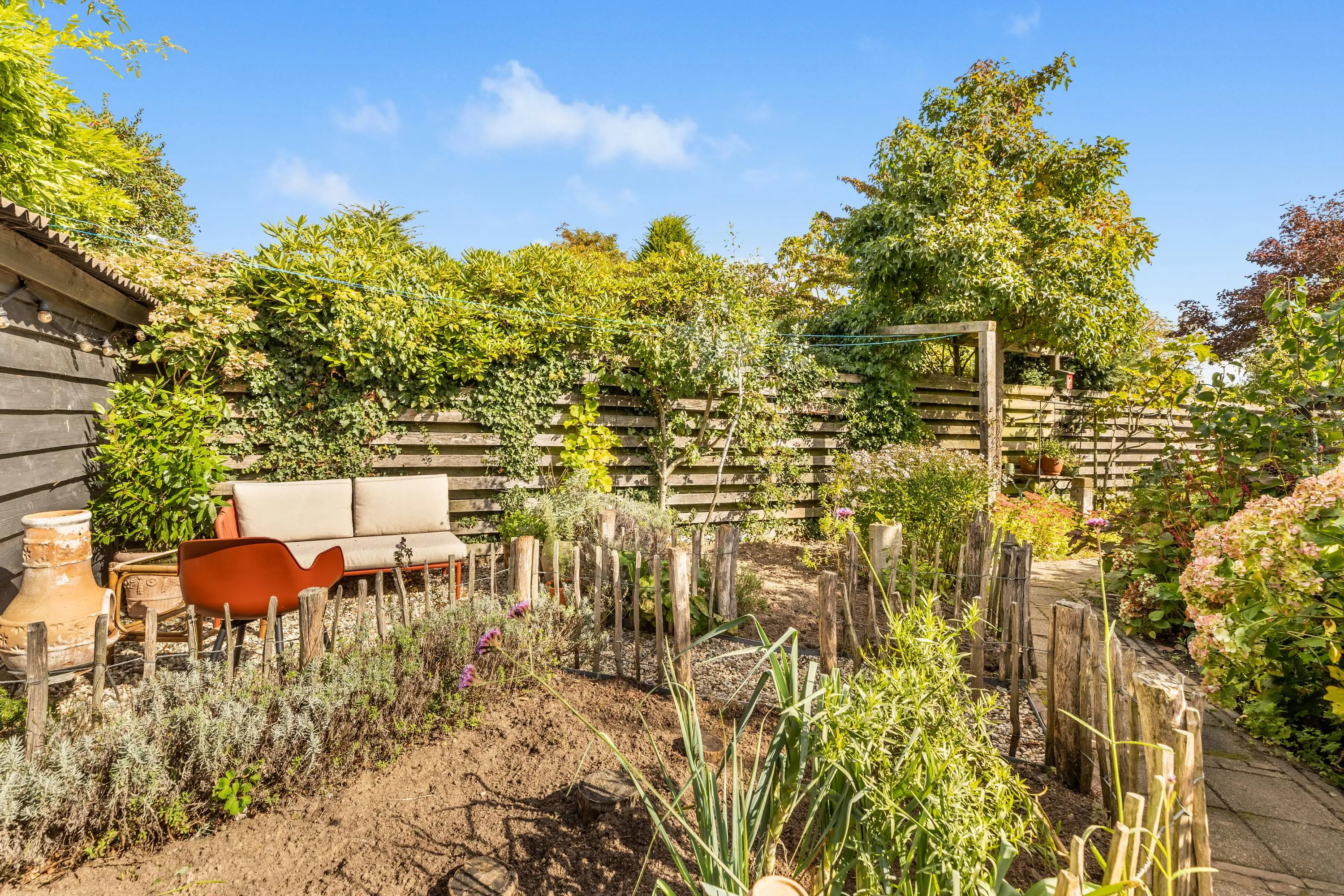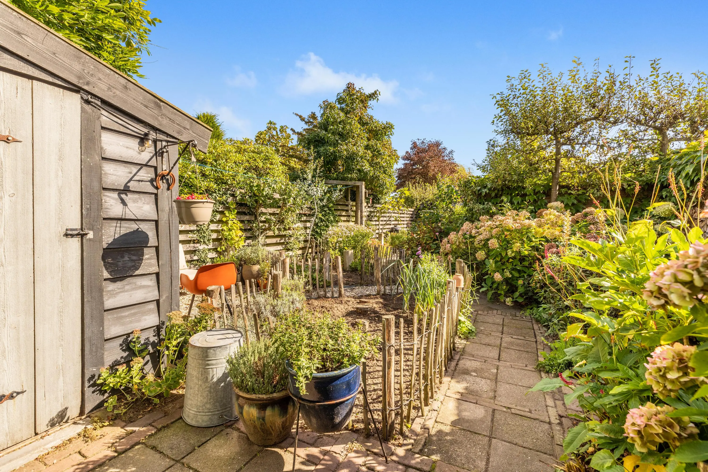 De achtertuin, gelegen op het oosten, is diep en zonnig. Hier geniet je de hele dag door van fijne zitplekken op de verschillende terrassen. Tevens zijn er nog meerdere schuurtjes aanwezig voor het opbergen van fietsen en/of tuingereedschap.