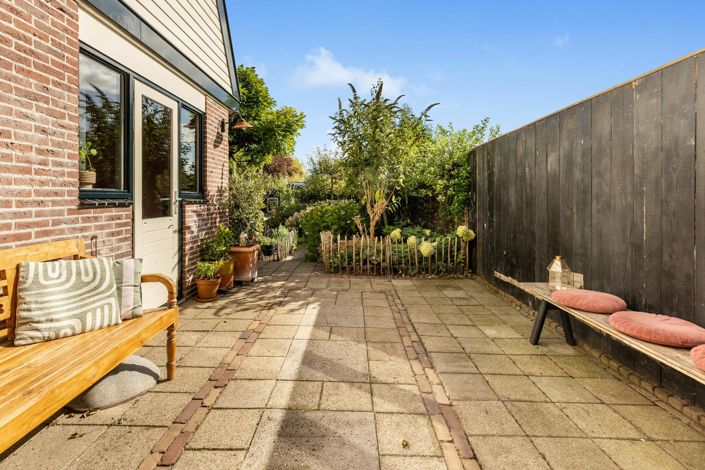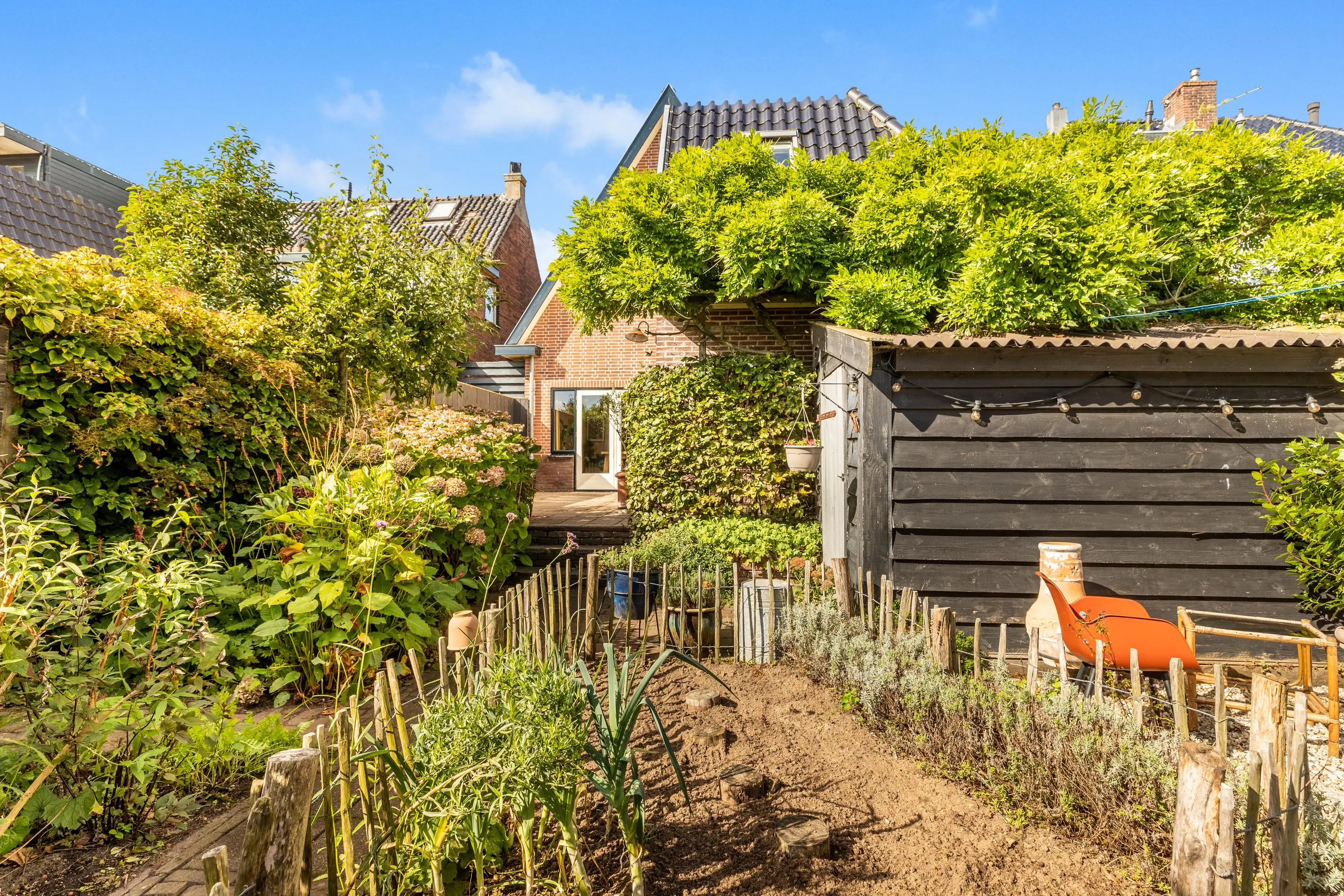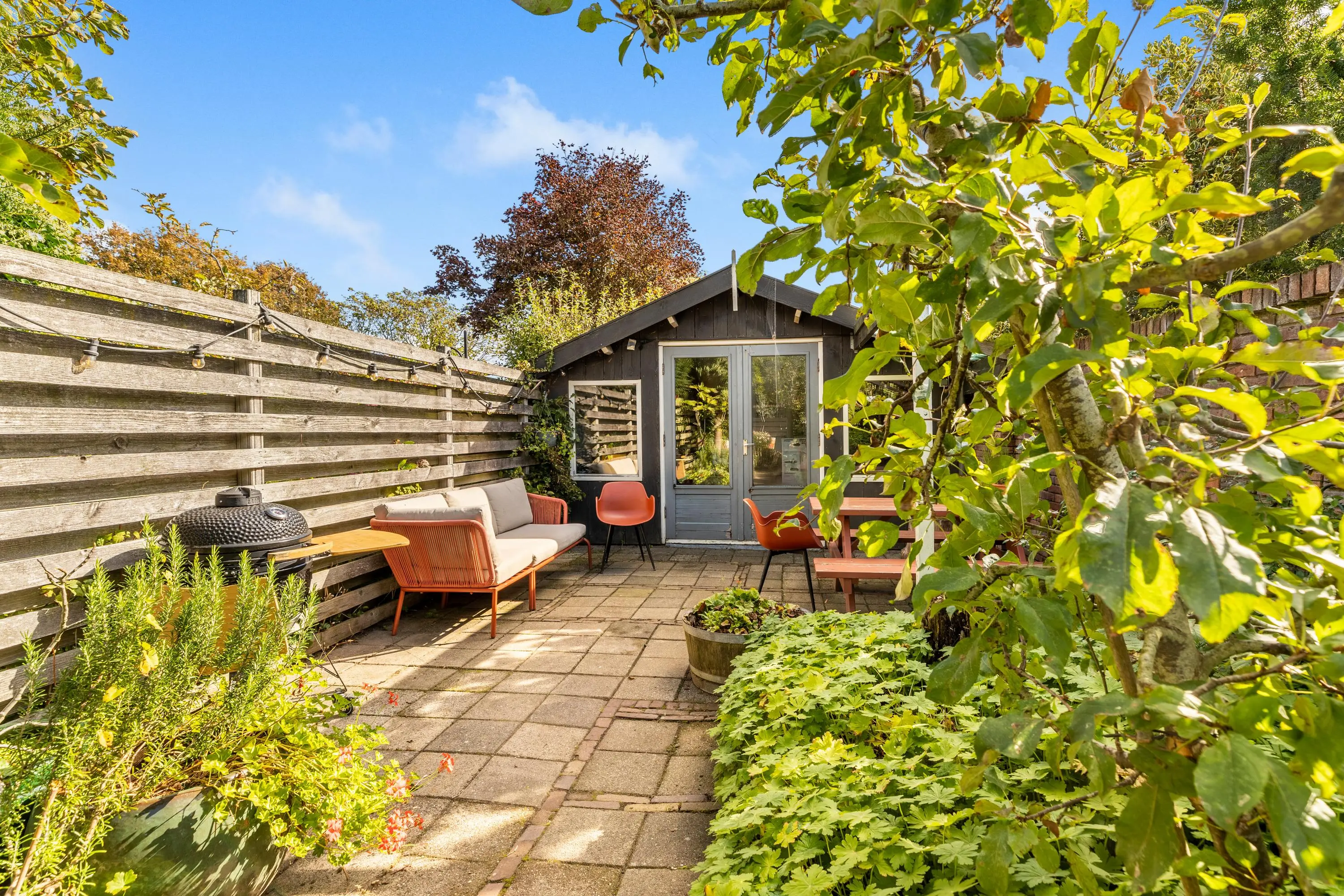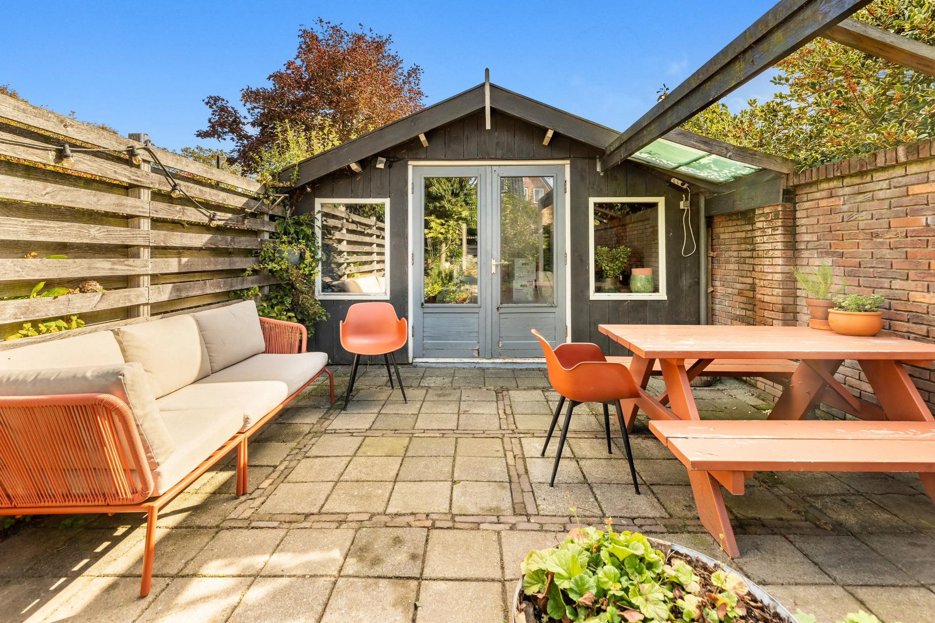 De achtertuin, gelegen op het oosten, is diep en zonnig. Hier geniet je de hele dag door van fijne zitplekken op de verschillende terrassen. Tevens zijn er nog meerdere schuurtjes aanwezig voor het opbergen van fietsen en/of tuingereedschap.