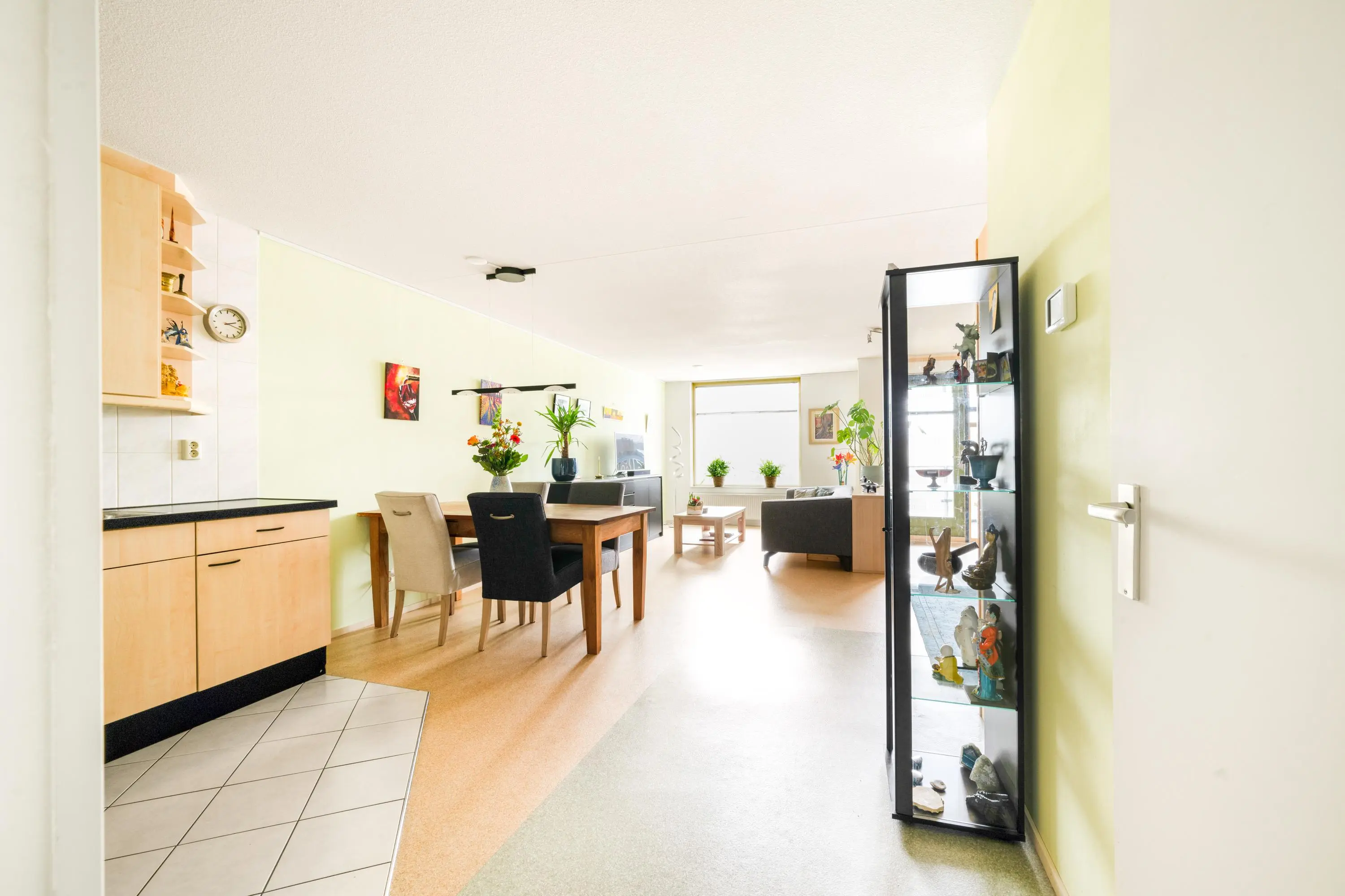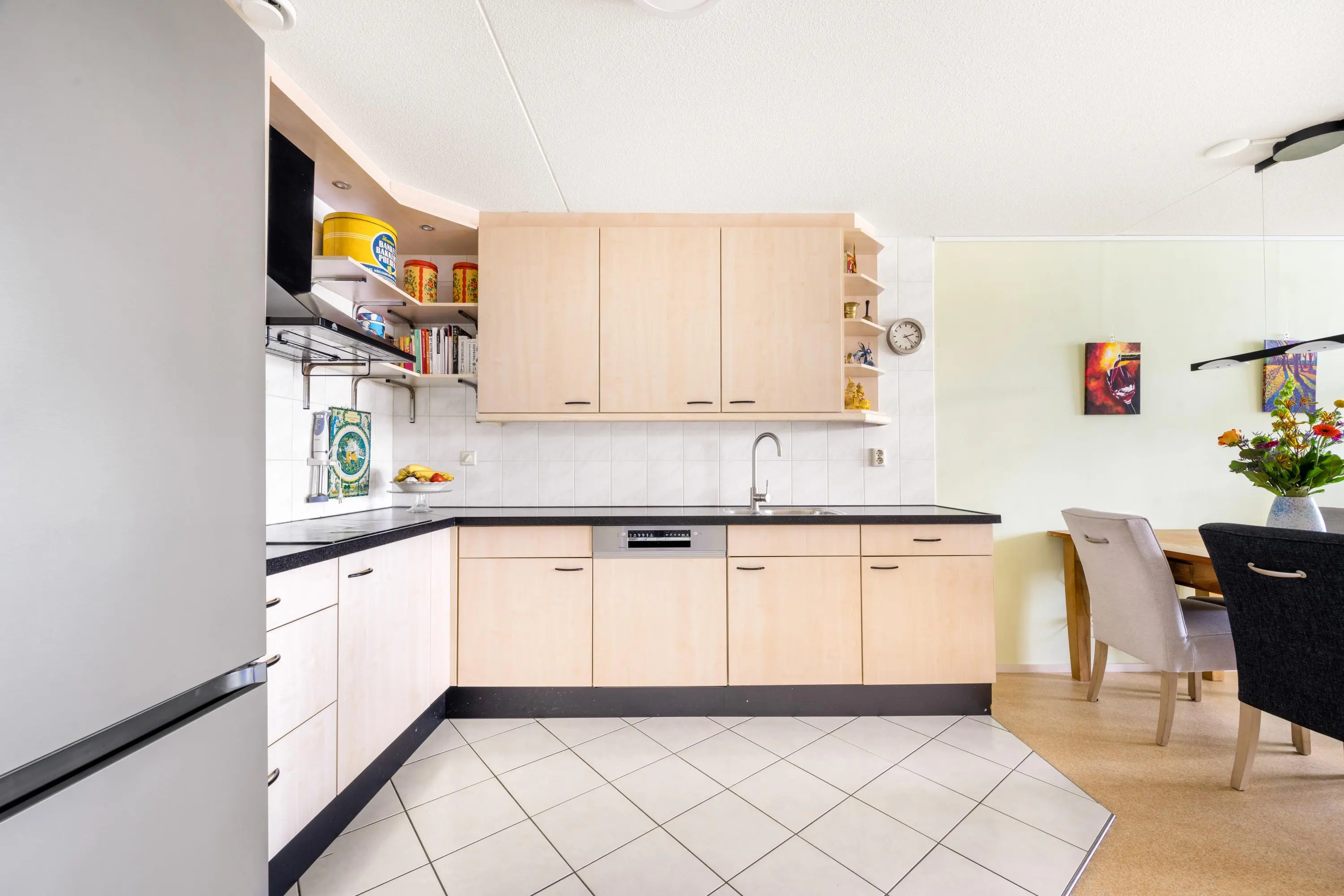 Via het trappenhuis treed je via de galerij de hal binnen. Deze hal biedt toegang tot alle vertrekken van het appartement. In het centrale deel van het appartement bevindt zich de open keuken welke is voorzien van een vaatwasser, inductie kookplaat met afzuigkap en een separate koel- vriescombinatie. De keuken staat in directe verbinding met de ruime woonkamer. De meeste tijd breng je thuis door in de woonkamer en door dat deze woonkamer van formaat is, maakt dit het erg prettig wonen. Vanuit de woonkamer bereik je het zonnige balkon met ligging op het zuiden. Het appartement beschikt over twee slaapkamers waarvan één slaapkamer van een zeer goed formaat en de andere slaapkamer een ideale logeer kamer of thuiswerkplek is. De badkamer is voorzien van een douche/ligbad, wastafel en wasmachine-/ drogeraansluiting. In de hal bevindt zich nog het separate toilet. Het appartement beschikt over extra dik isolatie glas en hierdoor is het geluid van buiten en de spoorweg amper te horen. Op de begane grond heb je een garagebox met lekker veel opbergruimte. Parkeren rondom het complex is openbaar en gratis.