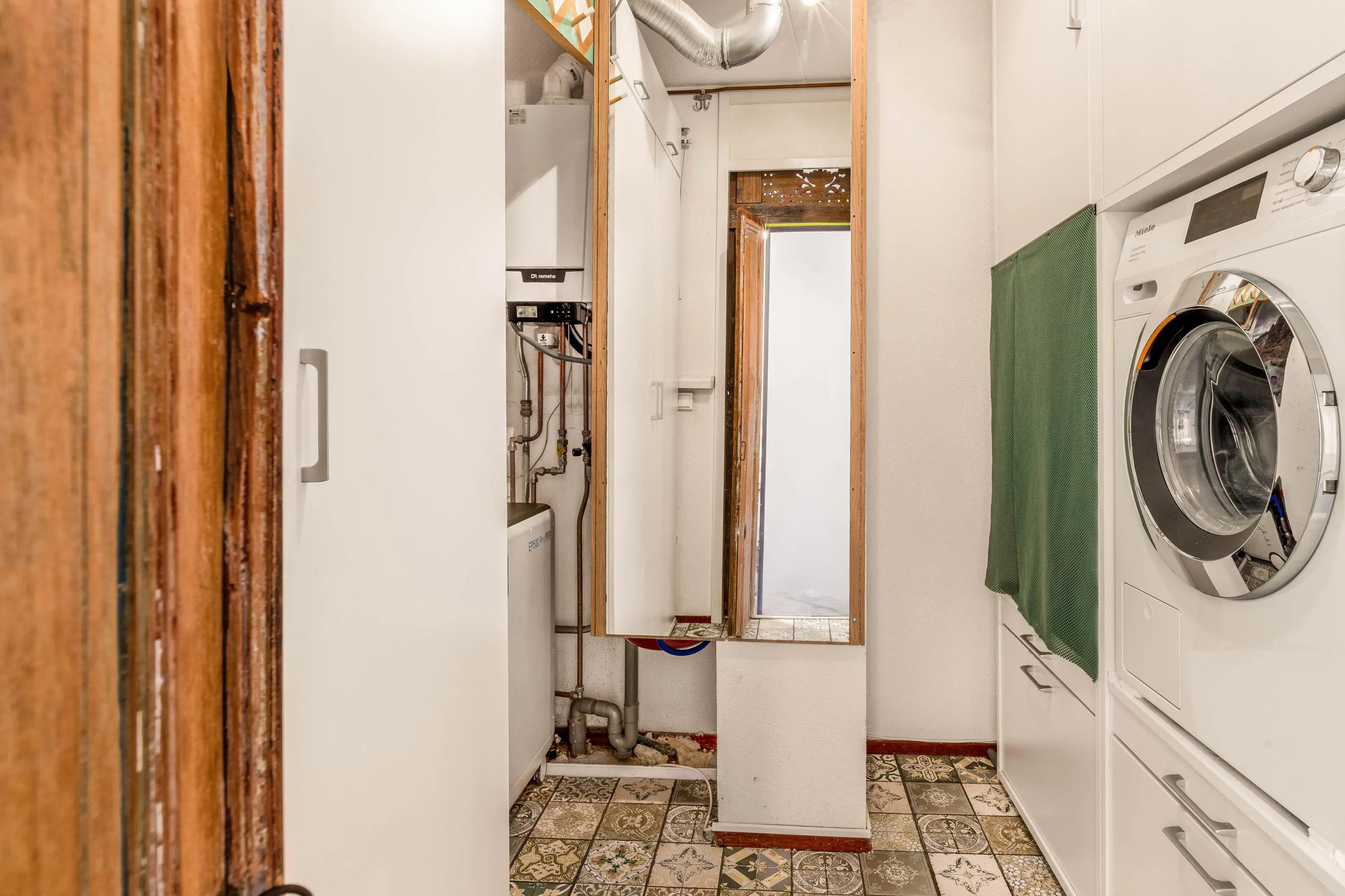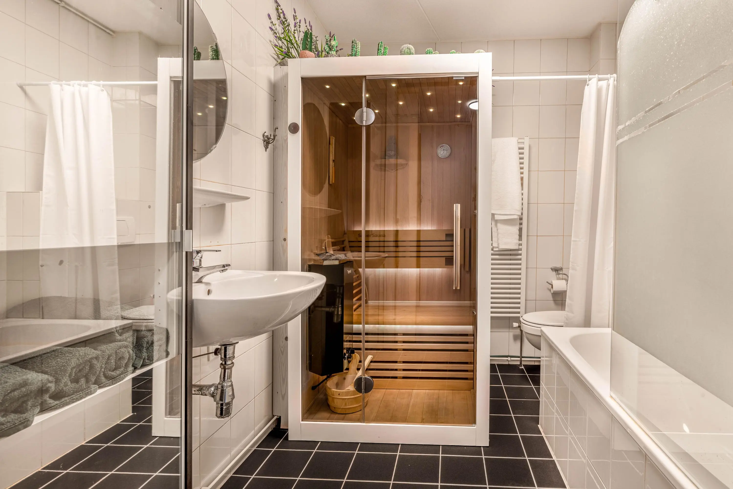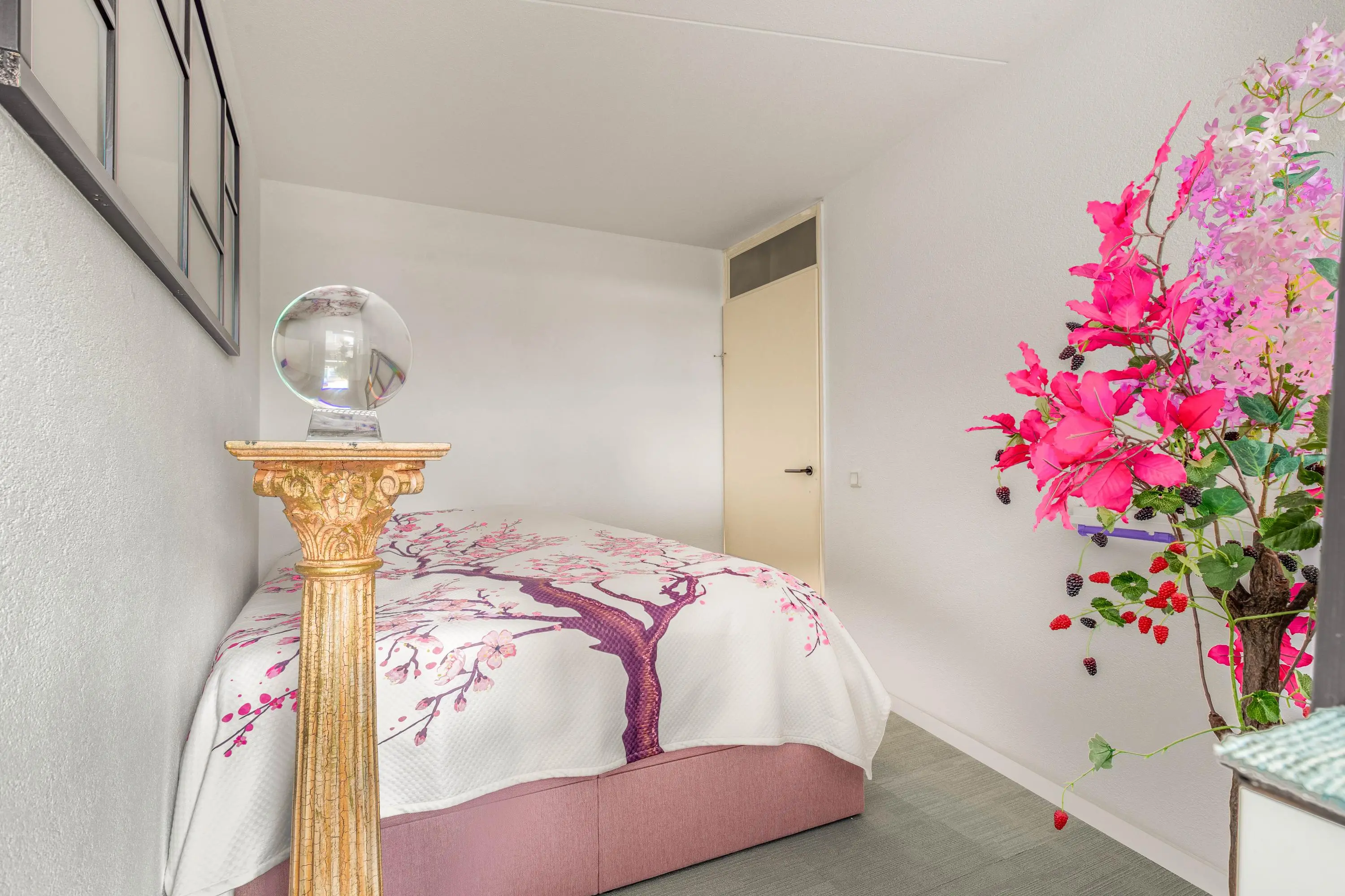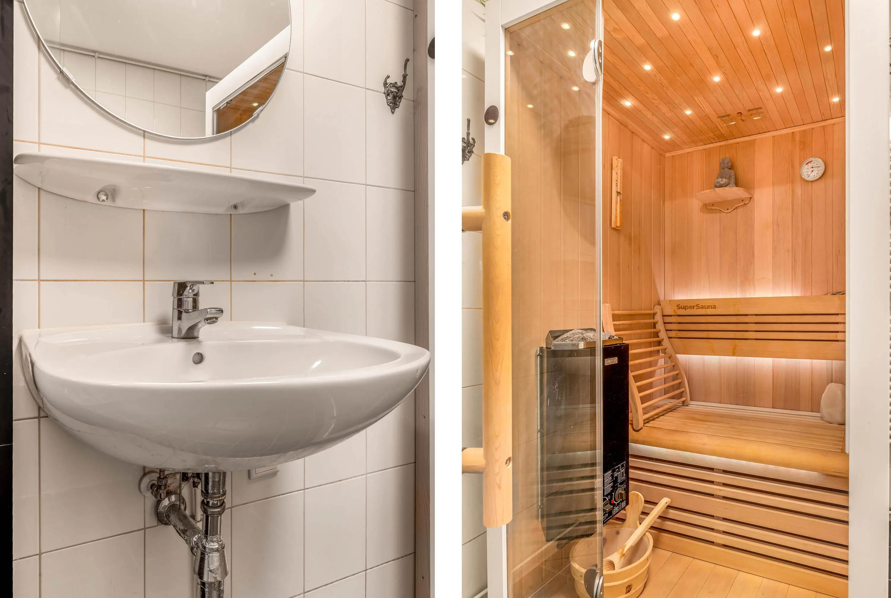 Het appartement beschikt over twee goed bemeten slaapkamers, beiden rustig gelegen en met voldoende ruimte voor een comfortabel bed en kasten. De ruime badkamer straalt ontspanning uit en is van alle gemakken voorzien. Het beschikt over een bad, douche, toilet, wastafelmeubel en een Finse sauna, kortom een heerlijke ruimte om echt even helemaal tot rust te komen. Er is nog een separate wasruimte aanwezig, waar een handige inbouwkast is gecreëerd voor extra opslag en toch netjes is weggewerkt.
