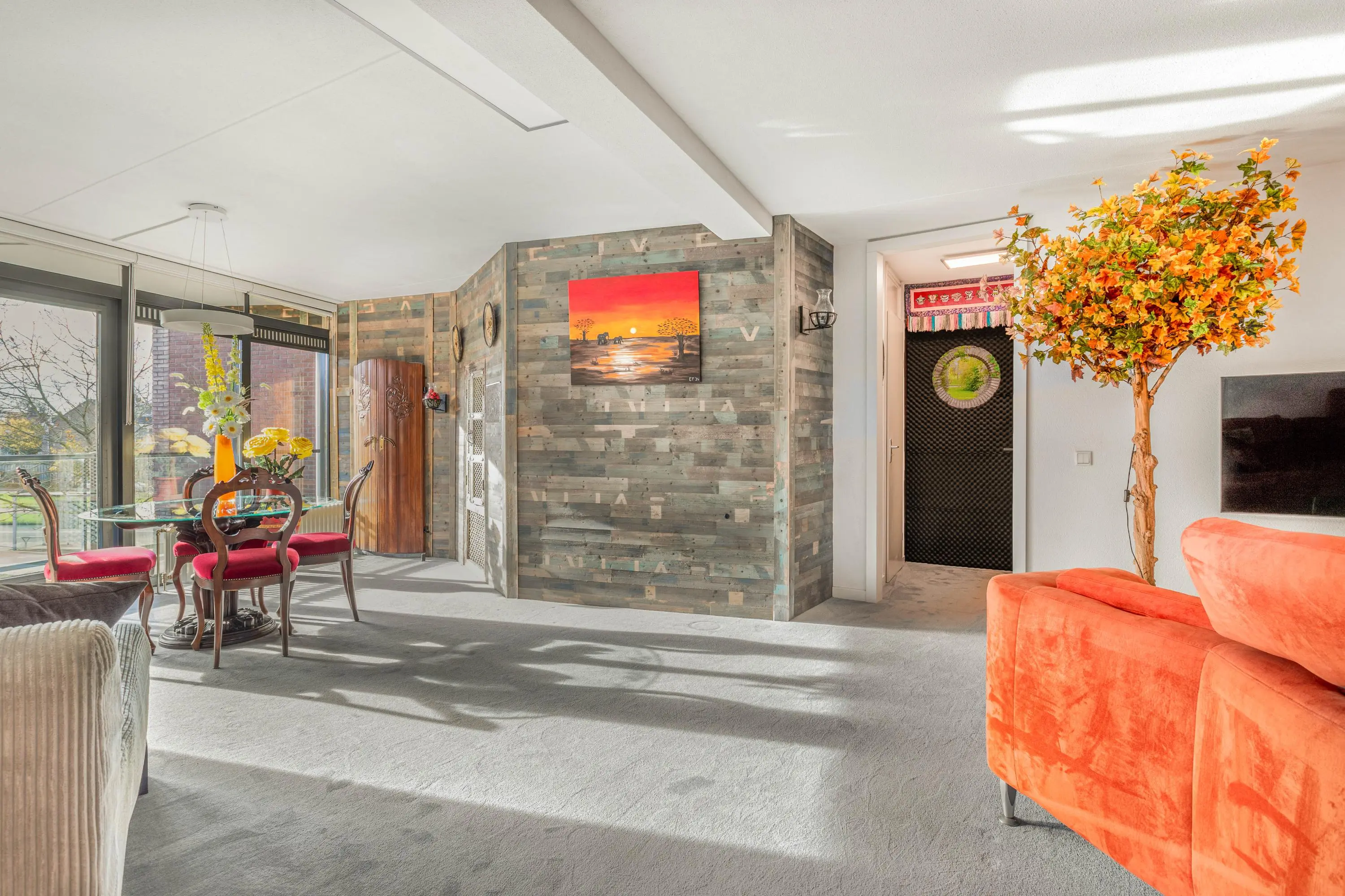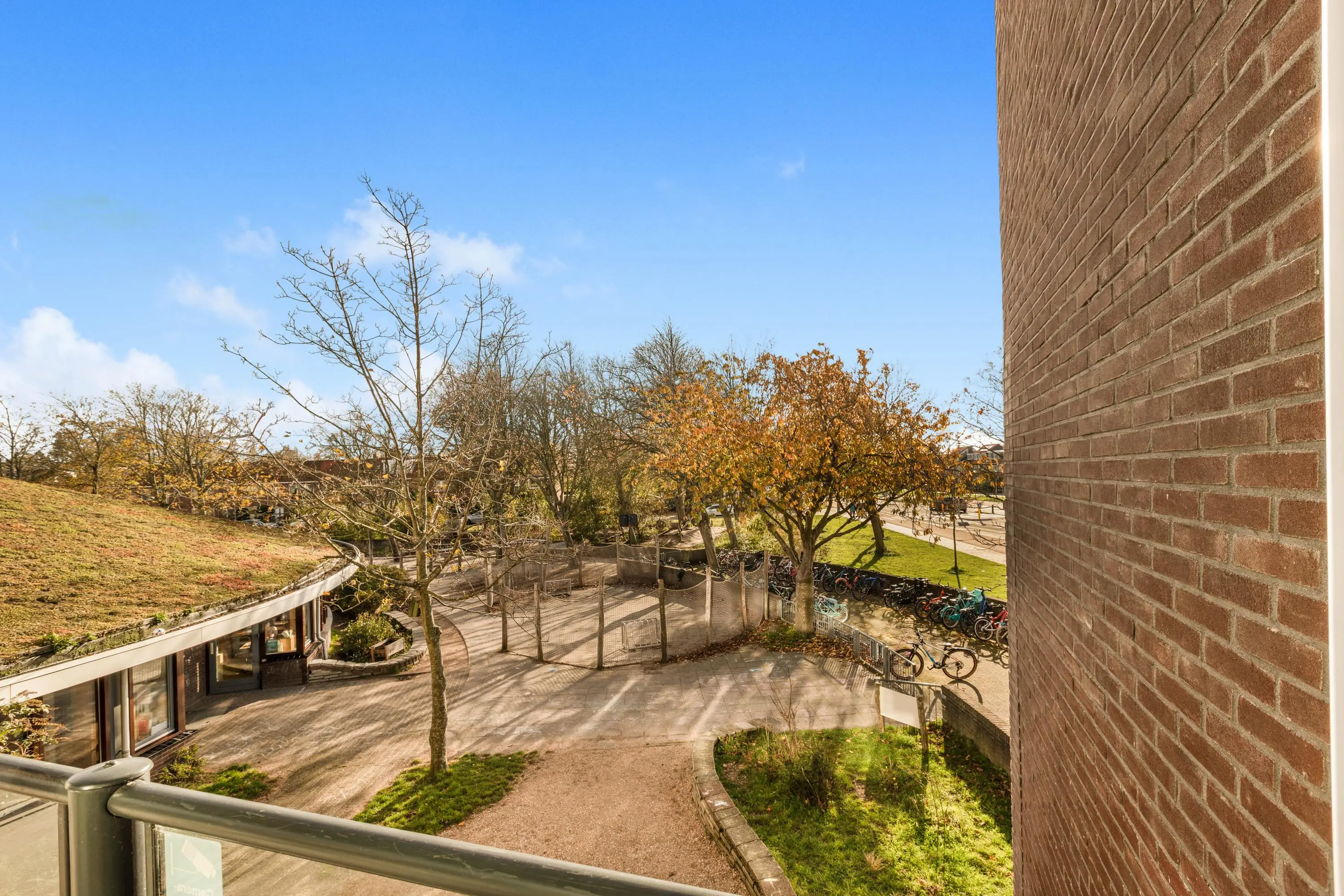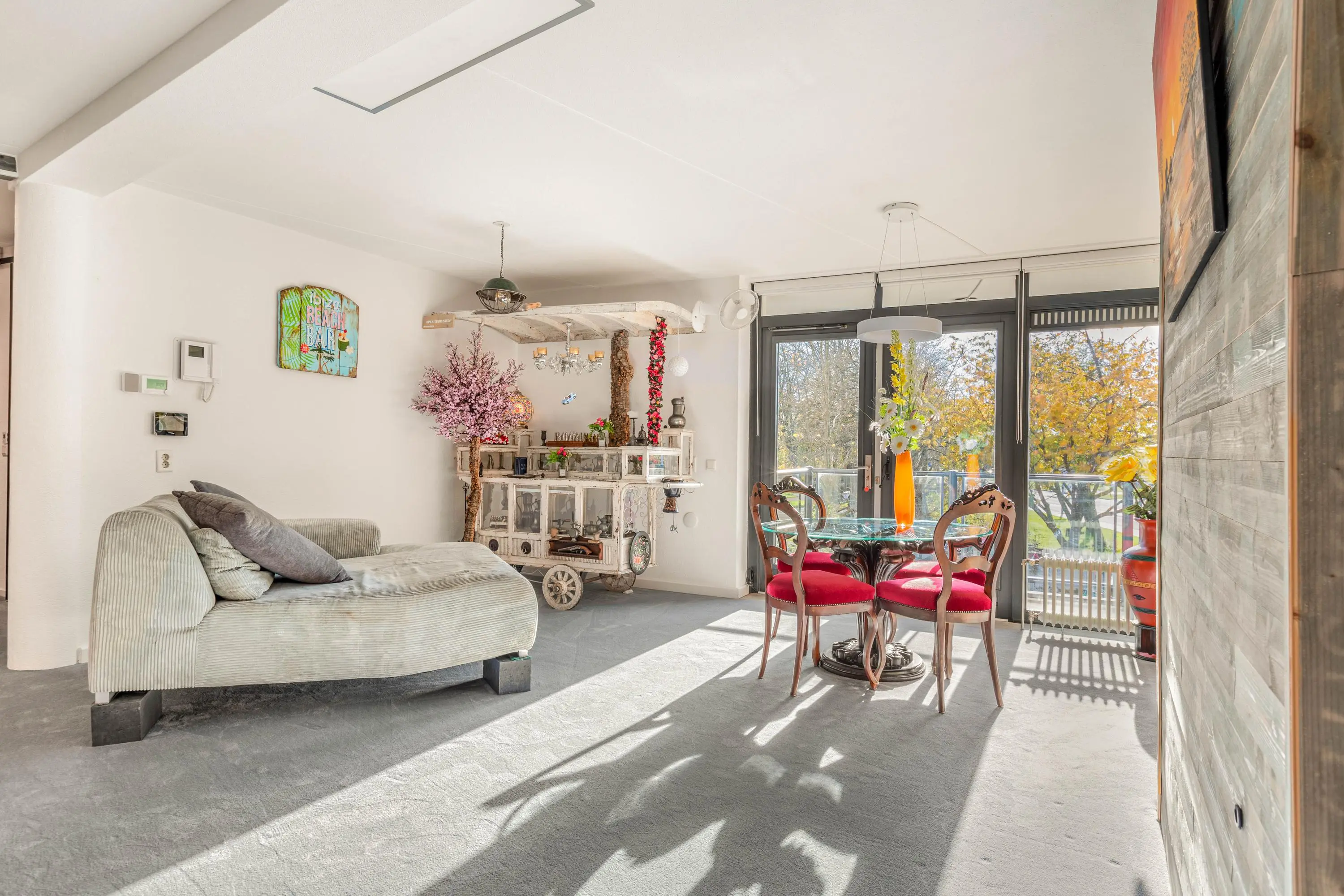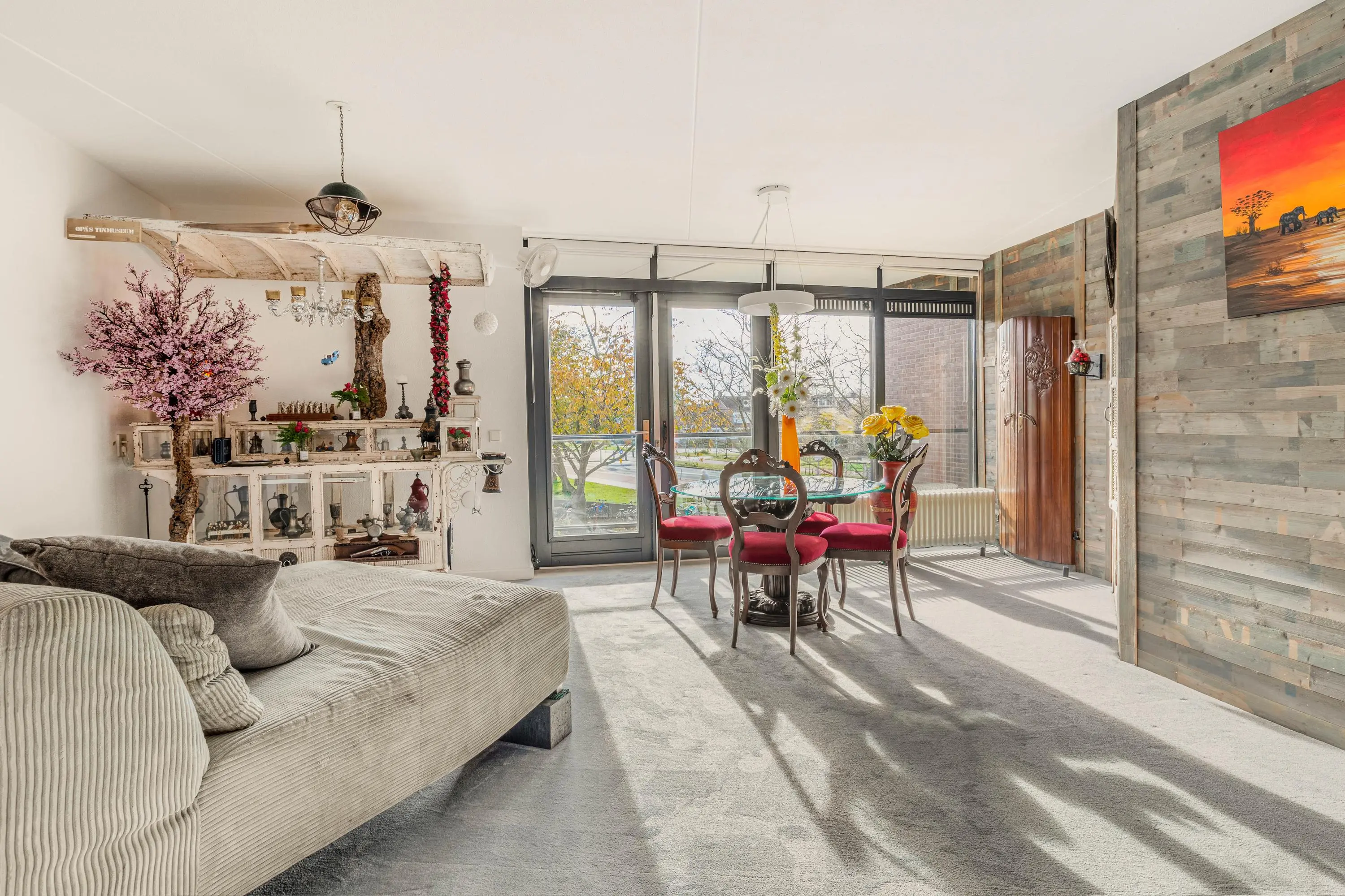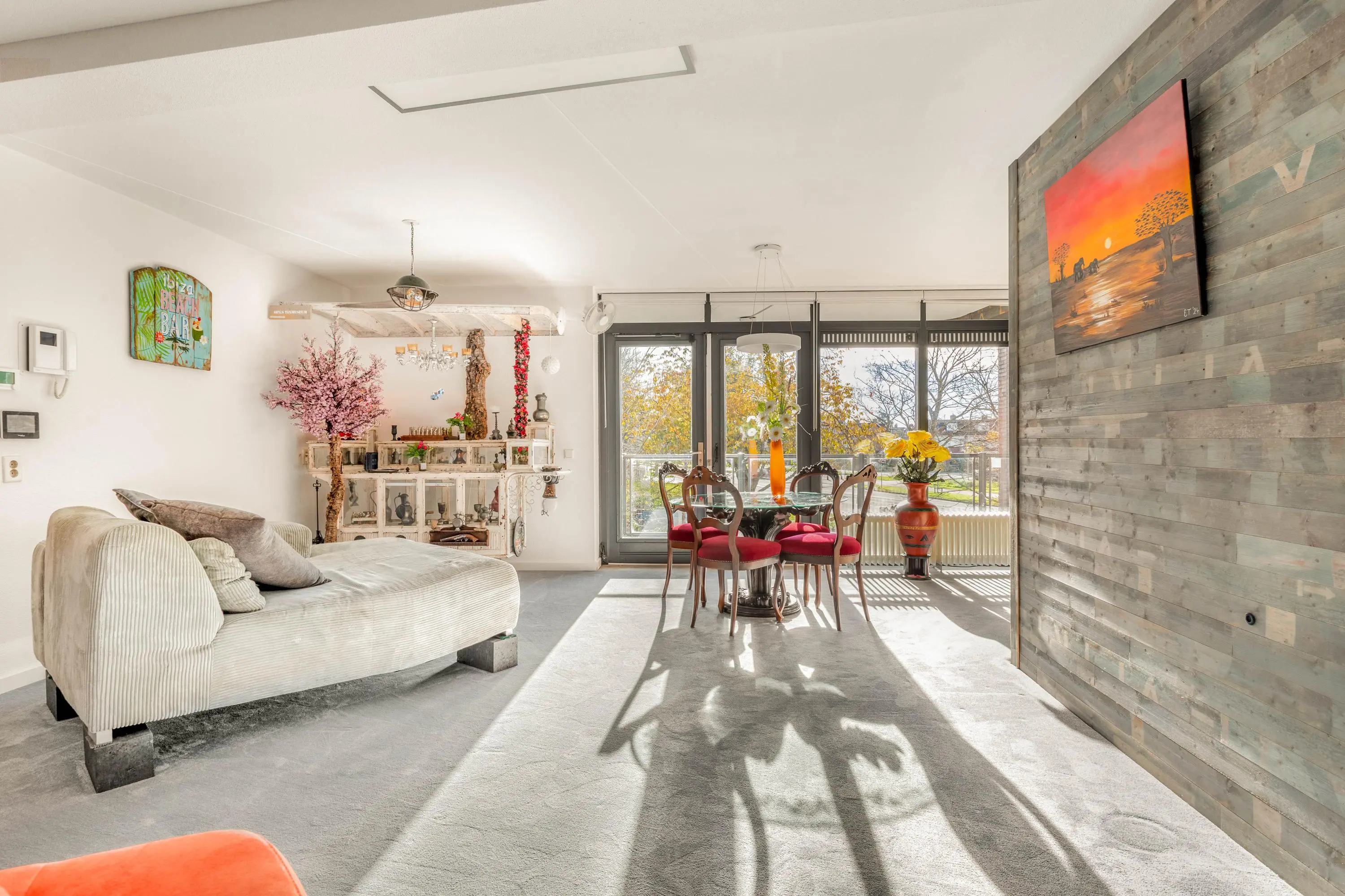 Het appartement bevindt zich op de eerste verdieping van het complex. De woonkamer vormt samen met de keuken het hart van het appartement. Een fijne plek om te koken, te eten en te genieten van lange avonden met vrienden of familie. Vanuit de woonkamer heb je via de openslaande deuren toegang tot het balkon, die een zeer gunstige zuidwest ligging heeft. Vanuit dit balkon heb je prettig uitzicht en met helder weer kun je zelfs de duinen zien. Aan de achterzijde van het appartement ligt een zonnig terras op het zuidoosten, waar je de hele dag door kunt genieten van zowel zon als schaduw.