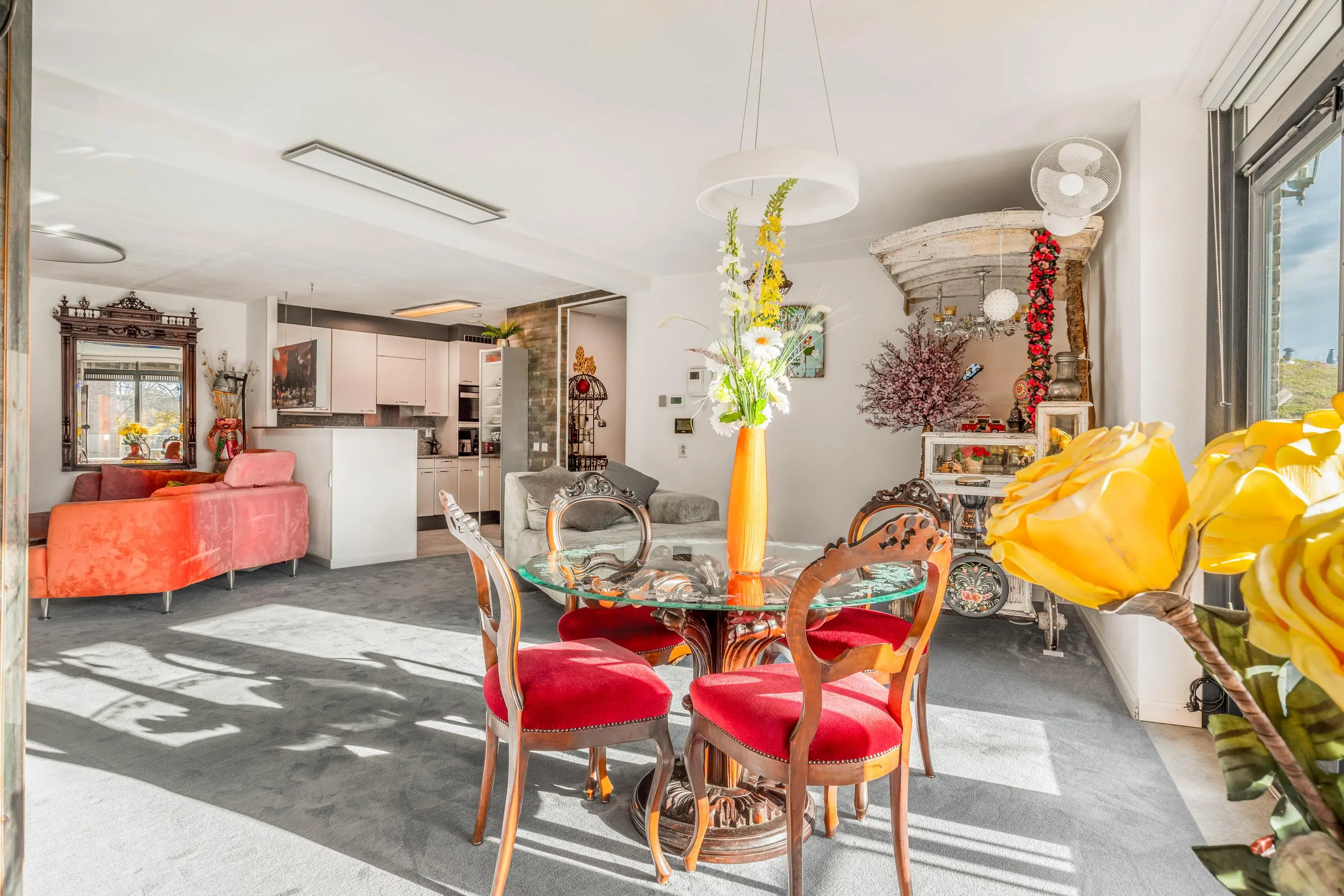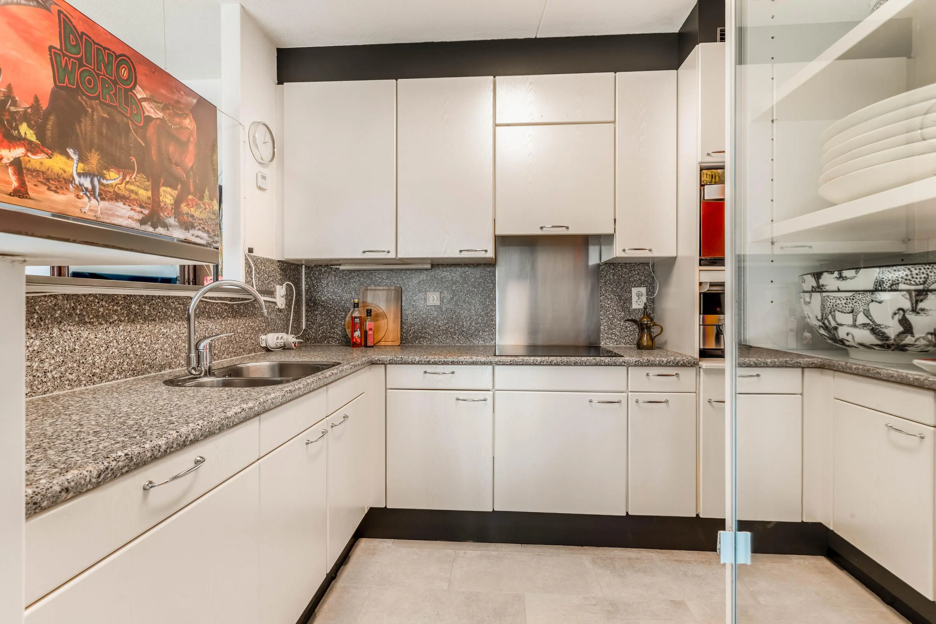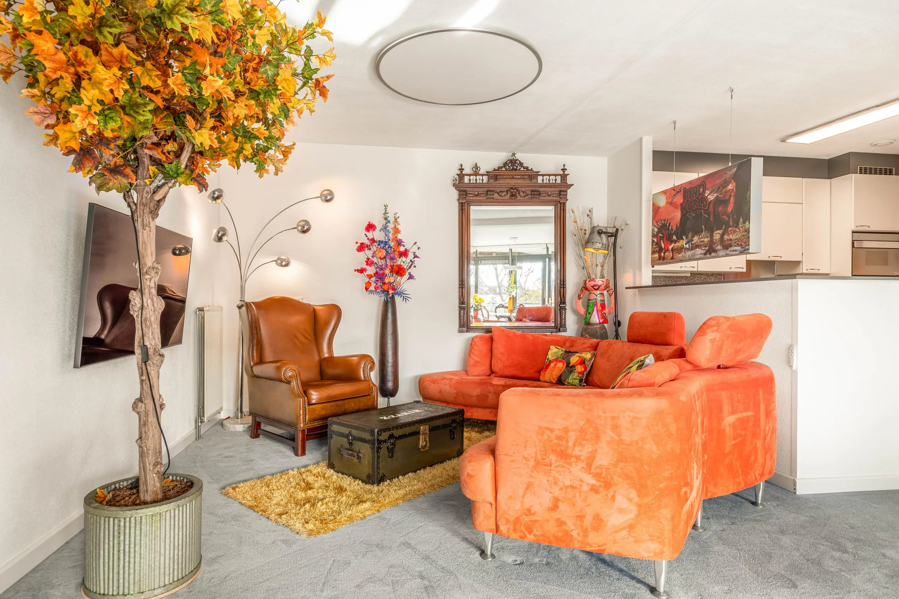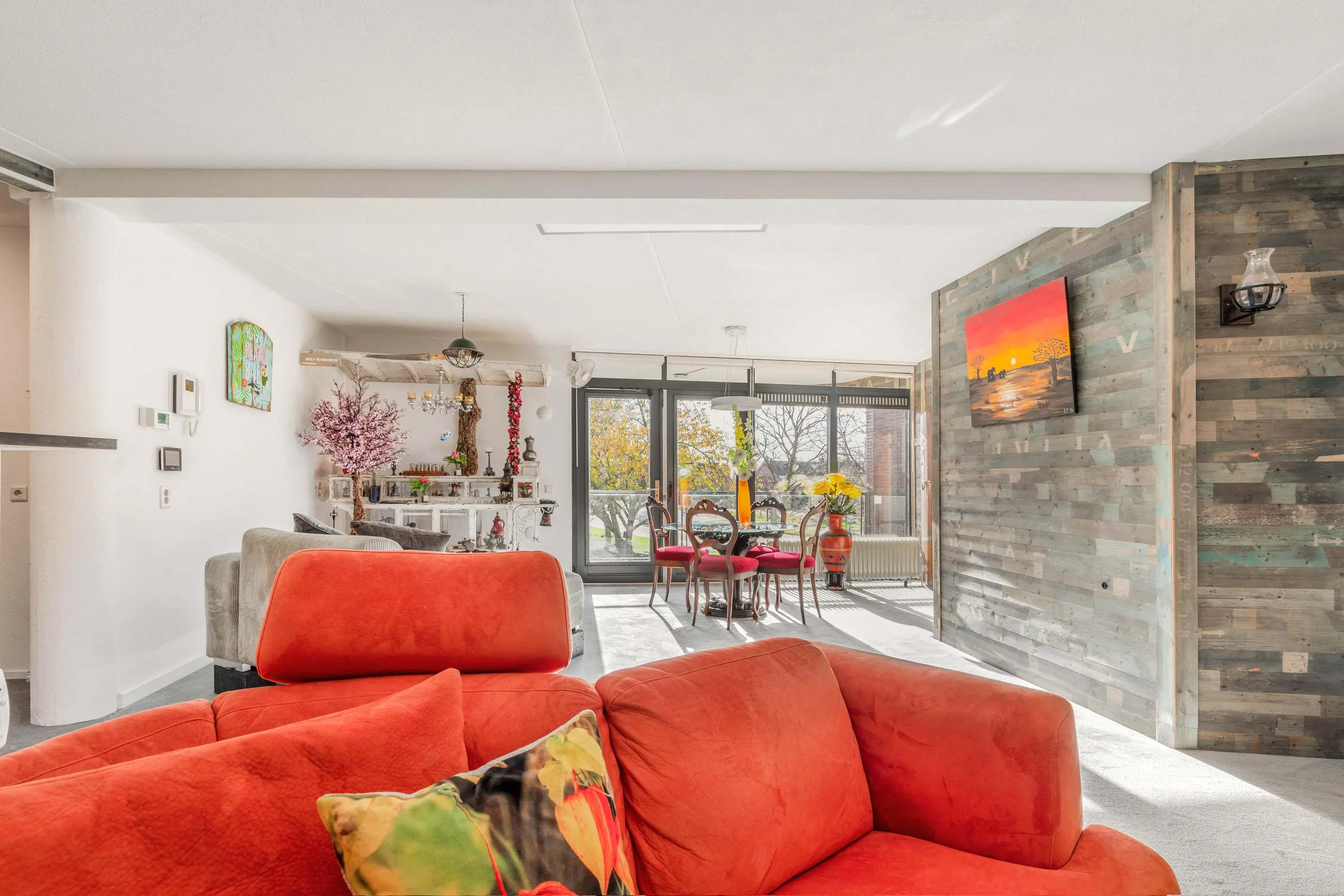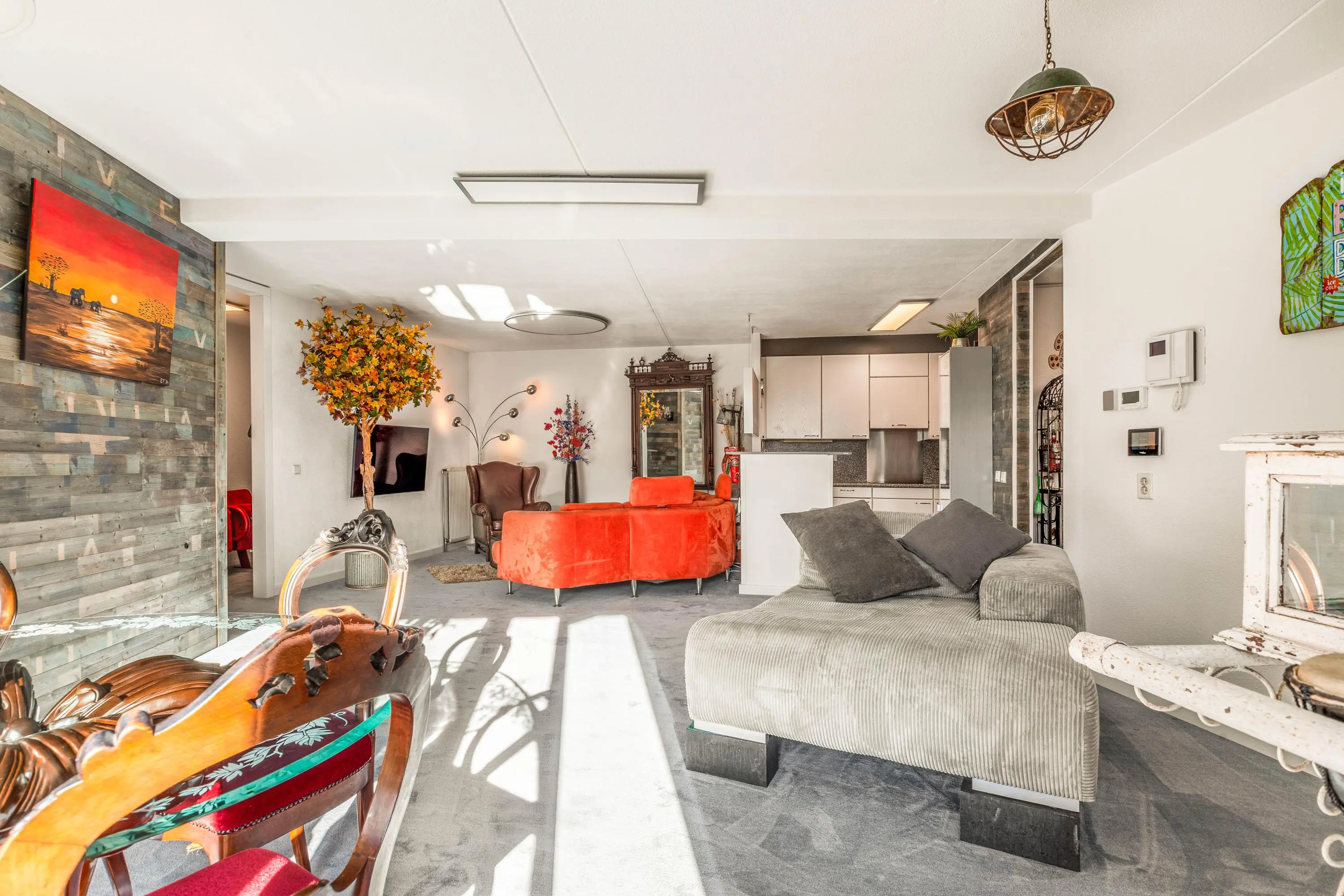 Het appartement bevindt zich op de eerste verdieping van het complex. De woonkamer vormt samen met de keuken het hart van het appartement. Een fijne plek om te koken, te eten en te genieten van lange avonden met vrienden of familie. Vanuit de woonkamer heb je via de openslaande deuren toegang tot het balkon, die een zeer gunstige zuidwest ligging heeft. Vanuit dit balkon heb je prettig uitzicht en met helder weer kun je zelfs de duinen zien. Aan de achterzijde van het appartement ligt een zonnig terras op het zuidoosten, waar je de hele dag door kunt genieten van zowel zon als schaduw.