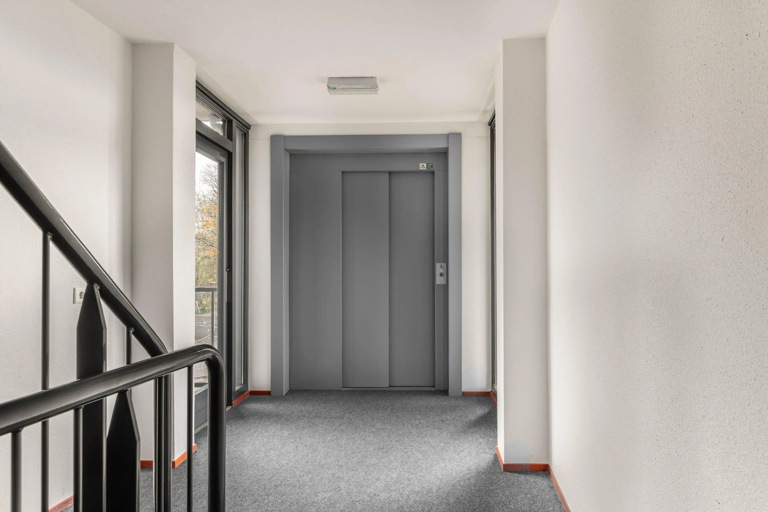 Op de begane grond tref je de centraal afgesloten entree met brievenbussen, beltableau en toegang tot de trap en lift. Deze lift is bijna privé te noemen want wordt enkel gedeeld met de vier bewoners in dit gedeelte van het complex.