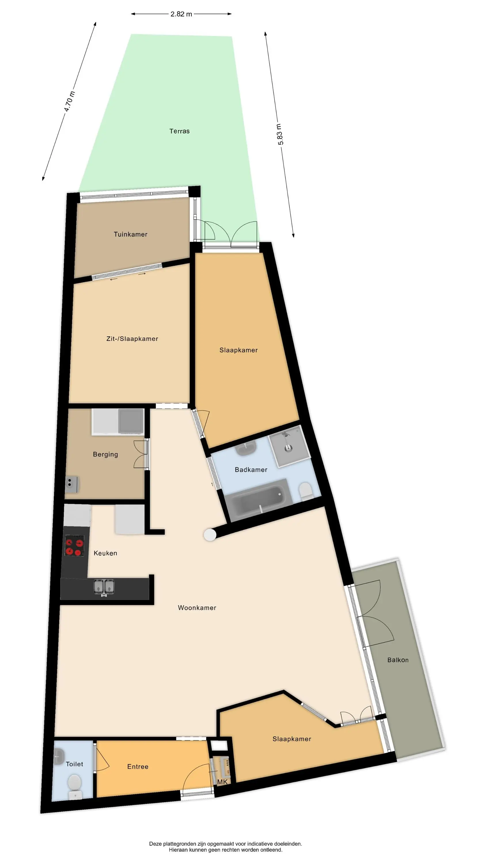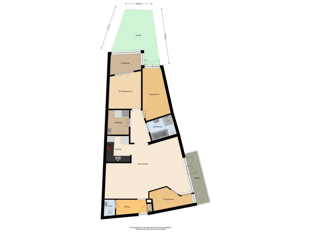 - Balkon aan de voorzijde en een terras aan de achterzijde;