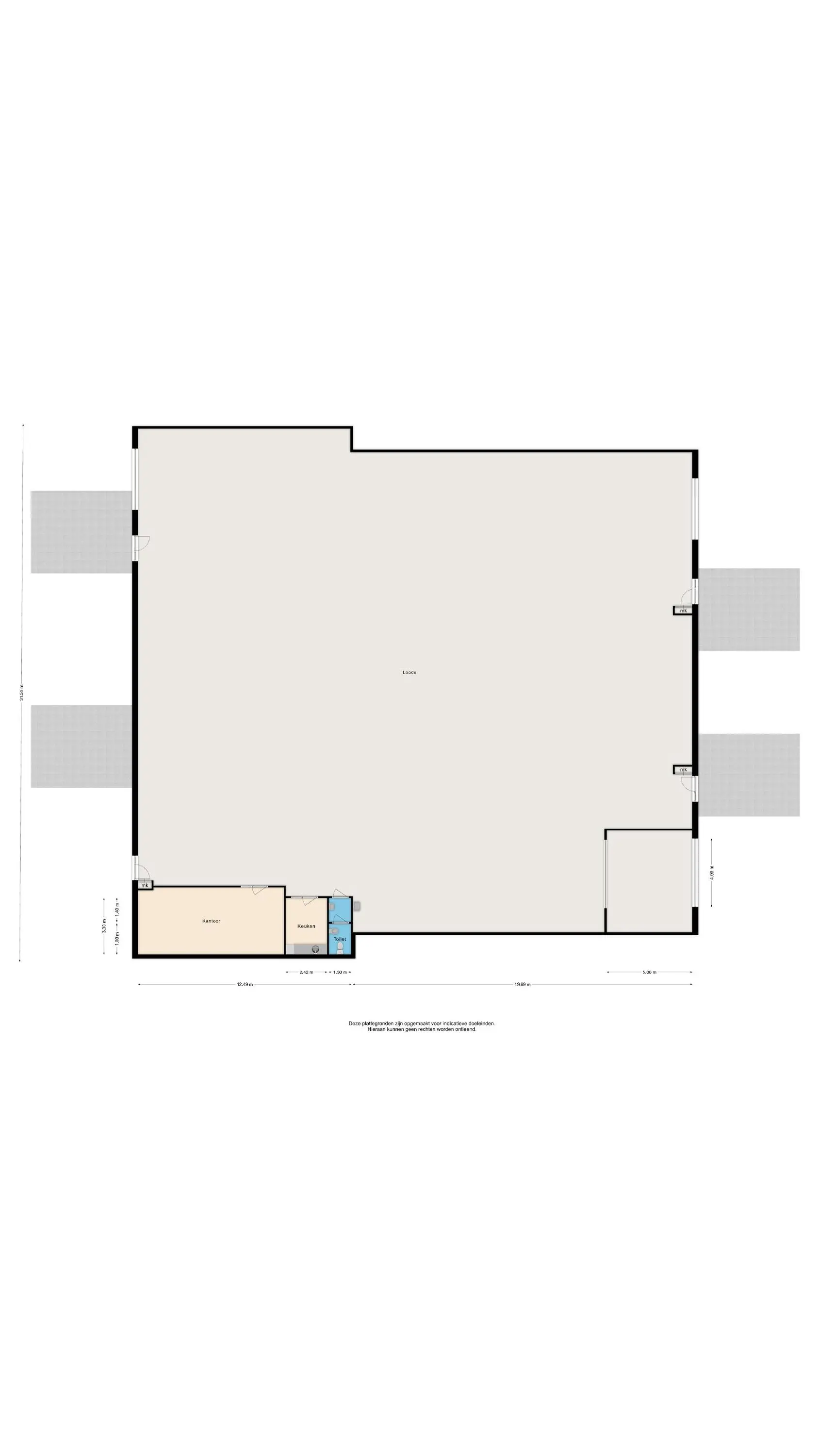 De bedrijfsruimte beschikt over een praktische indeling, bestaande uit een ruime hal, een kantoor, een keuken en een toilet. Dankzij de drie overheaddeuren (waarvan één met bevoorradingssluis) en de vrije hoogte van circa 6 meter, is de ruimte ideaal voor diverse bedrijfsactiviteiten zoals productie, distributie of opslag. De grote vrije overspanning van ongeveer 31 meter biedt veel flexibiliteit in het gebruik van de ruimte. Het kantoor is voorzien van kabelgoten en een systeemplafond, en biedt een comfortabele werkomgeving voor jouw team. Deze bedrijfsruimte wordt verwarmd via gasgestookte luchtverwarmers in de hal, terwijl het kantoor wordt verwarmd door radiatoren.