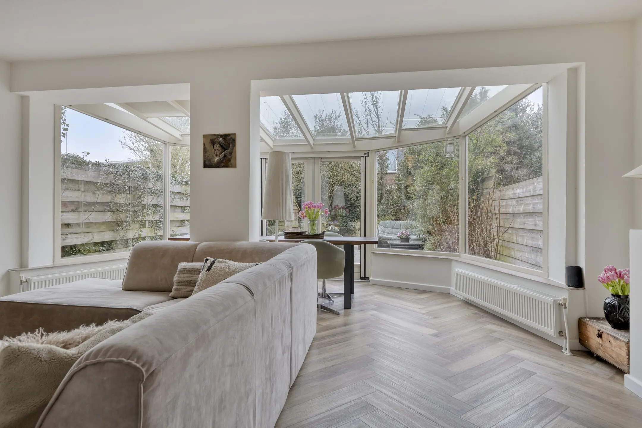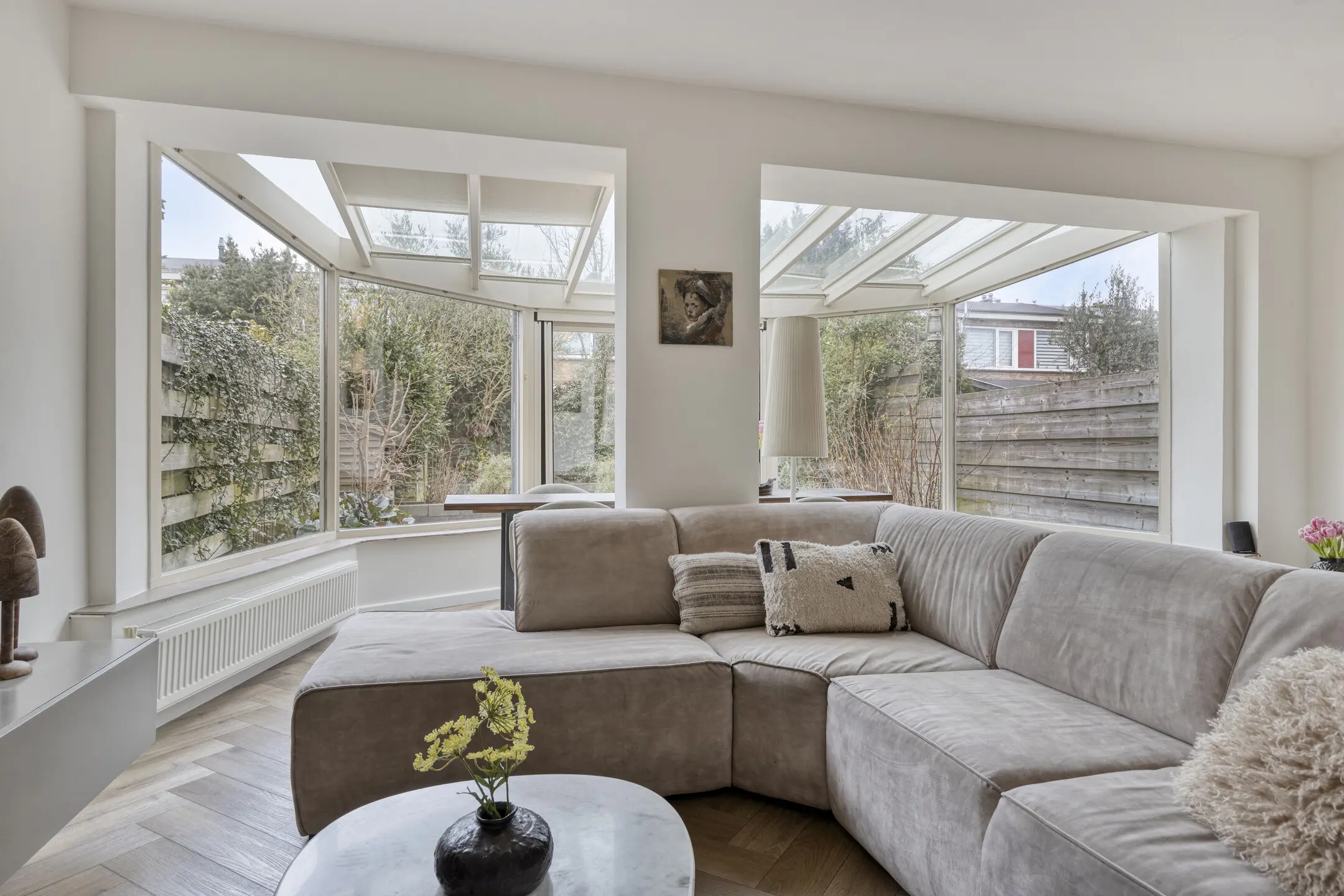 De tuingerichte woonkamer is over de volle breedte gesitueerd en is in combinatie met de uitbouw heerlijk ruim. De achtertuin is met een afmeting van ca. 6 x 13 flink te noemen en ideaal voor de koper met groene vingers. Door de gunstige situering is er overigens sprake van een maximale bezonning.