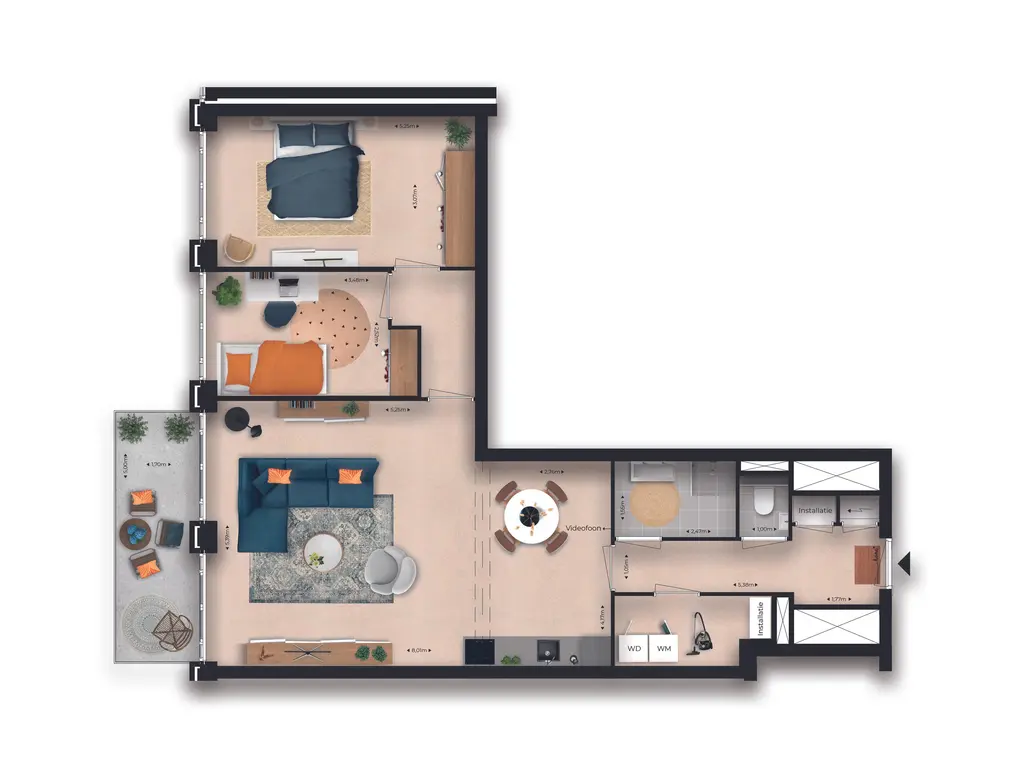 - Twee goed bemeten slaapkamers