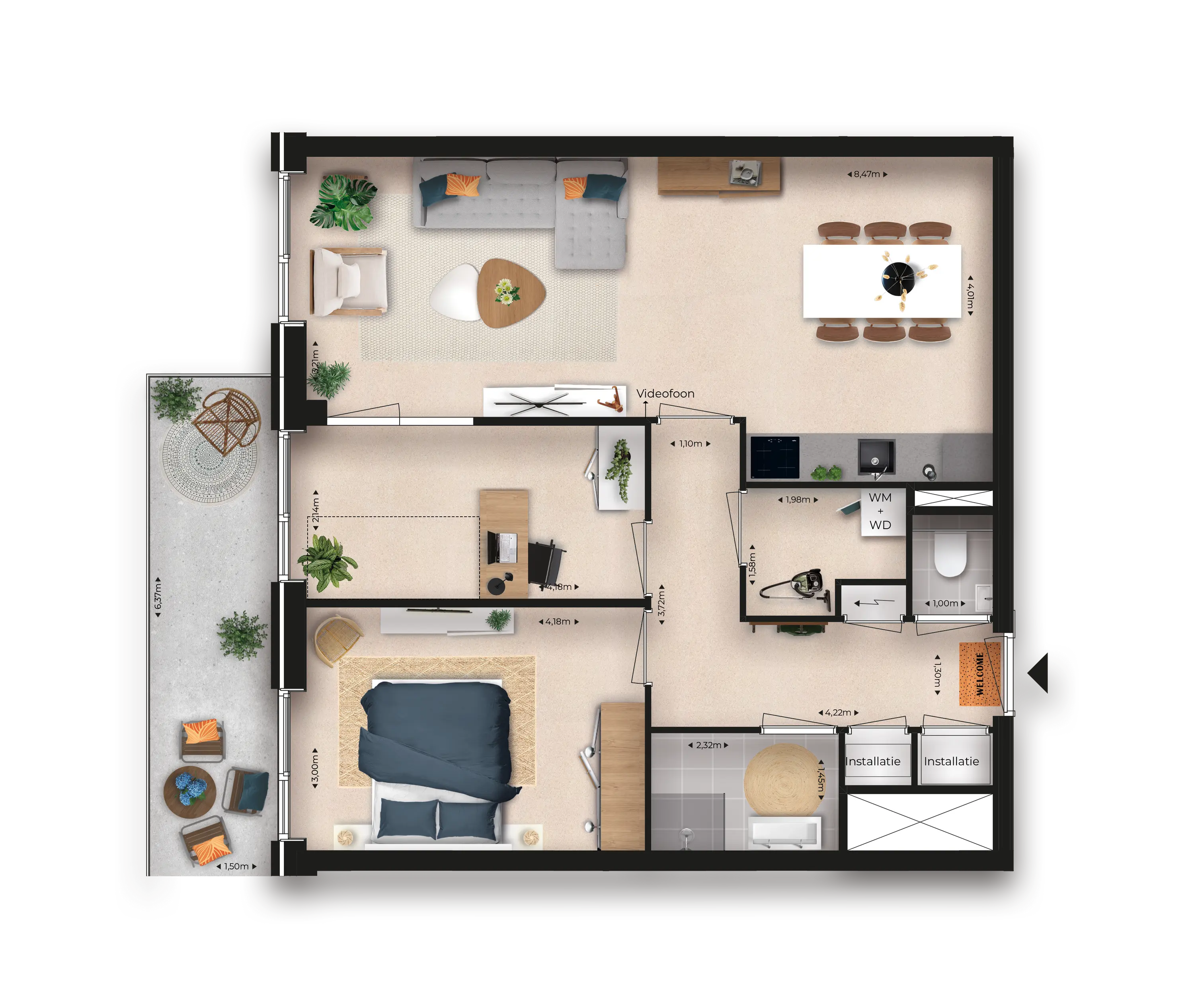 - Inclusief complete keuken, wand- en vloerafwerking.