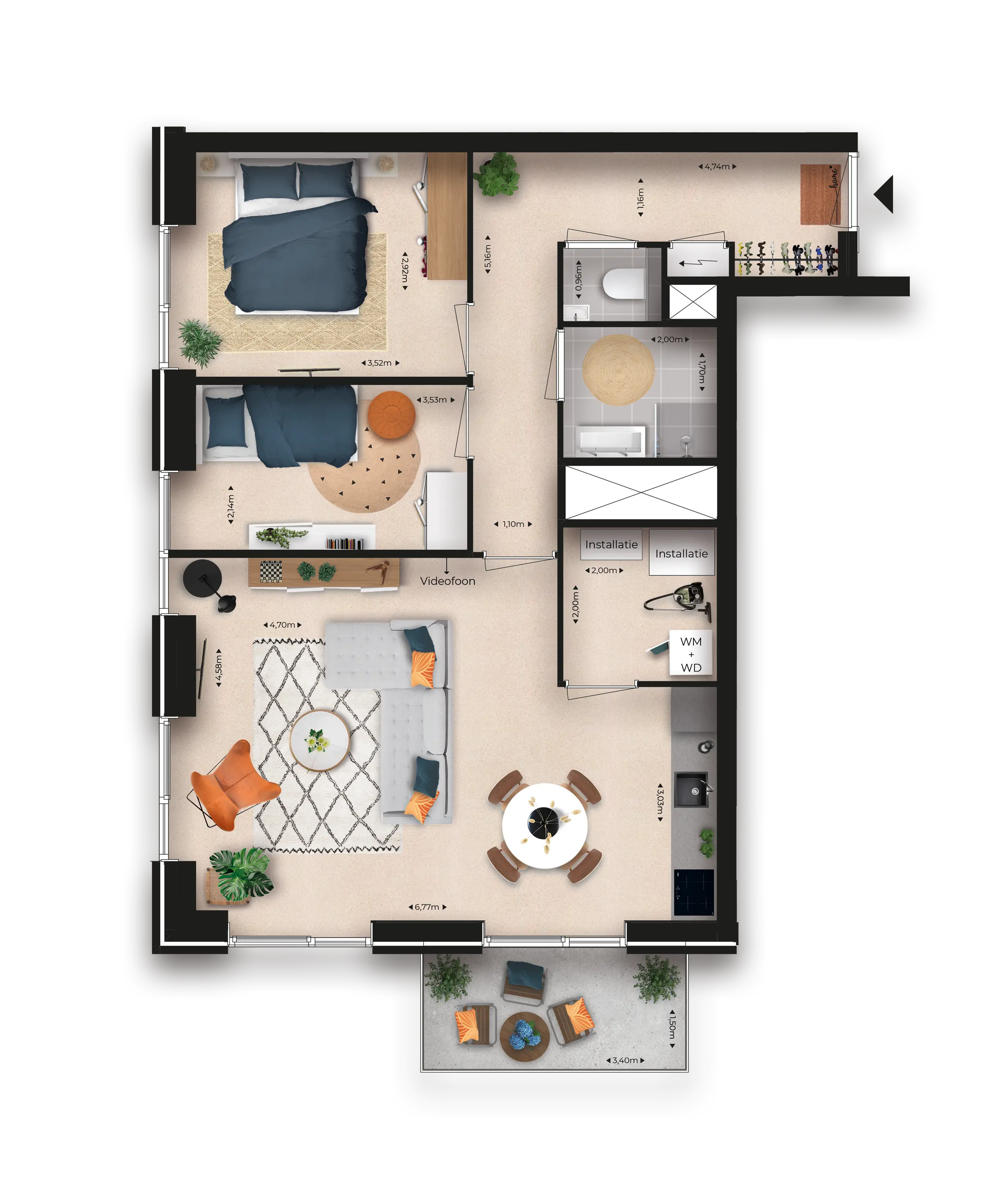 - Twee riante slaapkamers