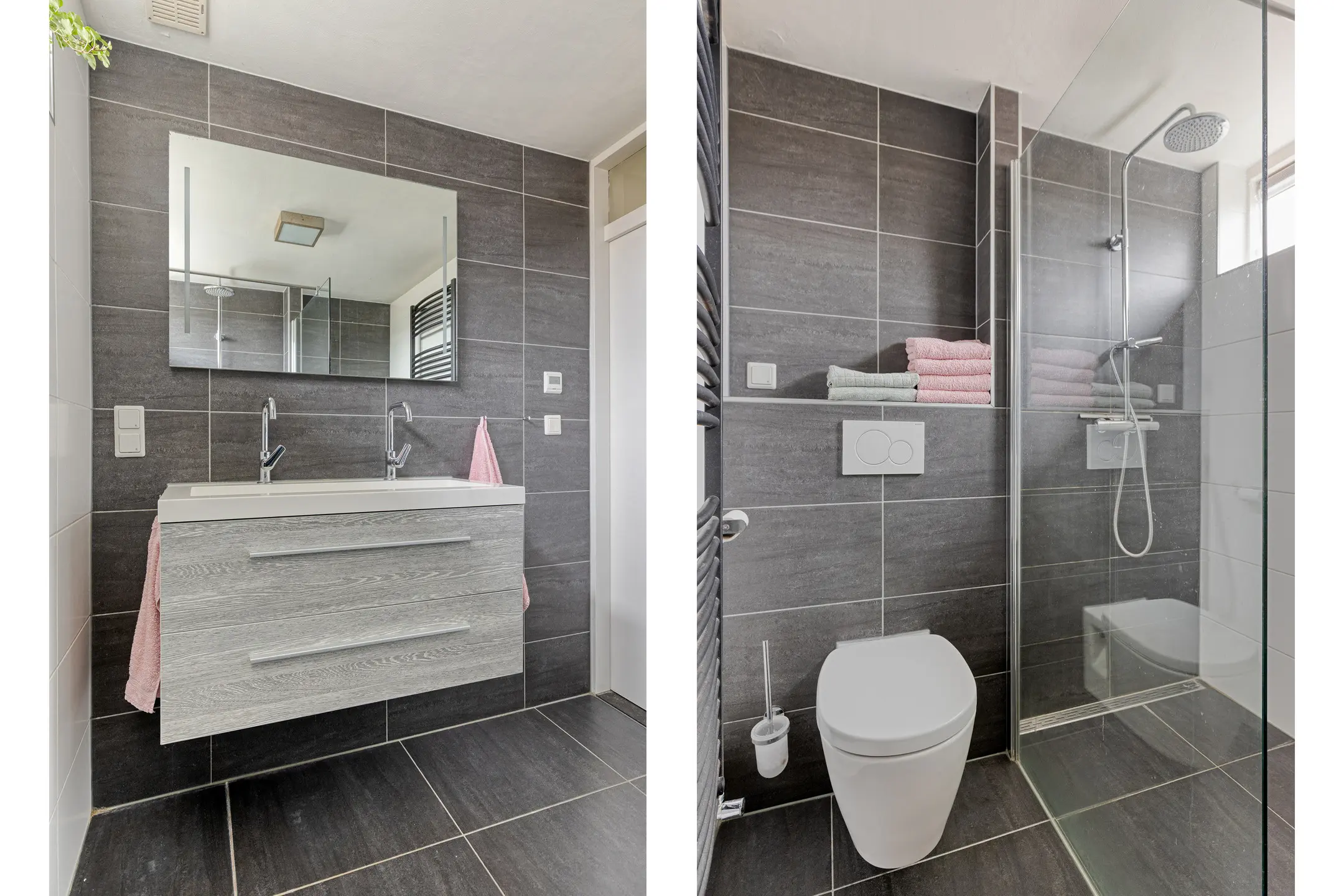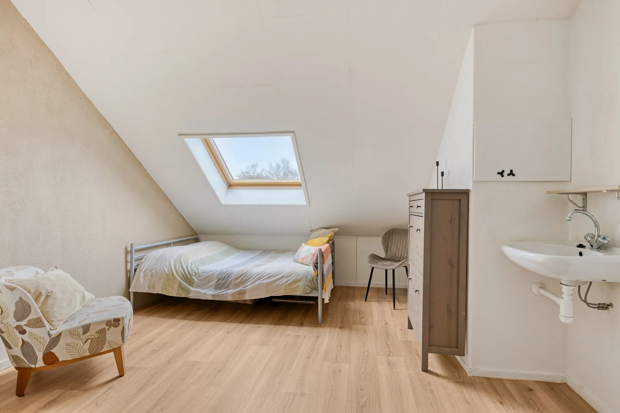Op de eerste verdieping tref je drie ruime, comfortabele slaapkamers en een moderne badkamer. Op de tweede verdieping is nog een vierde slaapkamer te vinden. Deze is zelfs in tweeën te verdelen voor bijvoorbeeld slapen (een wastafel is aanwezig) en werken. Daarnaast is er bergruimte achter de knieschotten. Op de voorzolder tref je de aansluitingen voor wasmachine en droger en de cv ketel, plus nog meer bergruimte.