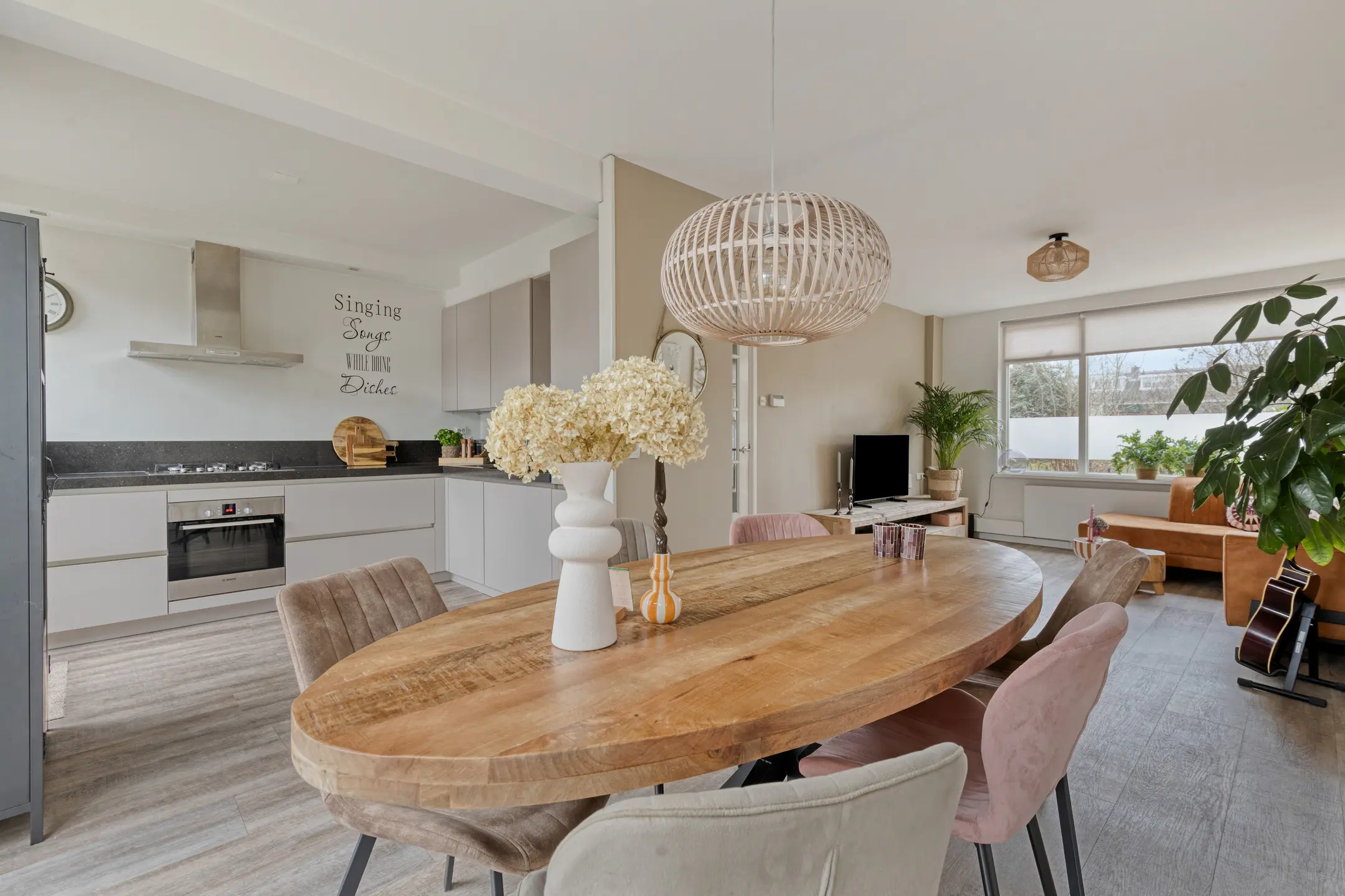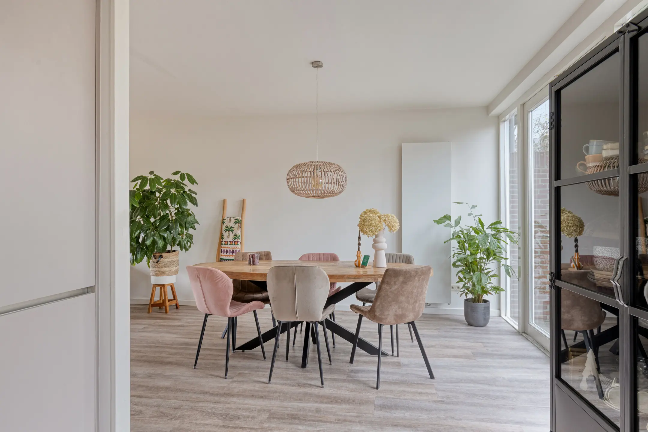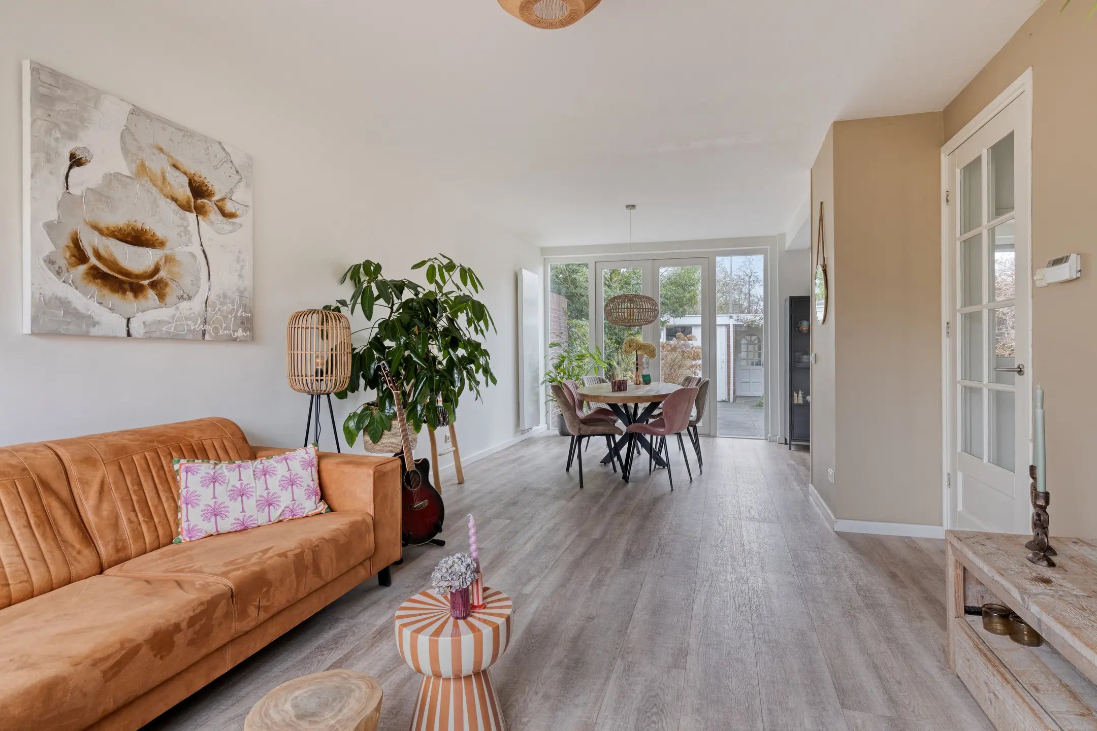 Je wandelt via een autovrij wandelpad, door de voortuin naar de (nieuwe!) voordeur. Wanneer je binnenkomt in de ruime entree, ervaar je meteen dat dit een goed onderhouden, met liefde bewoond huis is. De lichte woonkamer heeft aan de voorzijde een groot raam en aan de achterzijde een flinke pui met openslaande deuren en extra ramen. Het begrip doorzon krijgt hierdoor een hele nieuwe, hedendaagse dimensie.
