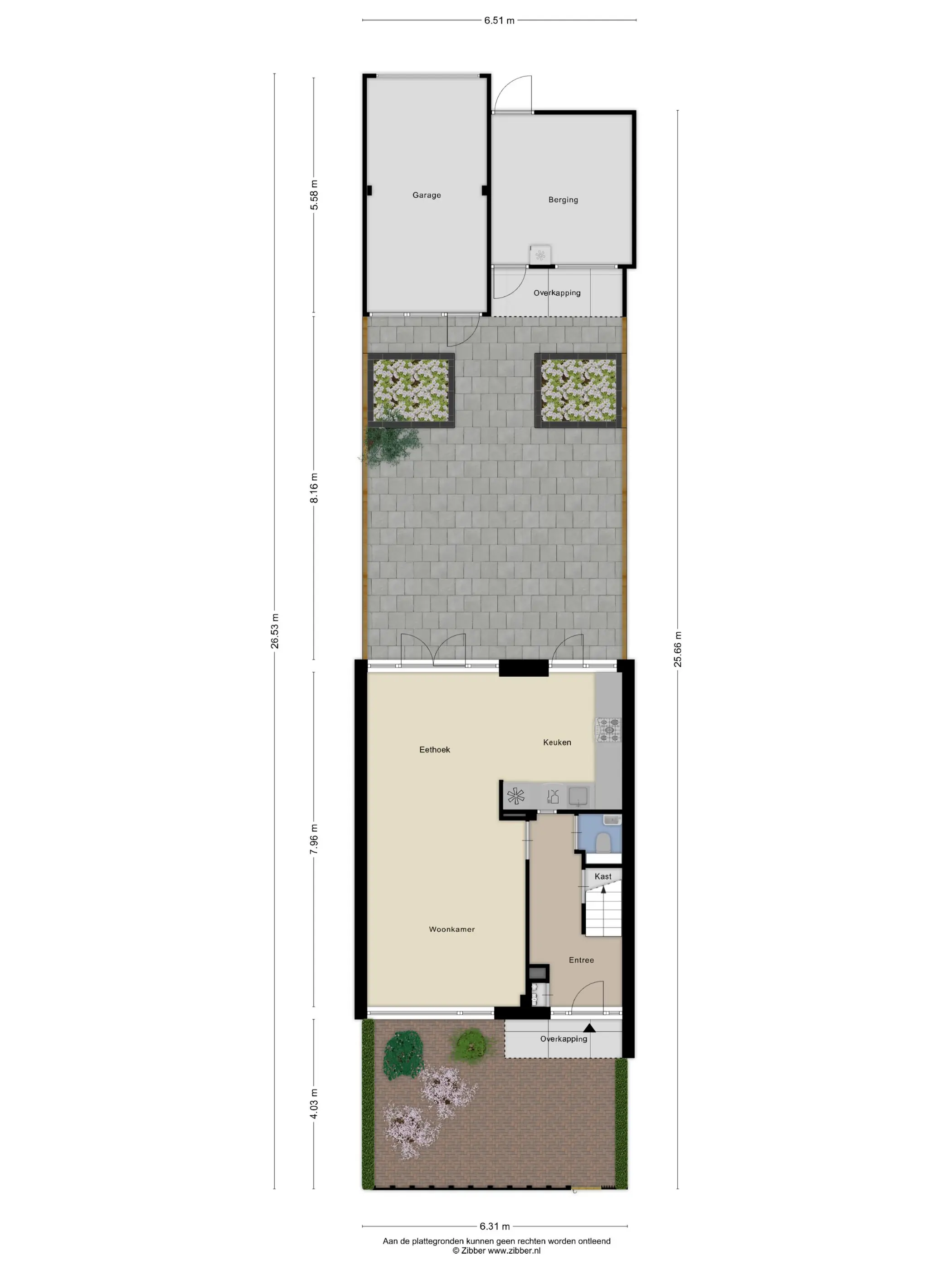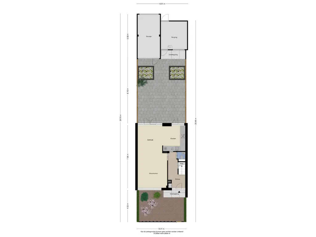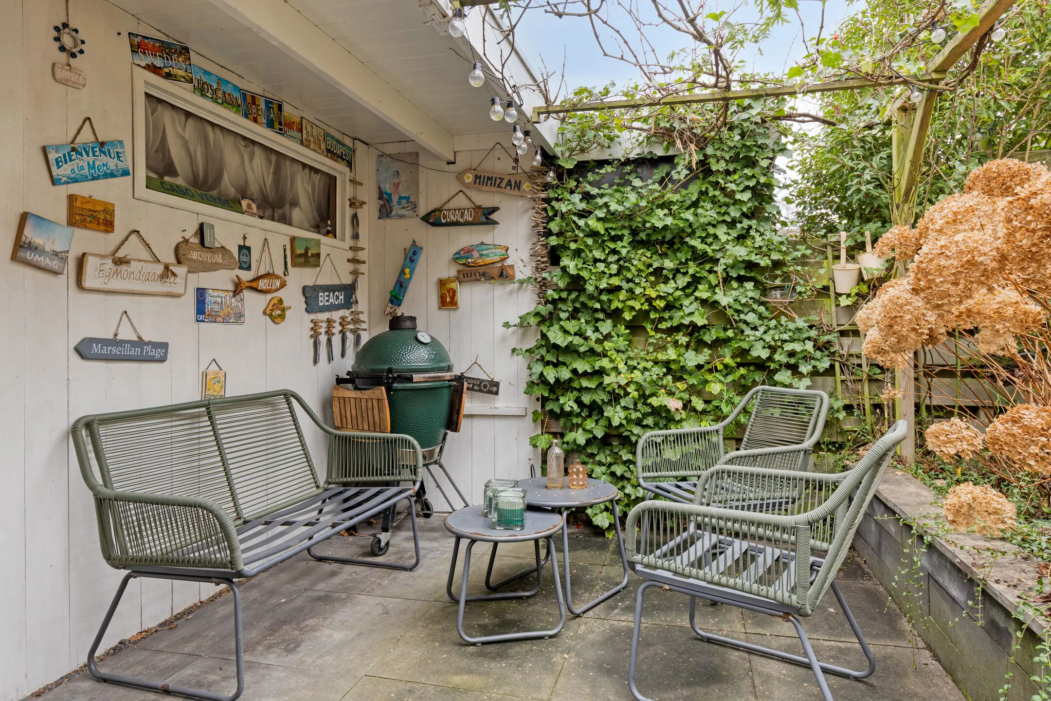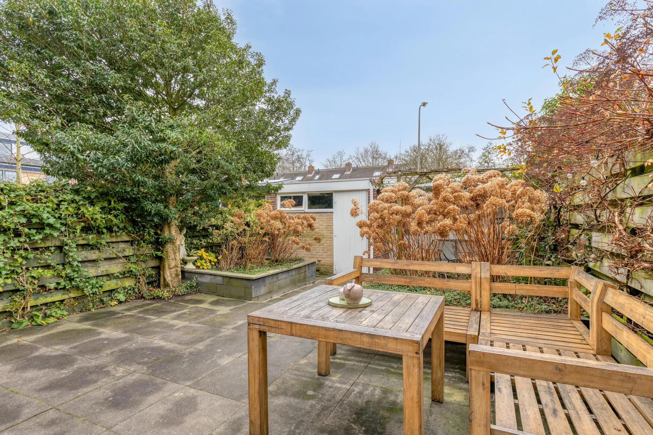 Het woongenot wordt compleet gemaakt door een garage én caport/berging voor fietsen en overige spullen. Het achterliggende terrein is van alle bewoners gezamenlijk. De auto kan je daarom ook voor de eigen garage parkeren.