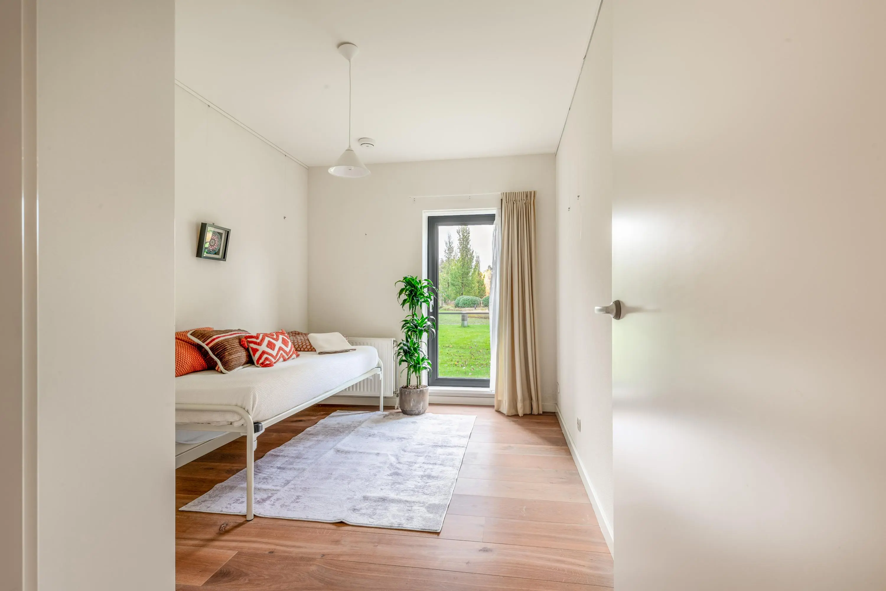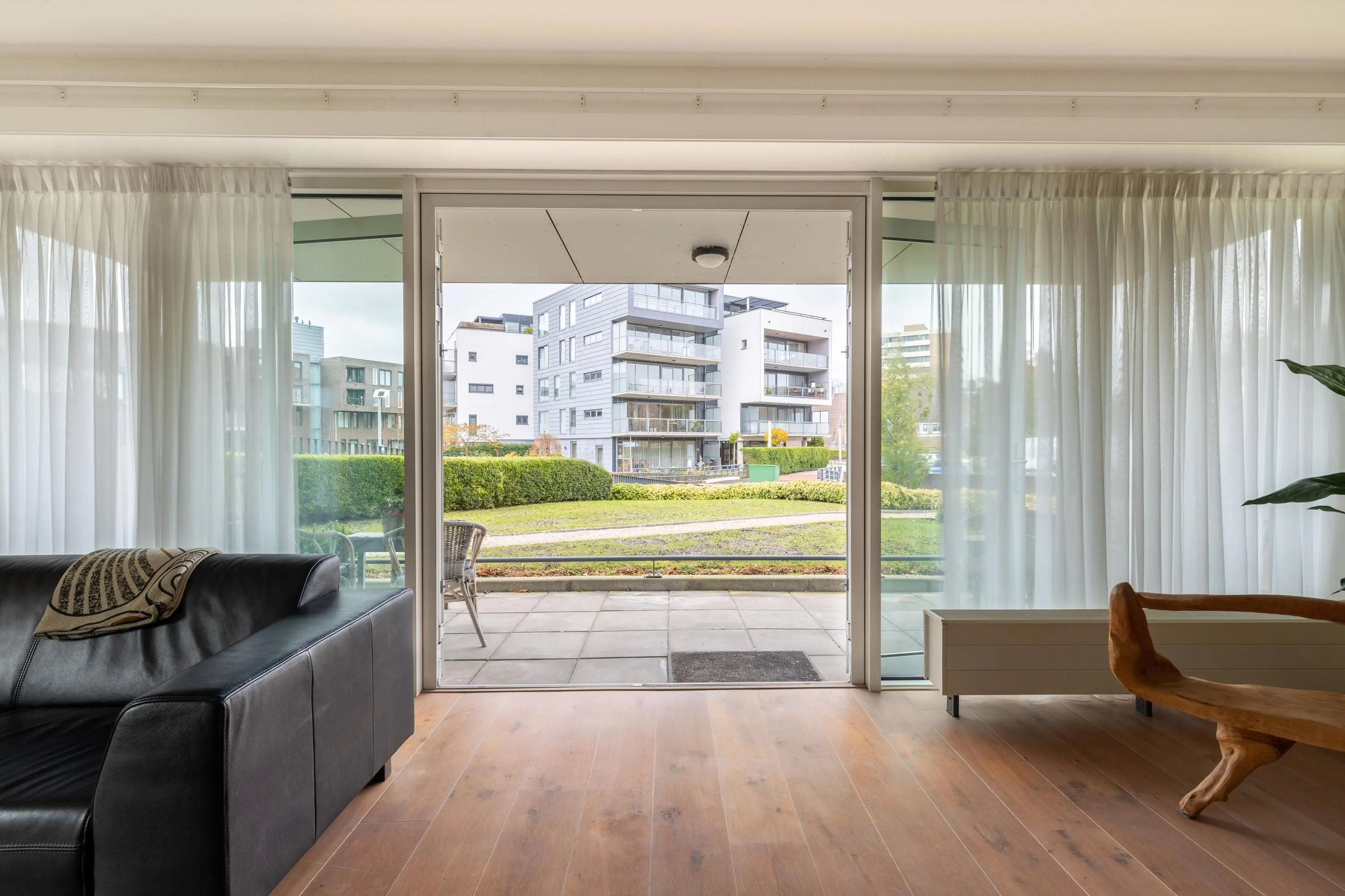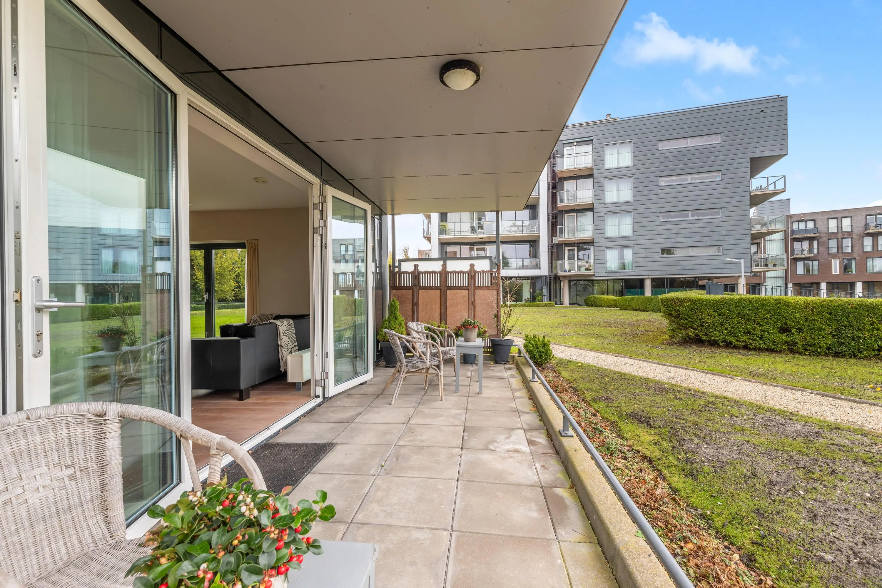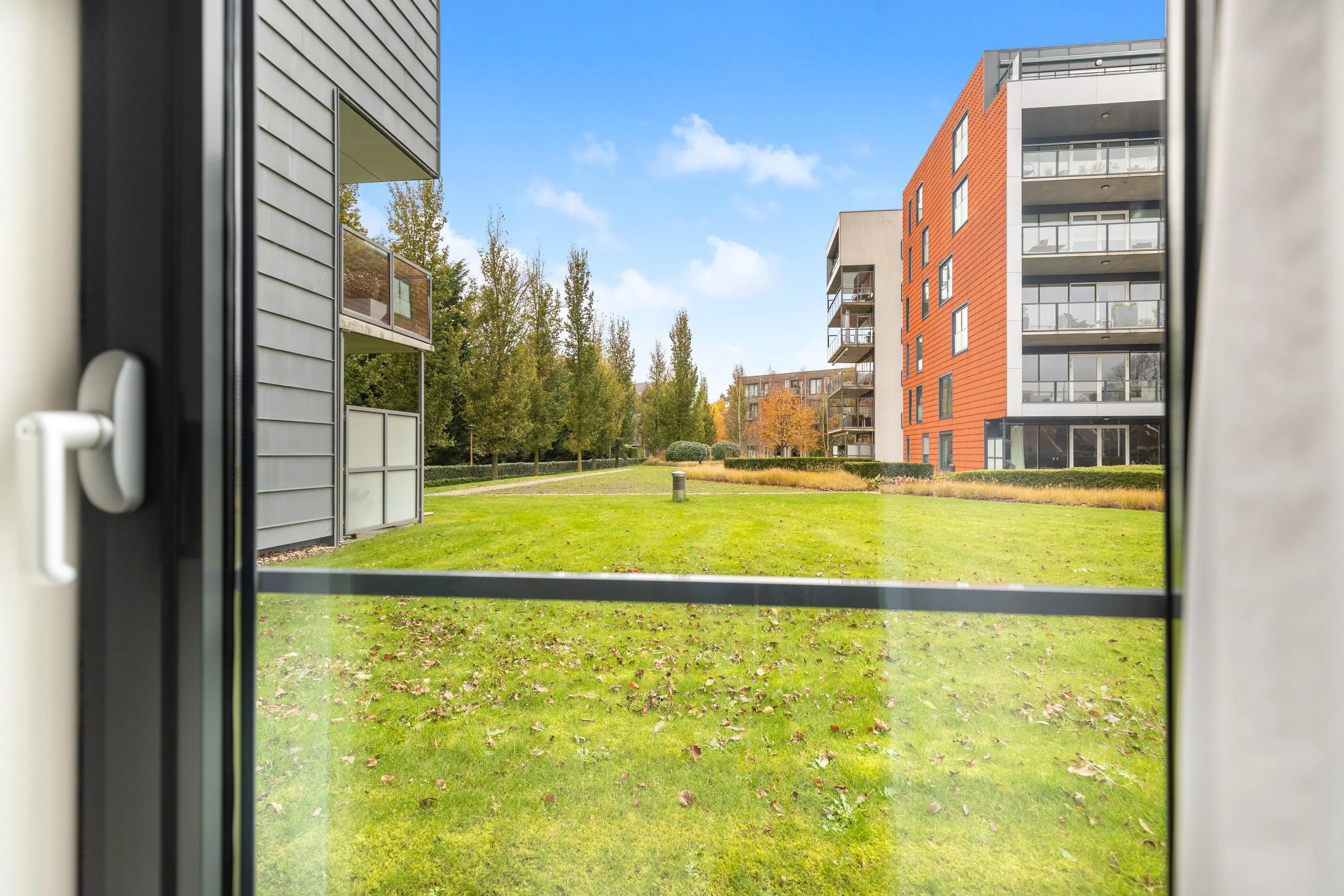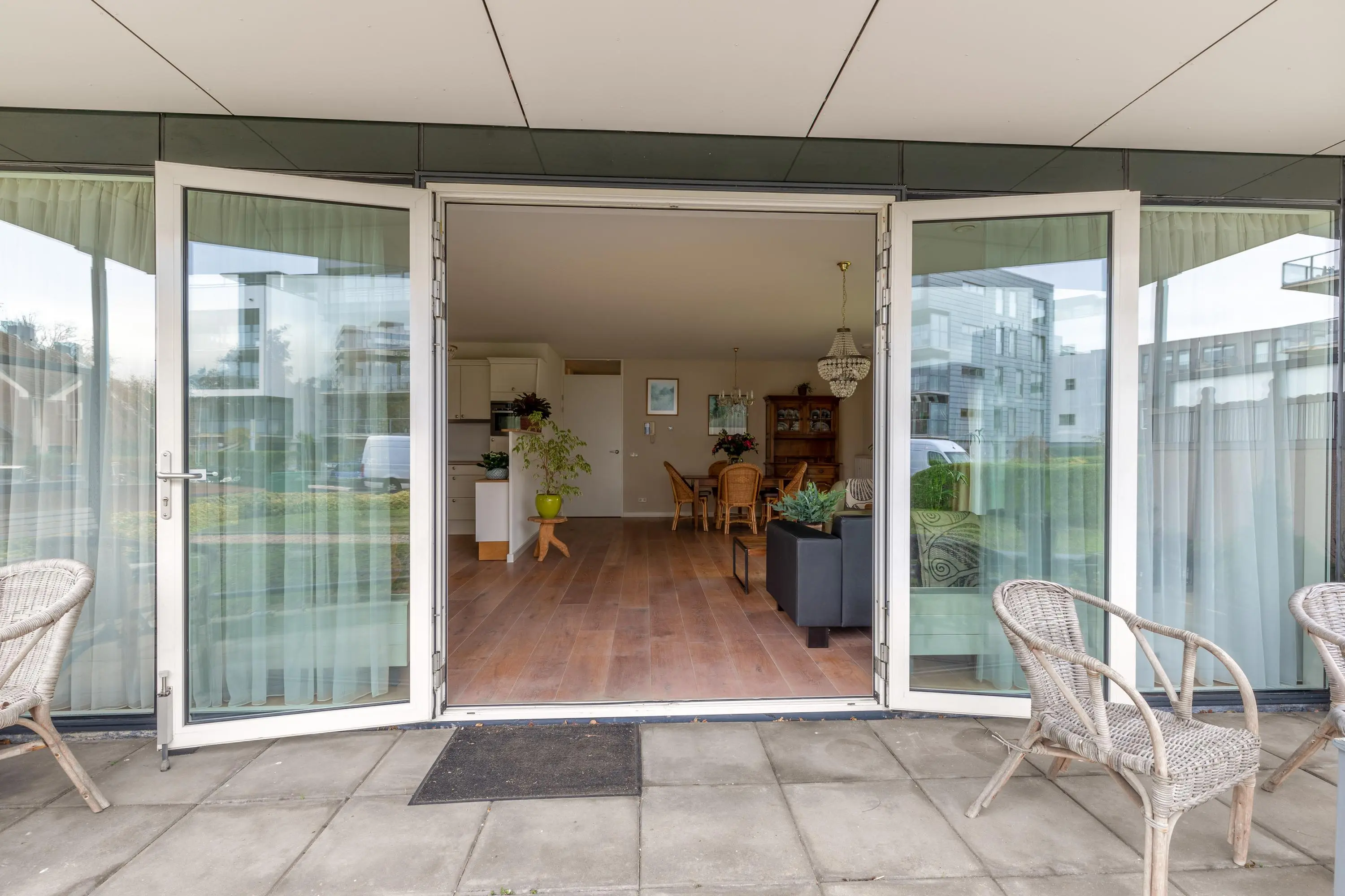 De entree van dit appartement is gelegen op de begane grond van het complex. Stap binnen in een riante hal met separaat toilet en de meterkast. Vanuit de hal heb je direct toegang tot de eerste slaapkamer die van goed formaat is. Aansluitend aan deze slaapkamer en een deur verder, heb je toegang tot de tweede slaapkamer. Deze is van een nog groter formaat en bevat ook een kastenwand. Verder doorlopen in het appartement, brengt ons in de woonkamer. Aan de achterzijde van het appartement is de royale en lichte woonkamer met open keuken gesitueerd. De keuken is uitgerust in een neutrale kleur en voorzien van een combimagnetron, inductiekookplaat, vaatwasser en inbouwkoelkast. De woonkamer biedt meer dan voldoende ruimte voor een grote eettafel en een ruime zithoek. De grote raampartijen in de woonkamer zorgen voor veel lichtinval en een mooi en rustig uitzicht op de groene tuin rondom het complex. Door middel van openslaande deuren in de woonkamer, kun je je eigen terras bereiken.
