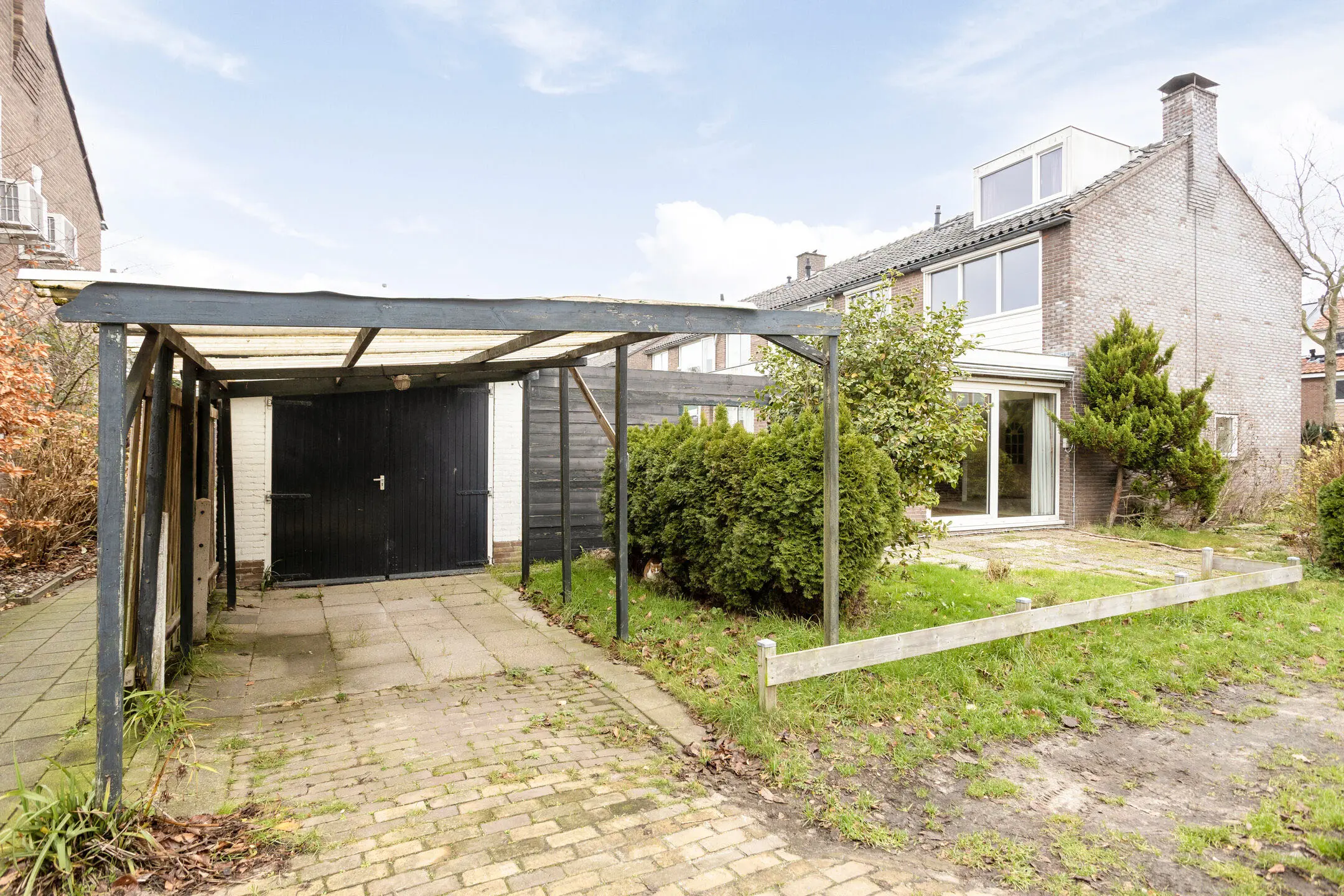 De garage met carport is te bereiken via de zij-inrit. Hierdoor kan je eenvoudig de auto kwijt en is er veel bergruimte voor fietsen en overige spullen.