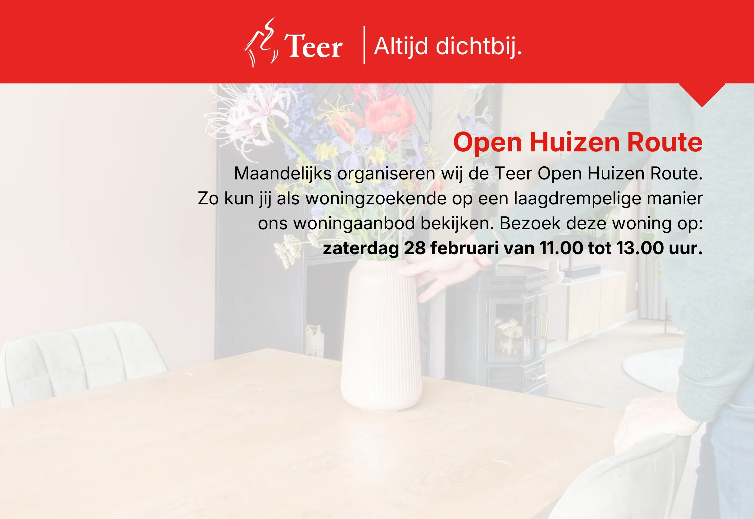 OPEN HUIS: Onze volgende editie van de Open Huizen Route staat alweer voor de deur op zaterdag 28 februari tussen 11:00 en 13:00 uur. Je bent van harte welkom om de woning te komen bezichtigen.