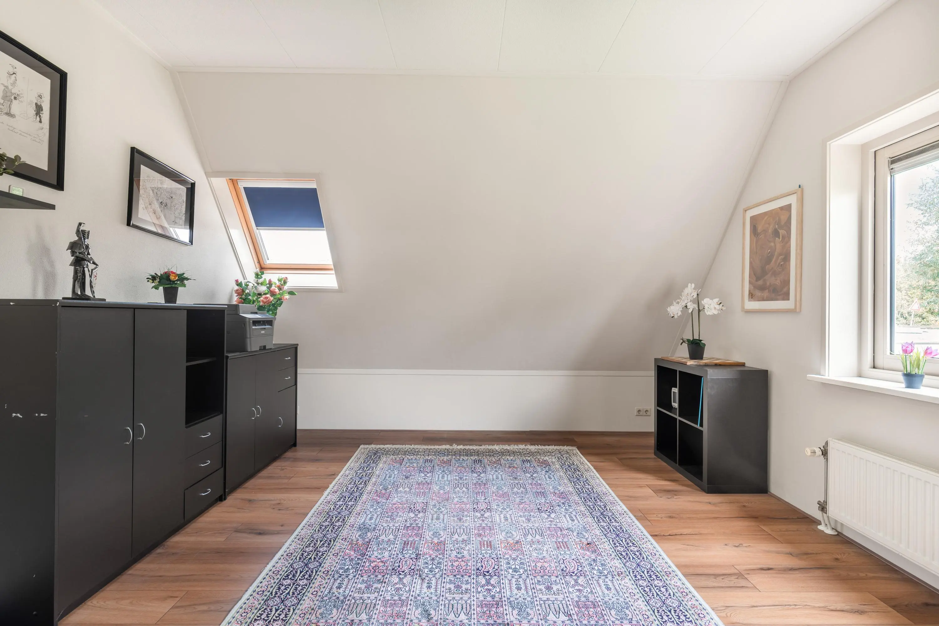 Op de eerste verdieping bevinden zich nog maar liefst vier slaapkamers en een tweede badkamer, compleet met bad, douche, wastafel en toilet, ideaal voor een gezin. Via een vlizotrap is er bovendien toegang tot een vliering, perfect voor het opbergen van seizoensspullen of andere zaken die je graag uit het zicht houdt.