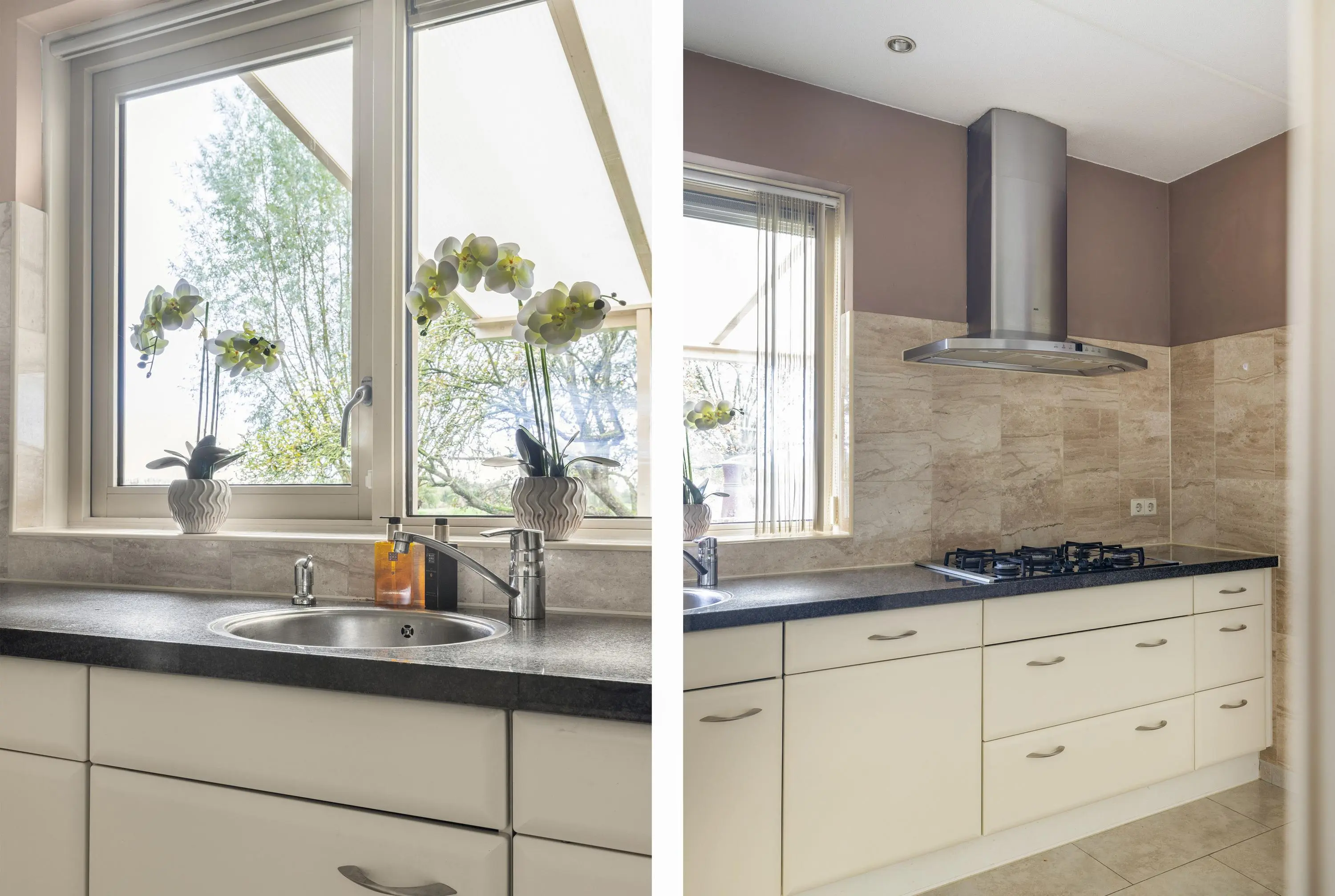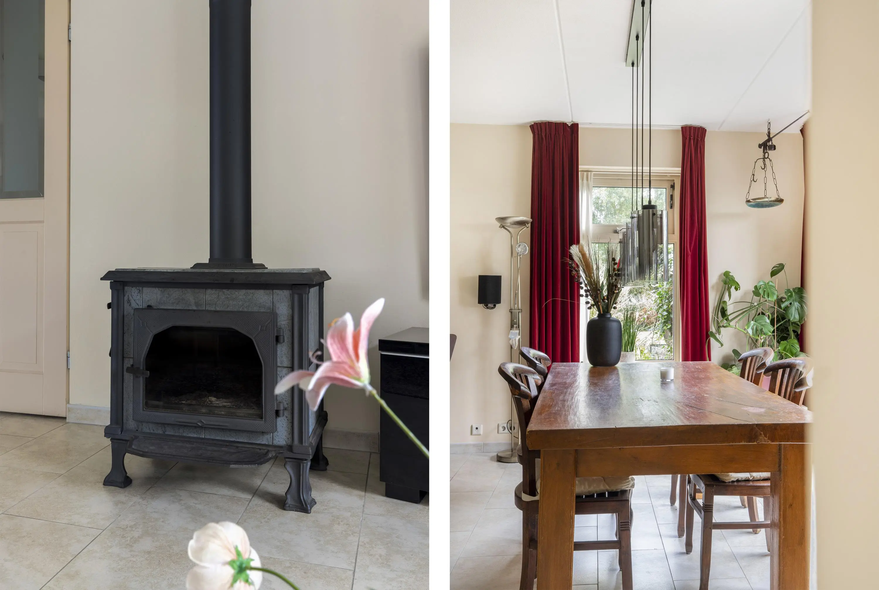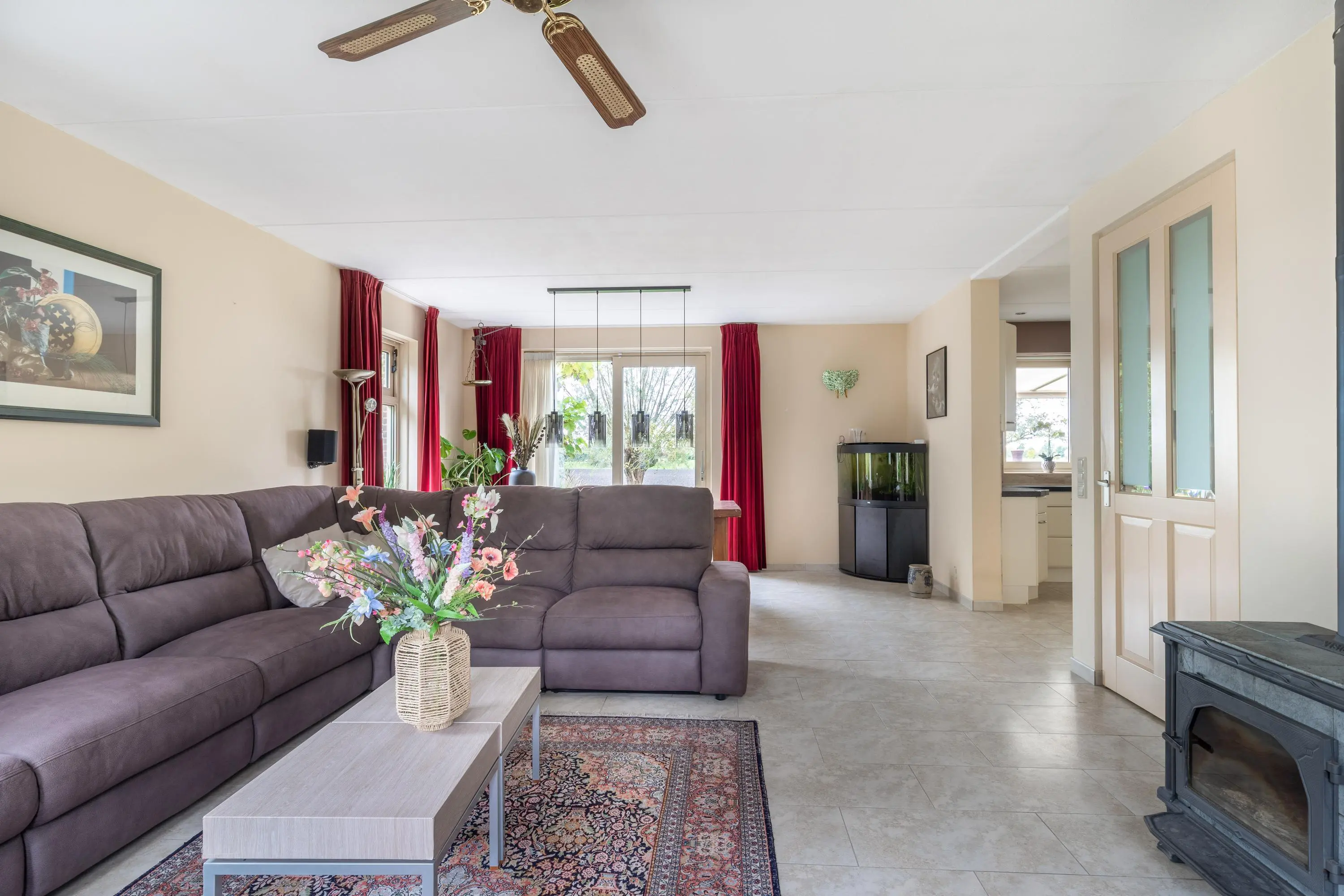 Laten we beginnen in de woonkamer, een fijne lichte ruimte met grote ramen die het schitterende uitzicht perfect omlijsten. De gezellige houtkachel vormt het warme hart van de kamer, een plek om te ontspannen tijdens de koude maanden. Aan de achterzijde is een schuifpui die in de zomermaanden het buitengevoel naar binnen brengt. Er is een open verbinding naar de keuken die zich aan de achterzijde bevindt. Voorzien van inbouwapparatuur kun je hier heerlijk koken met uitzicht!