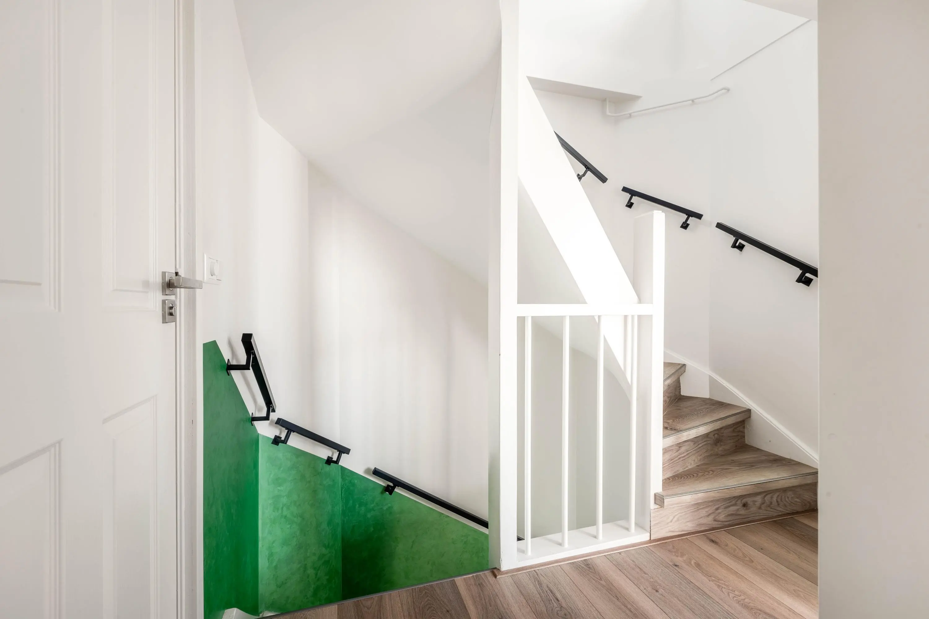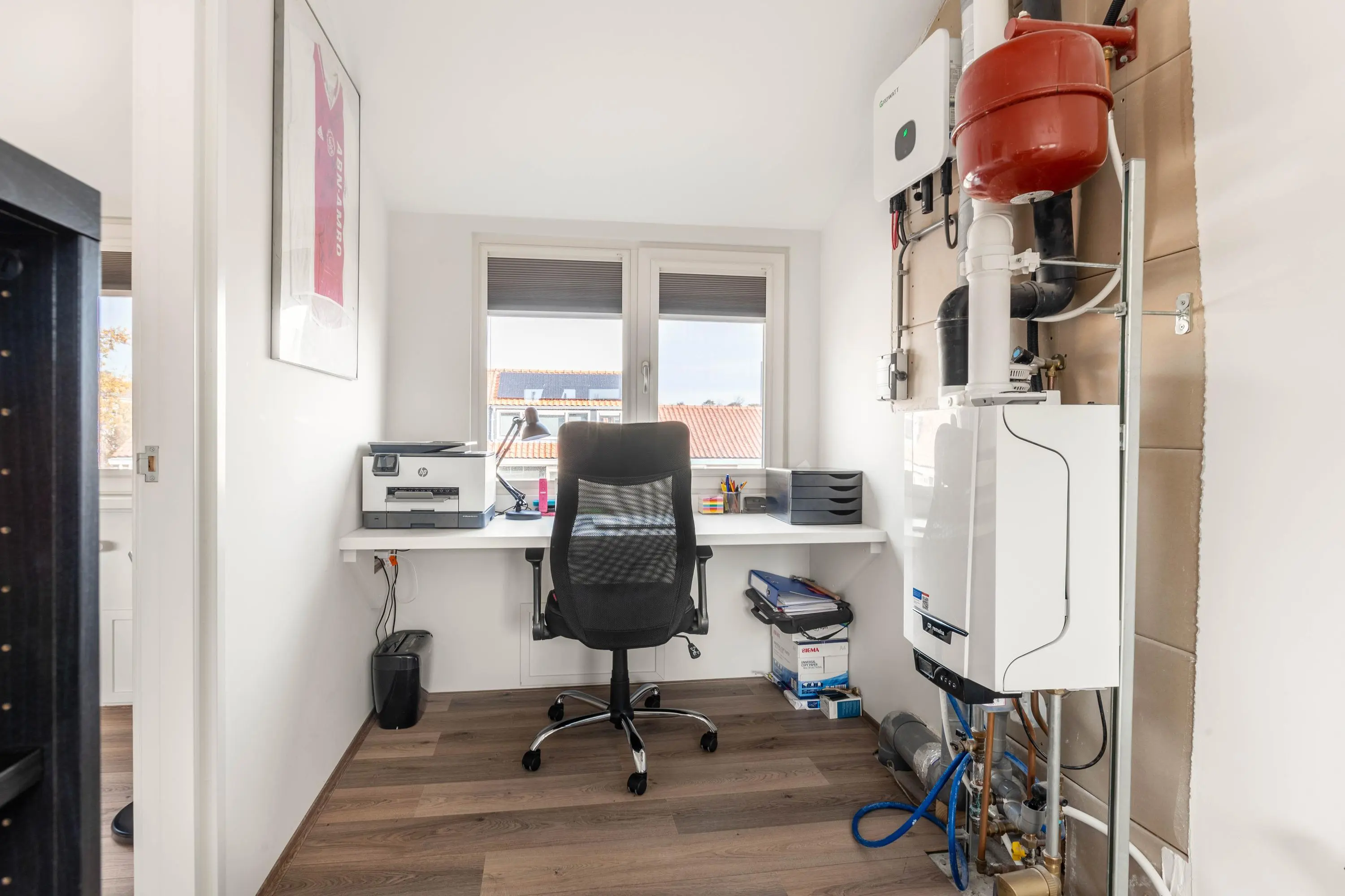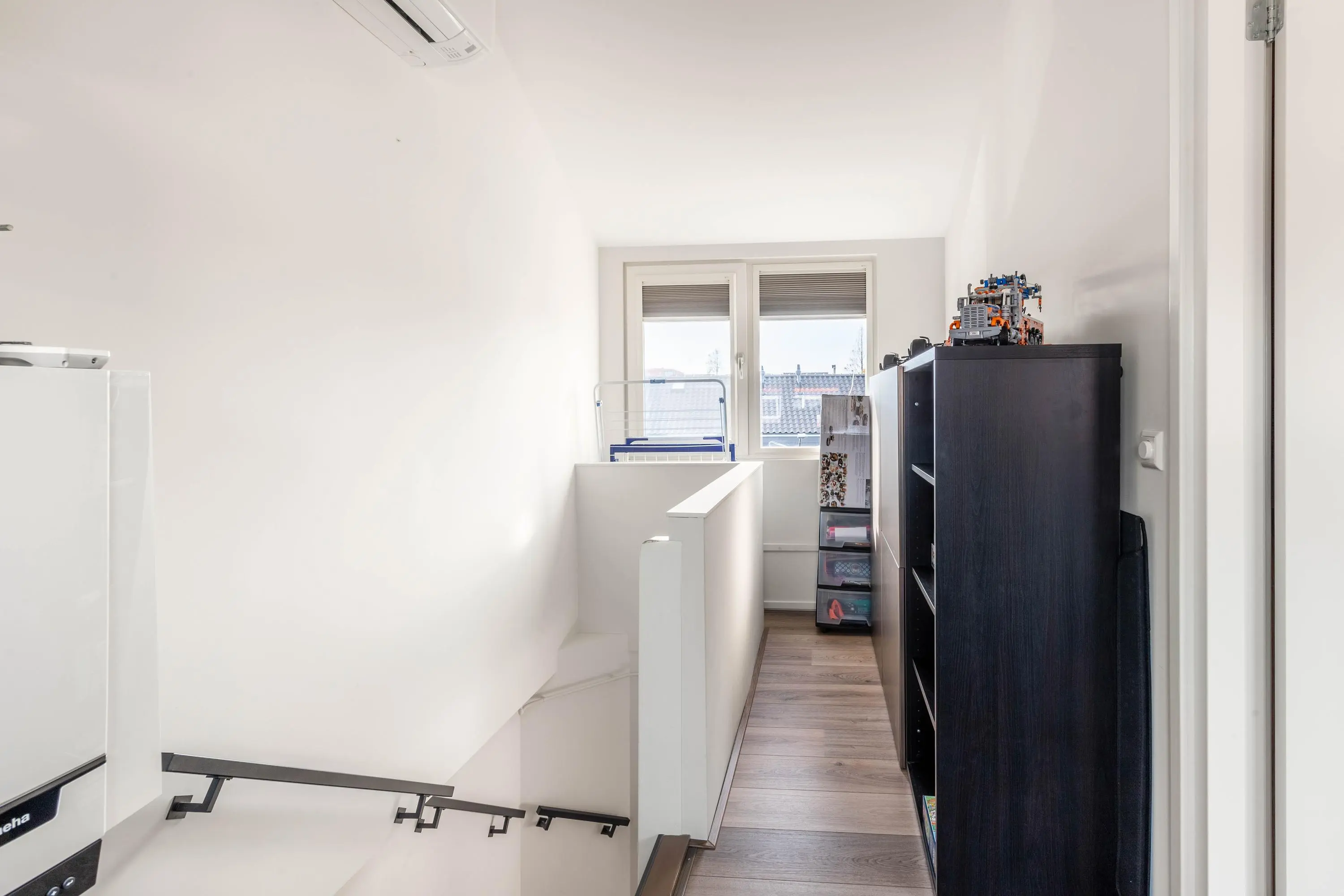 Op de eerste verdieping bevinden zich twee goed bemeten slaapkamers met veel lichtinval. De badkamer is in 2023 volledig gemoderniseerd en uitgevoerd met tijdloze zwarte details, een dubbel wastafelmeubel, het tweede toilet en een luxe inloopregendouche. Verder is er een aparte ruimte voor de wasmachine en droger aanwezig. De tweede verdieping biedt dankzij de dakopbouw uit 2023 een verrassend ruime derde slaapkamer met veel lichtinval.