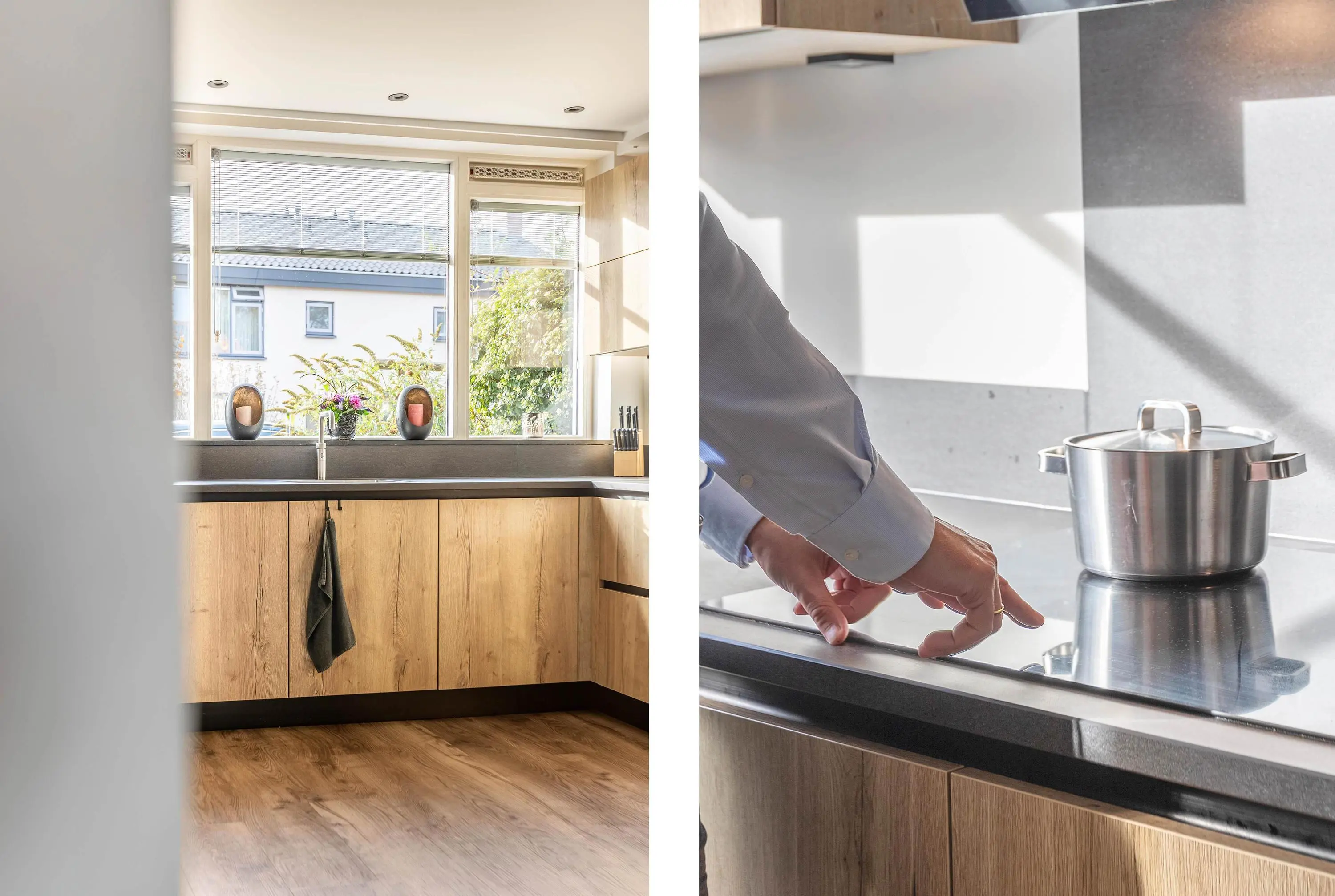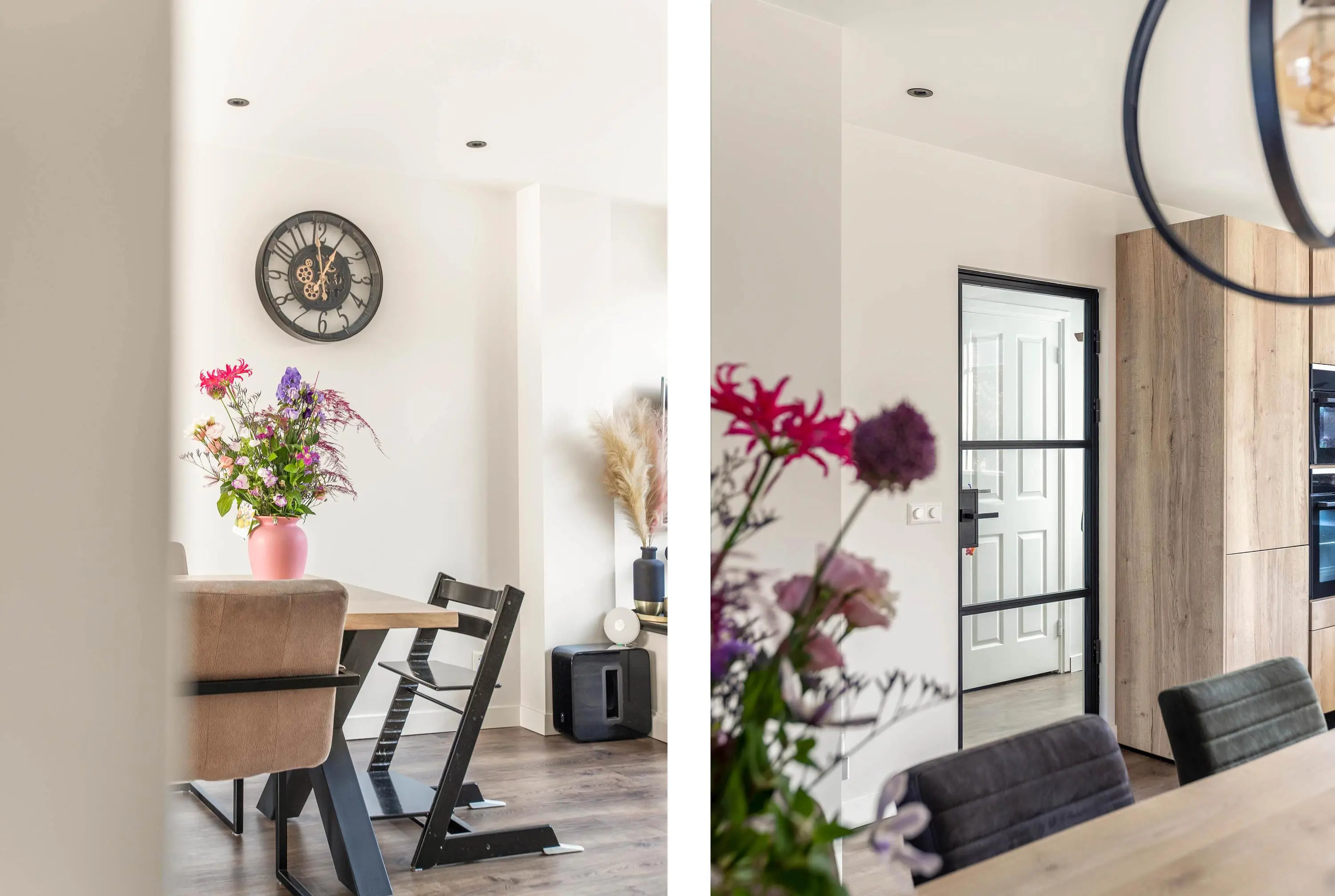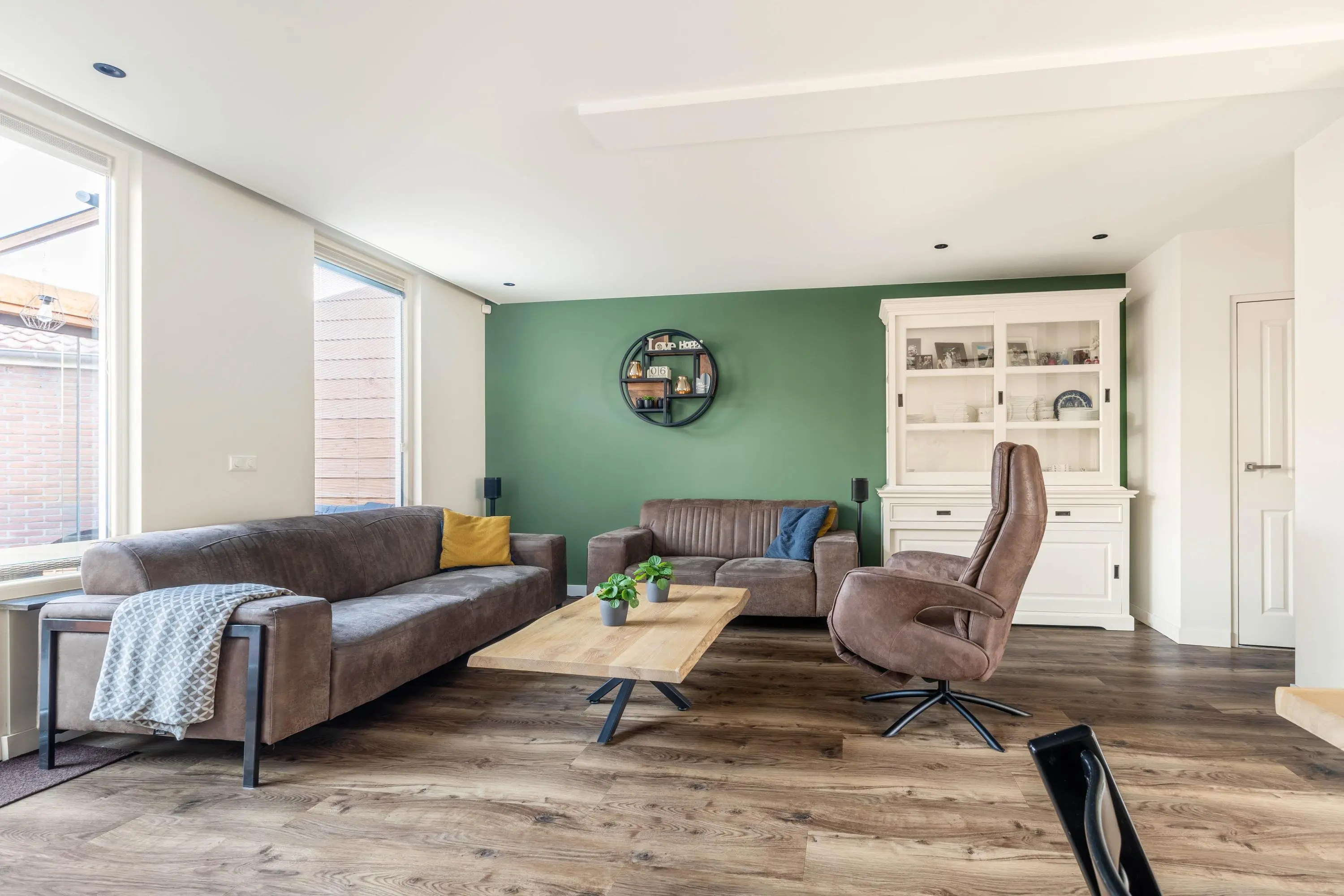 Bij binnenkomst valt direct de warme en uitnodigende sfeer op. De woonkamer is licht en ruim en biedt aan de achterzijde een knusse zithoek. De gehele begane grond is voorzien van inbouwspots, wat zorgt voor een moderne en sfeervolle uitstraling. Tussen de gezellige zithoek en moderne keuken bevindt zich de eethoek, waar je heerlijk lang kunt tafelen met vrienden en familie. De moderne open keuken is in 2023 volledig vernieuwd en vormt dankzij de ruime opzet en strakke afwerking een heerlijke plek om te koken. In de entree is tevens nog een separaat toilet aanwezig.