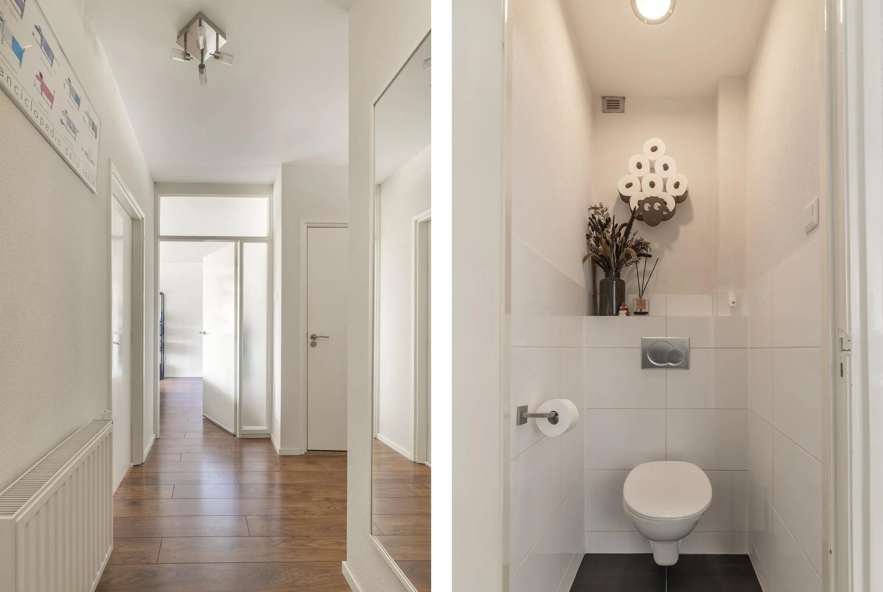 Je komt het appartementencomplex binnen in de gezamenlijke (afgesloten) hal met videofooninstallatie, brievenbussen en het trappenhuis. In de onderbouw heb je bovendien een eigen berging. Met de trap bereik je de derde etage. Bij binnenkomst in de hal vind je de meterkast, handige garderobekast, moderne toiletruimte en toegang tot de verschillende vertrekken. In de woonkamer komt een zee van licht naar binnen door de grote ramen aan de voorzijde en de deur naar het zonnige balkon. De woonkamer biedt voldoende ruimte voor een gezellige eethoek en een ruime zithoek met vrij uitzicht over de levendige Willem de Zwijgerlaan. Het appartement is uitgerust met twee slaapkamers. De compacte badkamer is modern uitgevoerd en is ingericht met een wastafelmeubel en douche. De semi-open keuken heeft een L-vormige opstelling en beschikt over diverse apparatuur.