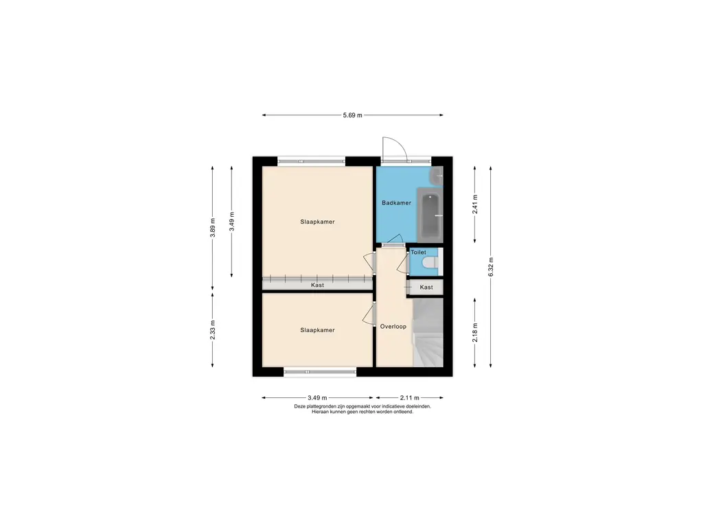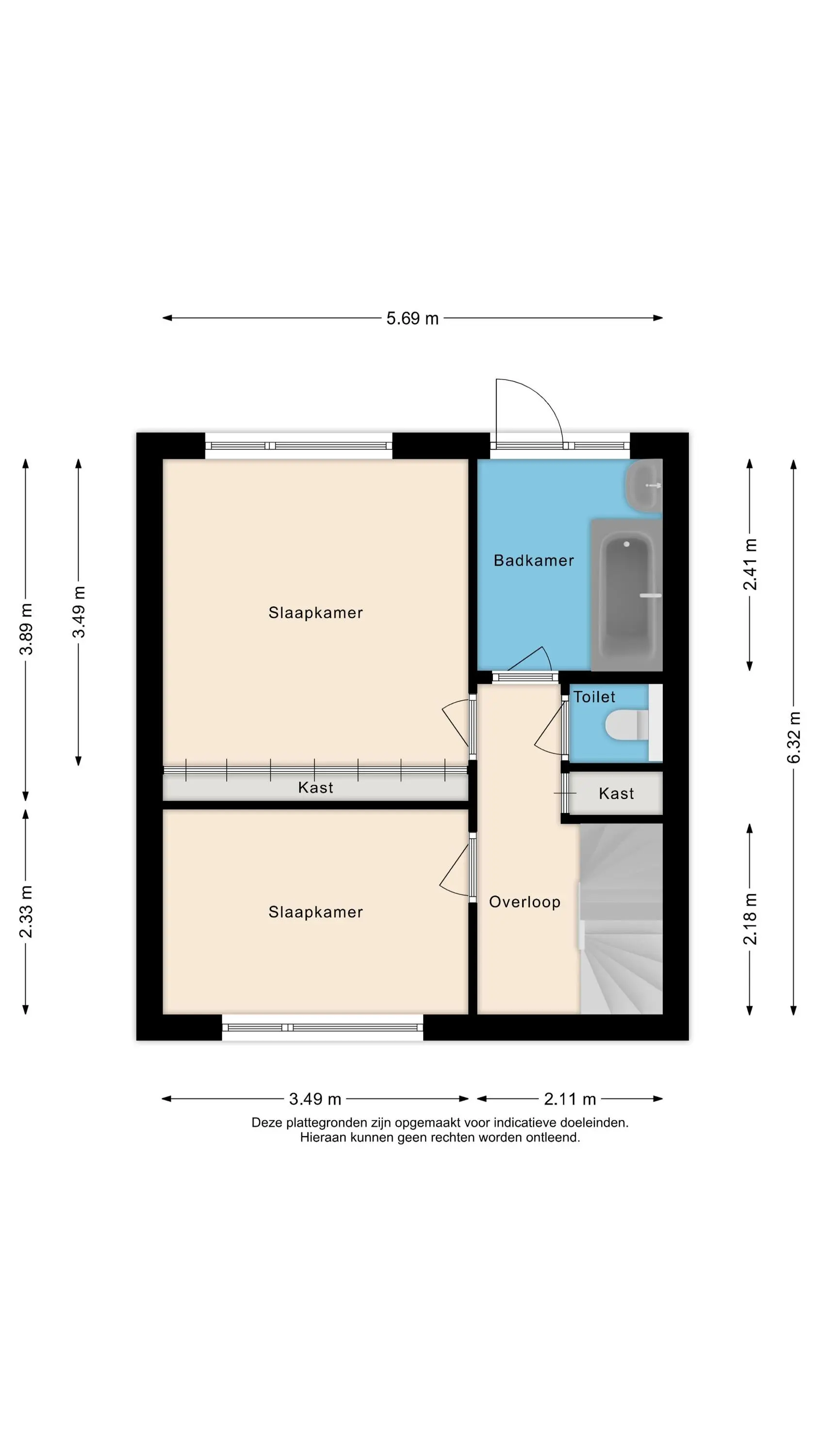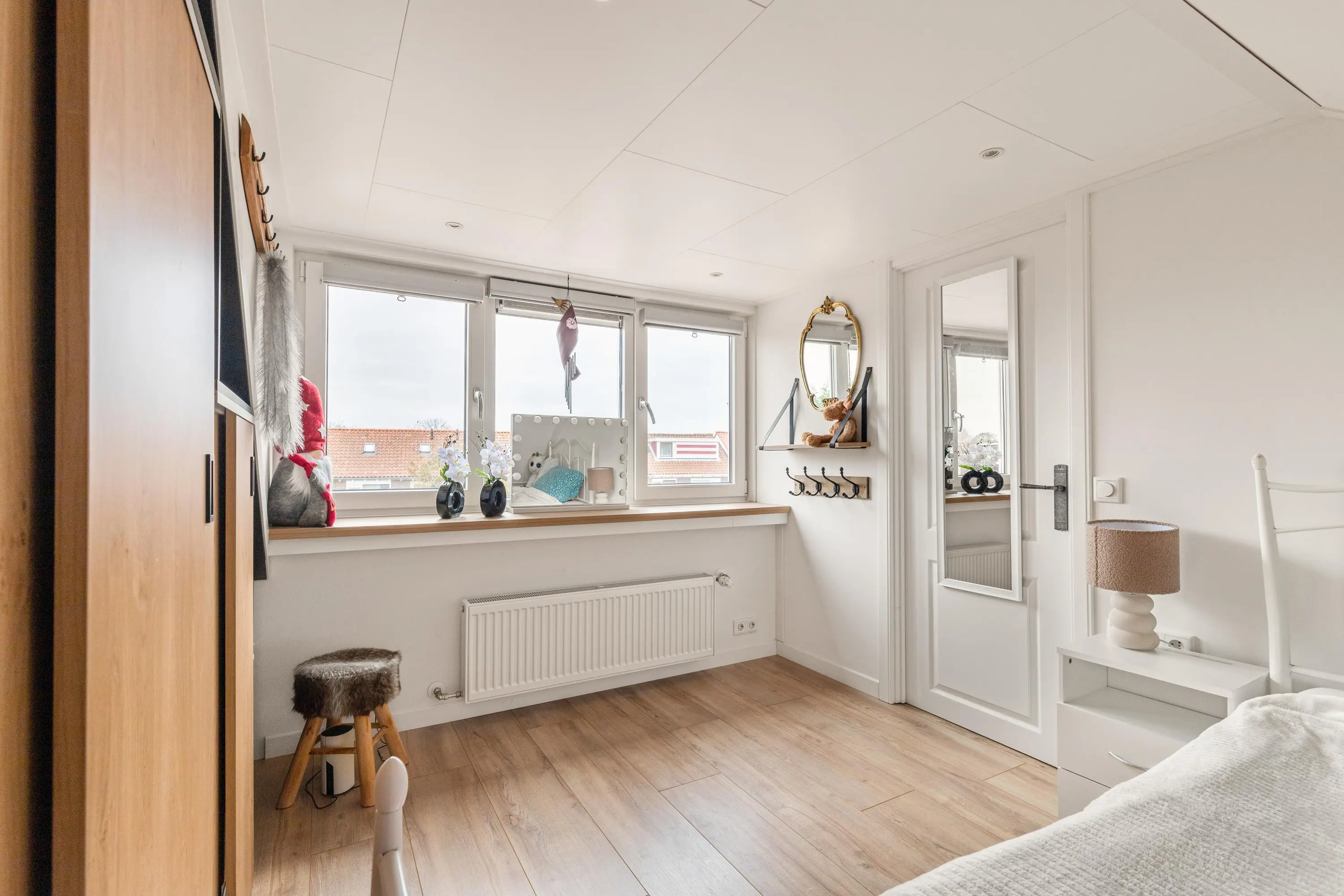 Een vaste trap leidt naar de tweede verdieping, waar zich een overloop met witgoedaansluitingen en een volwaardige derde slaapkamer bevinden. Dankzij de in 2022 geplaatste dakkapel is deze kamer licht en extra ruim.