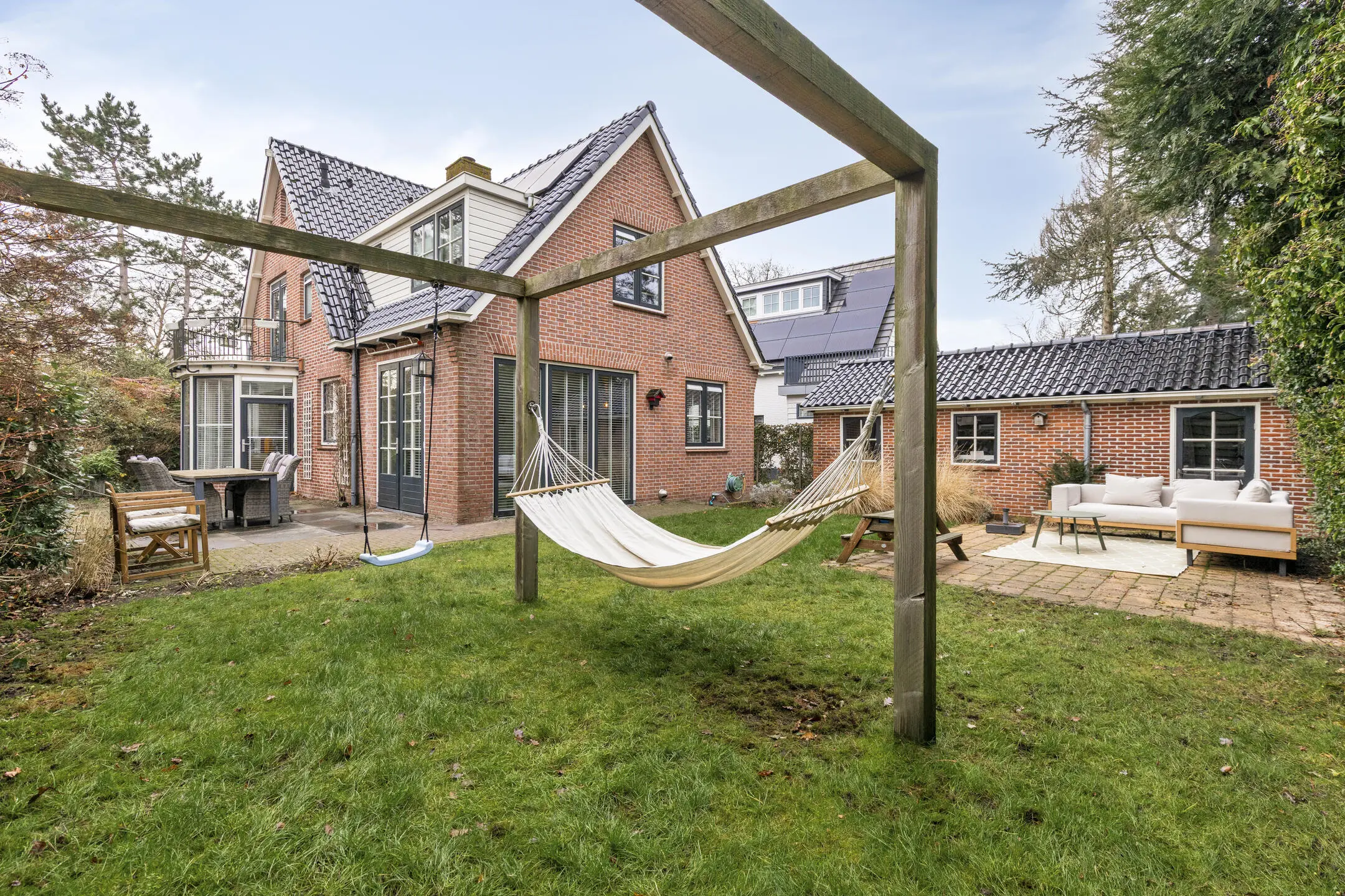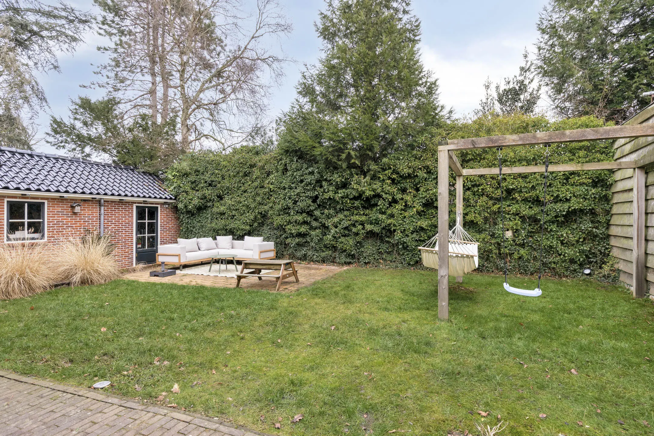 De tuin is verzorgd, groen en biedt veel privacy. Meerdere zitgelegenheden maken het mogelijk om op elk moment van de dag te genieten van de zon of juist van de schaduw. Vanuit de tuin zijn de garage en de aparte berging direct bereikbaar, wat extra gemak biedt voor fietsen, tuinspullen of hobby’s.